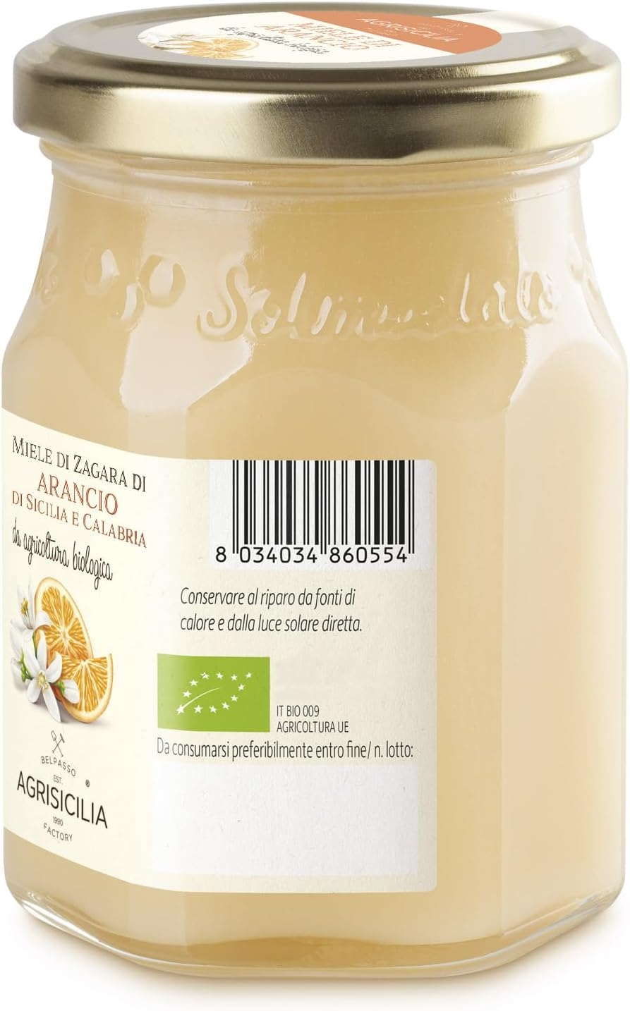 Il miele d’arancio è una prelibatezza naturale. Le principali varietà di arance da cui proviene, come navelino, tarocco, moro e sanguinella, crescono nelle zone della Piana di Catania e nelle valli agrigentine, famose anche per la produzione delle arance I.G.P. Questo miele si distingue per il suo aroma intenso e raffinato, il suo sapore delicato e il suo colore chiaro, che diventa quasi bianco con la naturale cristallizzazione, completata spontaneamente entro pochi mesi dalla raccolta.