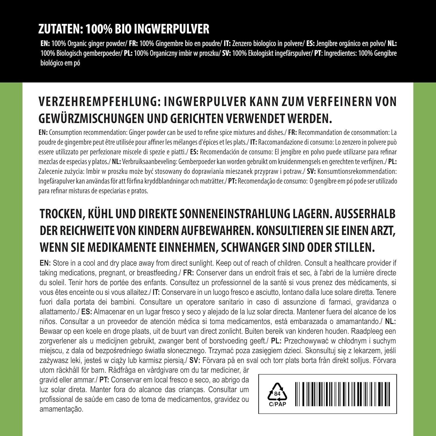 • Gusto autentico: Il nostro zenzero in polvere, ottenuto da radice di zenzero essiccata e macinata, è un prodotto mono-ingrediente di origine naturale. È naturalmente vegano e privo di glutine, additivi, conservanti o aromi.