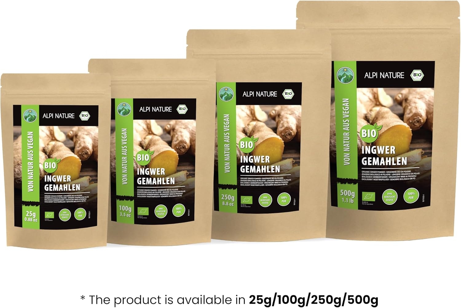 • Usi versatili: La polvere di zenzero, con il suo sapore caldo e speziato e l’aroma intenso, è comunemente utilizzata sia nei piatti dolci che in quelli salati, tra cui curry, soffritti, prodotti da forno, marinate, tè e bevande.