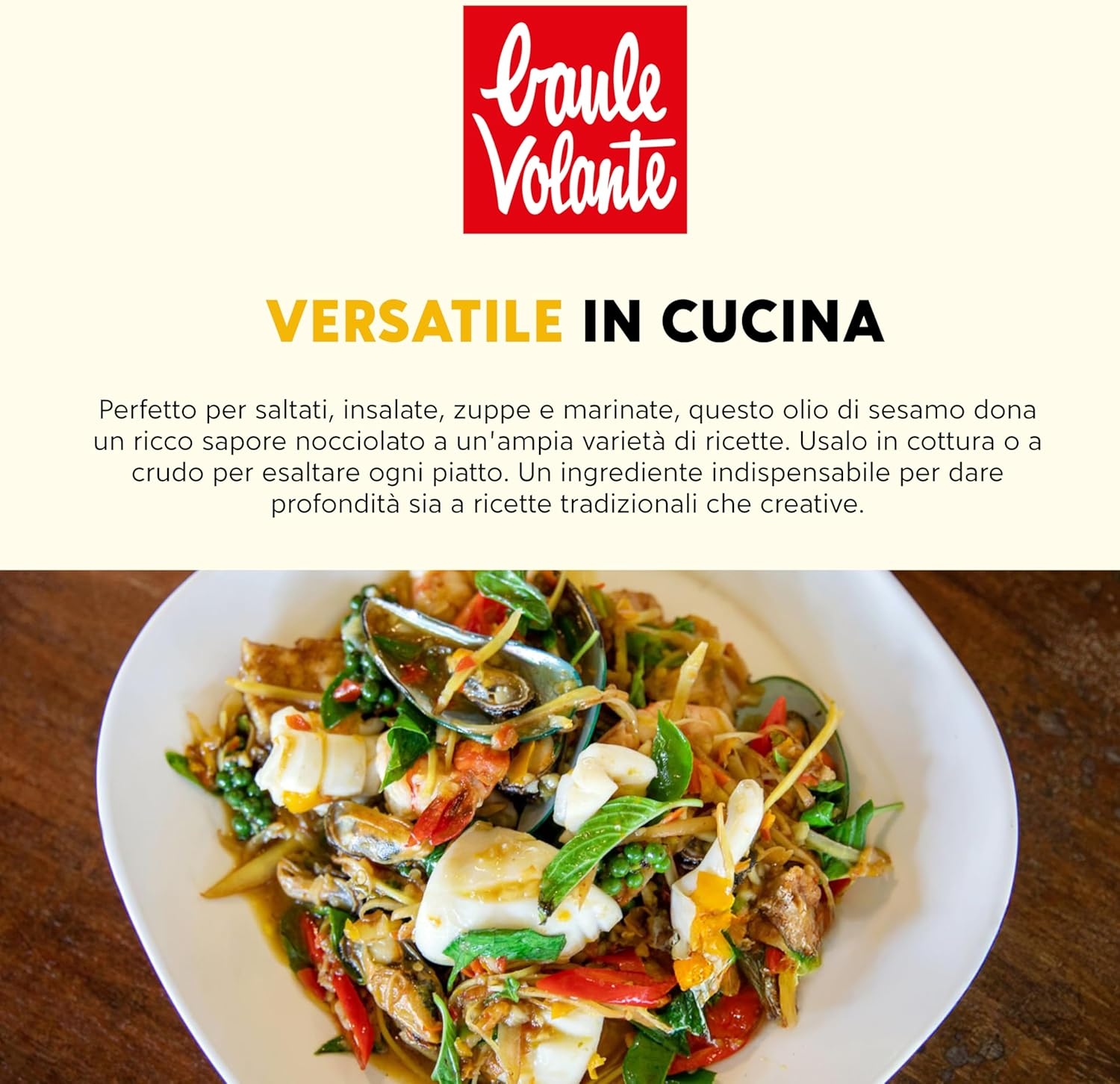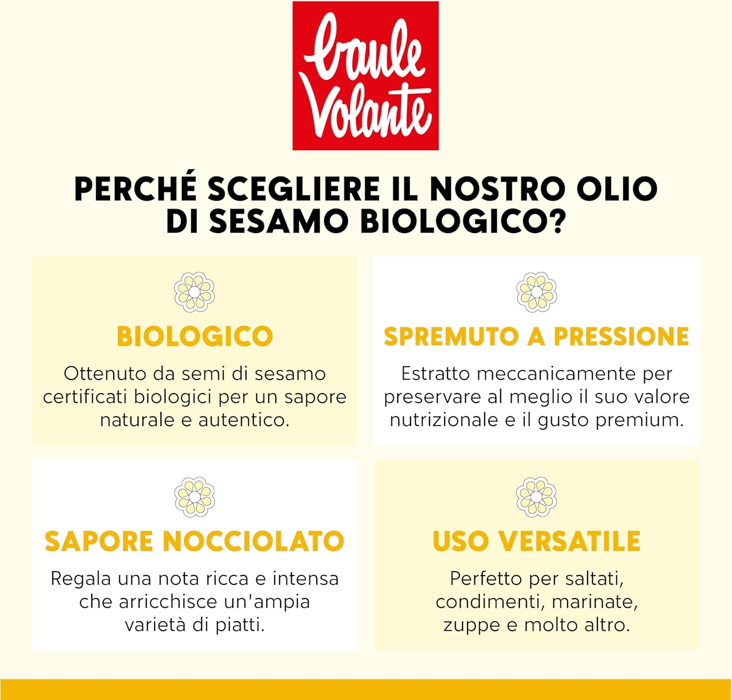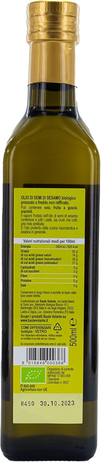 Usare per cucinare a fuoco medio-basso, ideale per saltare in padella, insaporire zuppe e insalate. Conservare in un luogo fresco e asciutto, lontano dalla luce diretta del sole. Attenzione: può contenere tracce di sesamo.