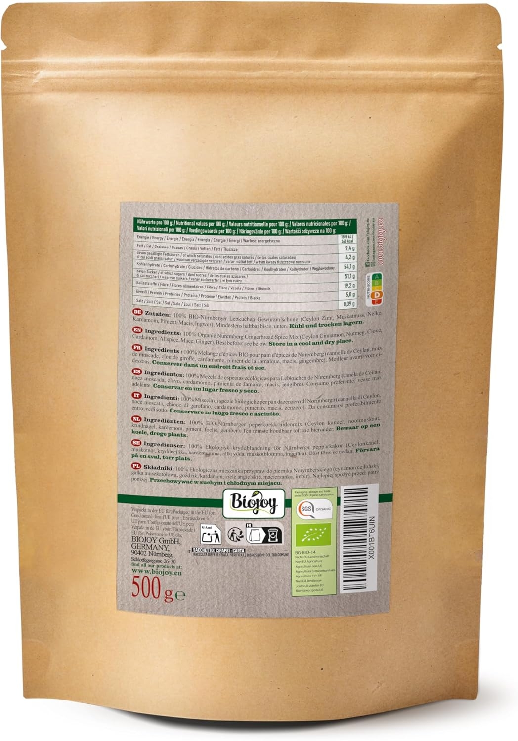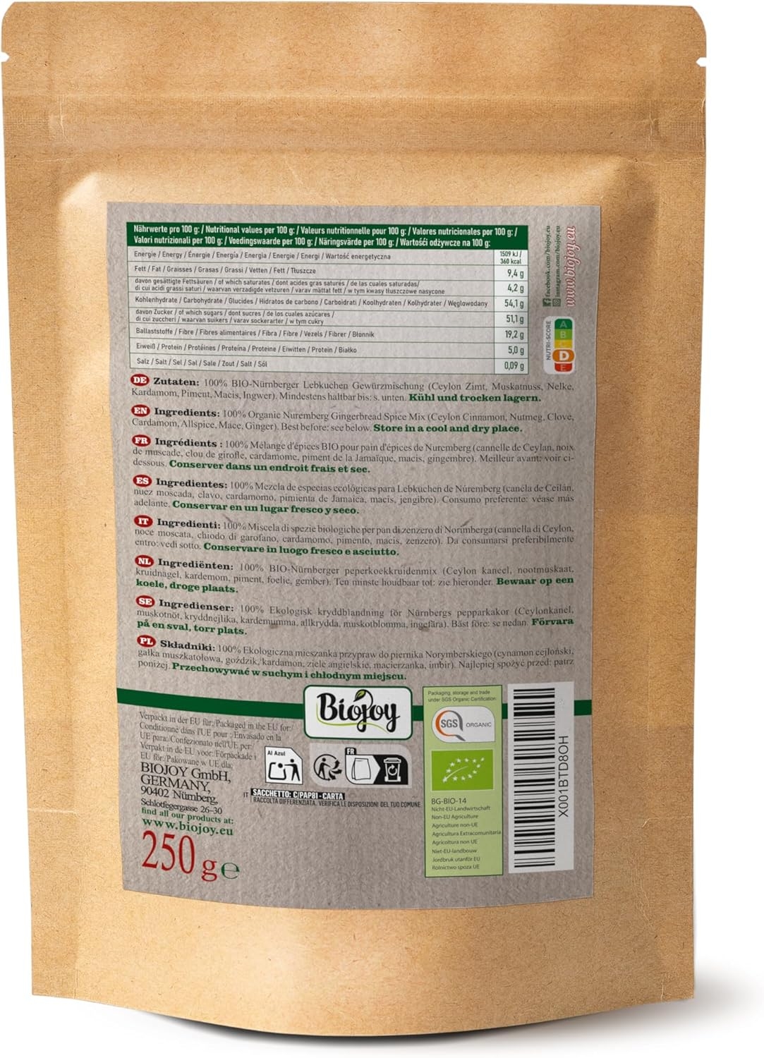 Biojoy Miscela di spezie Biologiche per pan di zenzero di Norimberga (250 g), per la preparazione di dolci e biscotti di Natale