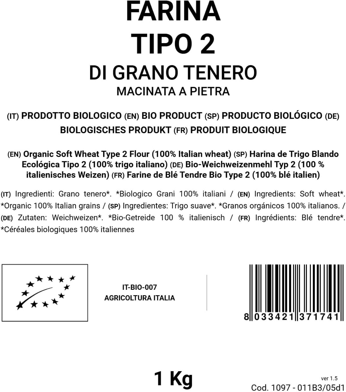 Dalle macine in pietra, una farina eccezionale. Farina ottenuta da una sapiente miscela di varietà di frumento tenero e semi duro di forza macinate a pietra. Il suffisso 00, 0, 2 viene attribuito in relazione al livello di raffinazione al quale il cereale viene sottoposto. L a tipo 00 è la più raffinata, segue la zero e infine la due. Da un punto di vista nutrizionale, questa farina, contiene ancora parte della fibra e del germe (ricco di vitamina e, grassi mono e polinsaturi). Ottima panificabilità ma raffinazione parziale. Modalità d’uso ottima per la preparazione di prodotti da forno dolci e salati. Impiegare una tipologia rispetto ad un’altra non cambia la destinazione d’uso, bensì maggiore sarà la raffinazione, maggiore sarà la lievitazione (a scapito però del valore nutrizionale). Tuttavia la differenza di lievitazione tra questa farina e quella più raffinata (00), è davvero irrisorio, mentre il sapore è di gran lunga superiore nella tipo 2. Caratteristiche tecniche: w200-220 p/l0,55 stabilità (min. )4 assorbimento55 valori nutrizionali medi per 100g di prodotto: valore energetico (kcal) :364 proteine (g):11,70 carboidrati (g):72,60 grassi (g):1,50 fibre (g):6,50 ente certificatore. Bioagricert estremi certificazione. It bac 017963 t000010.