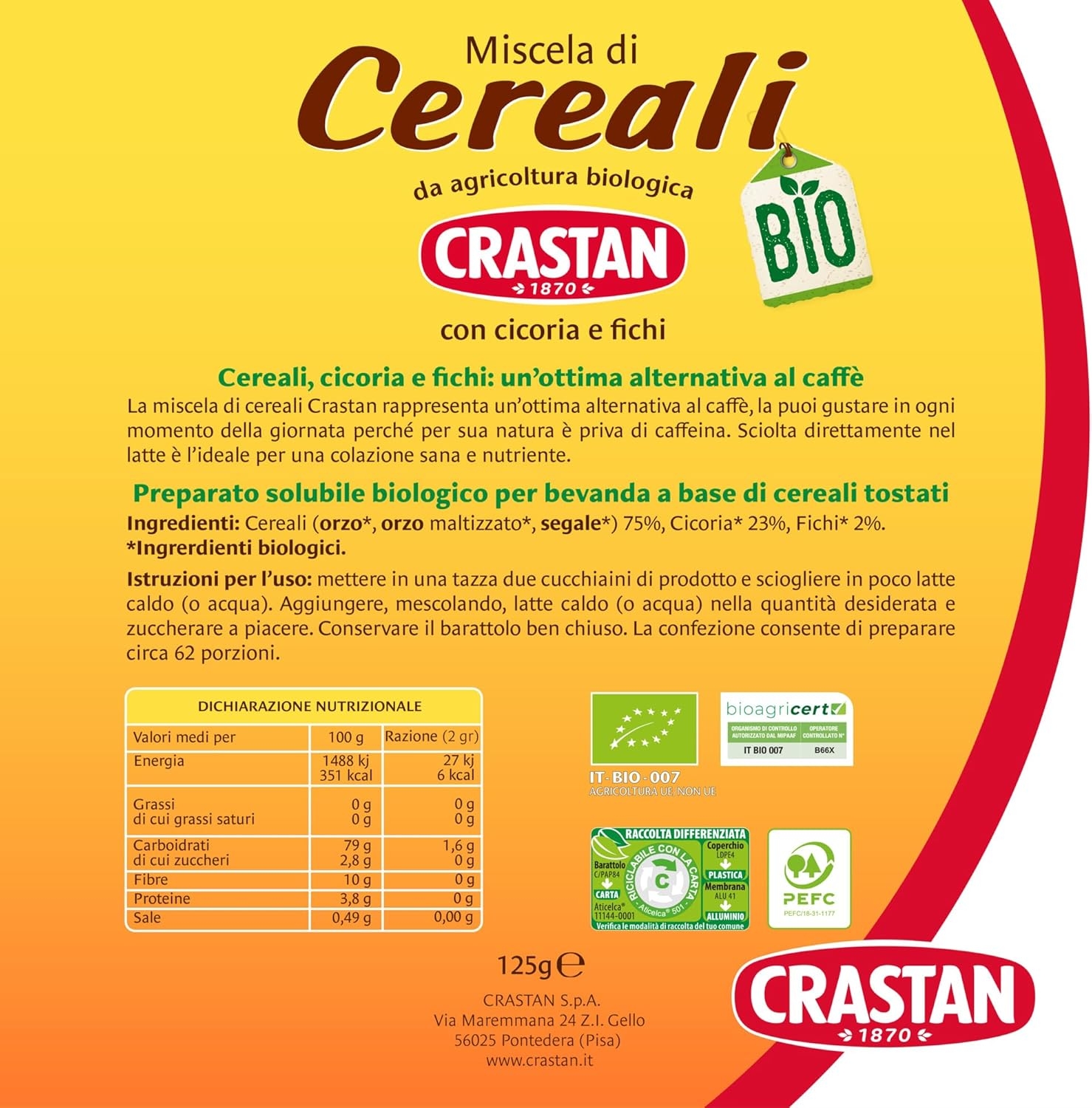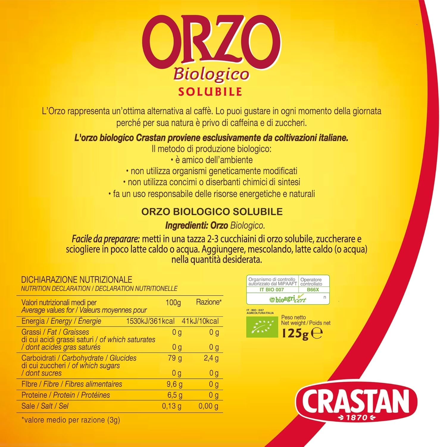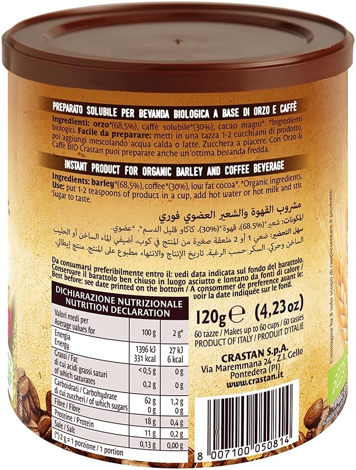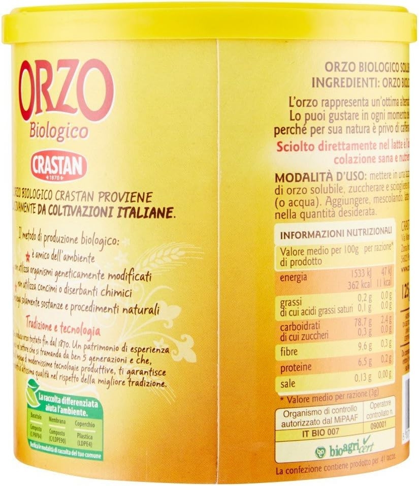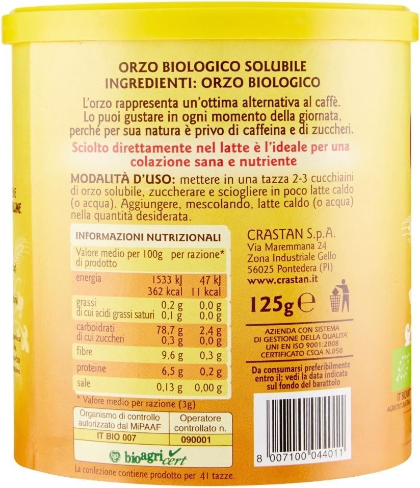 Crastan Orzo solubile biologico barattolo gr. 125