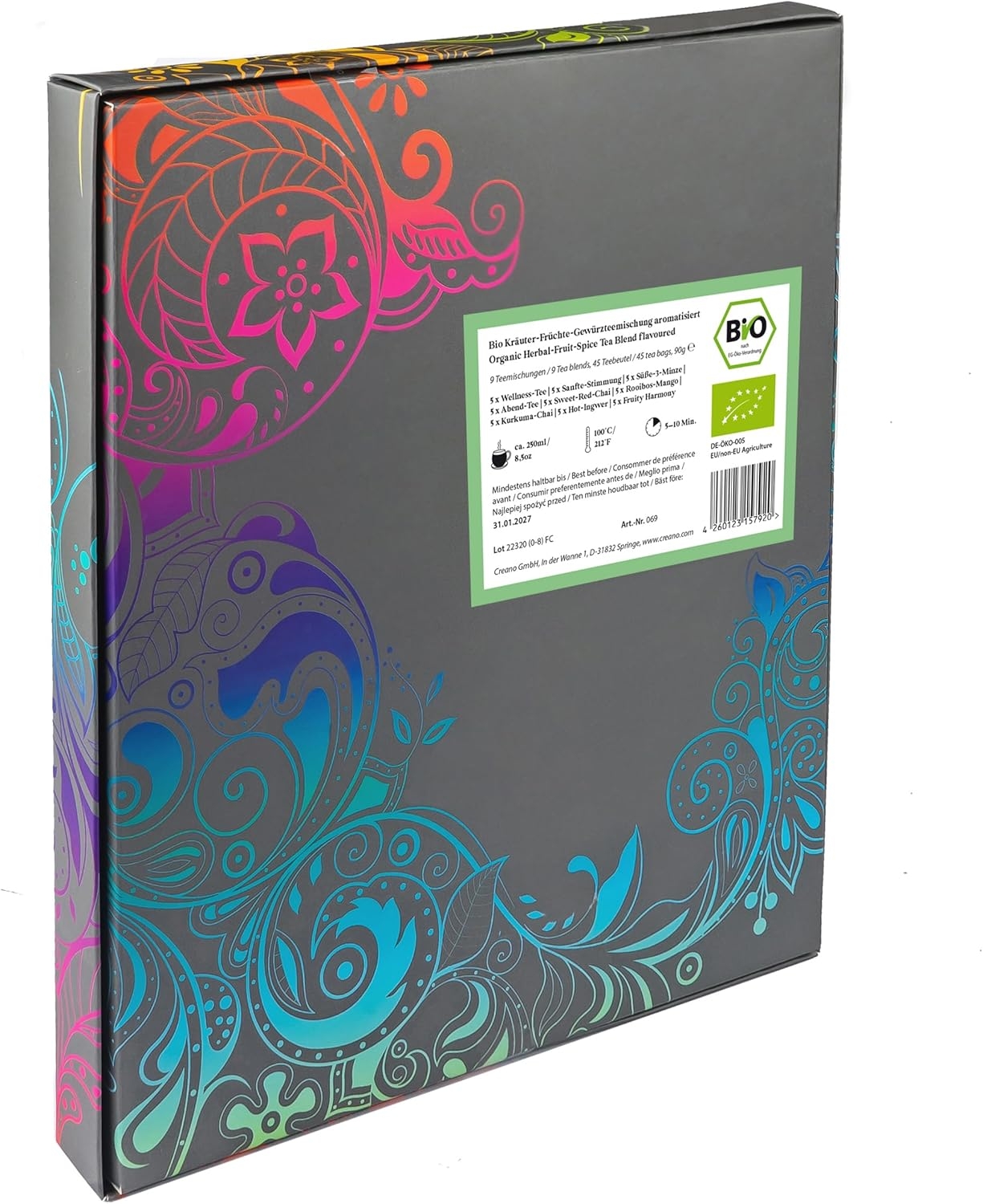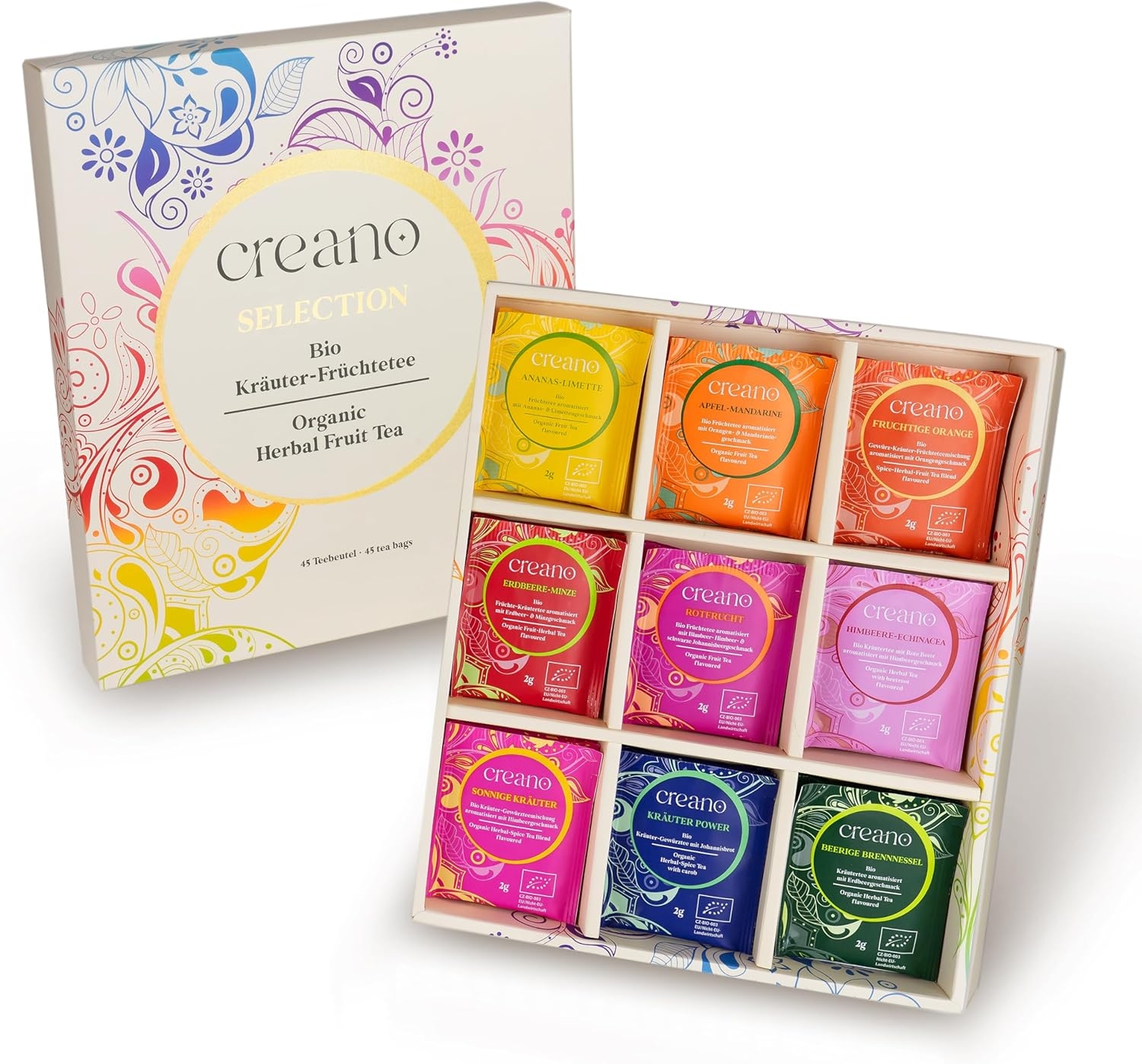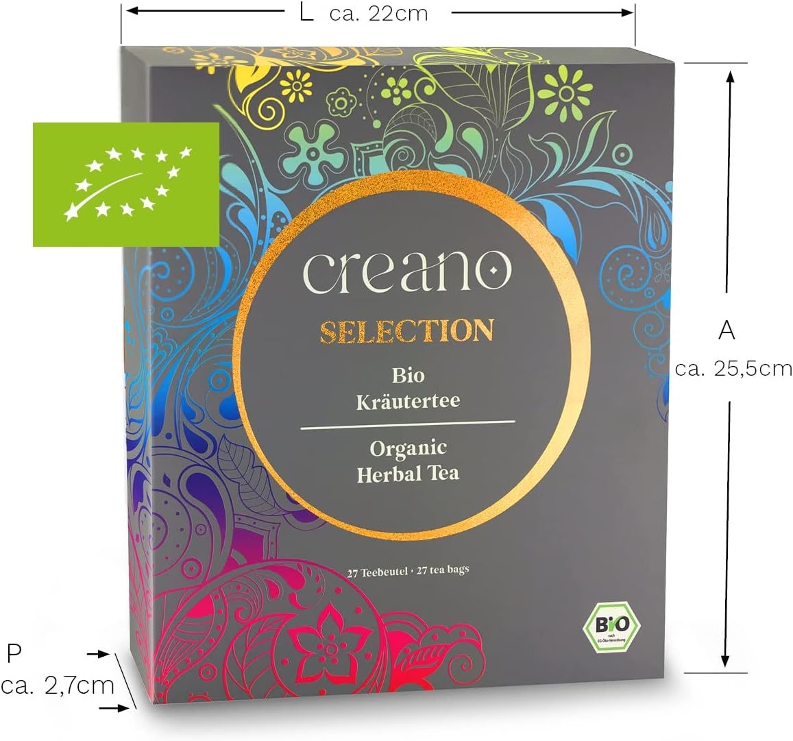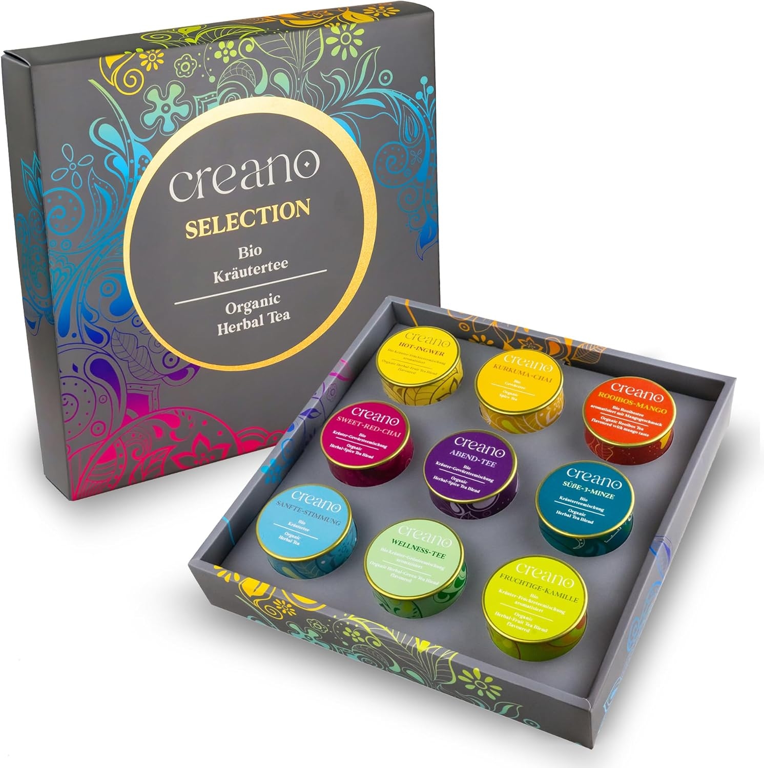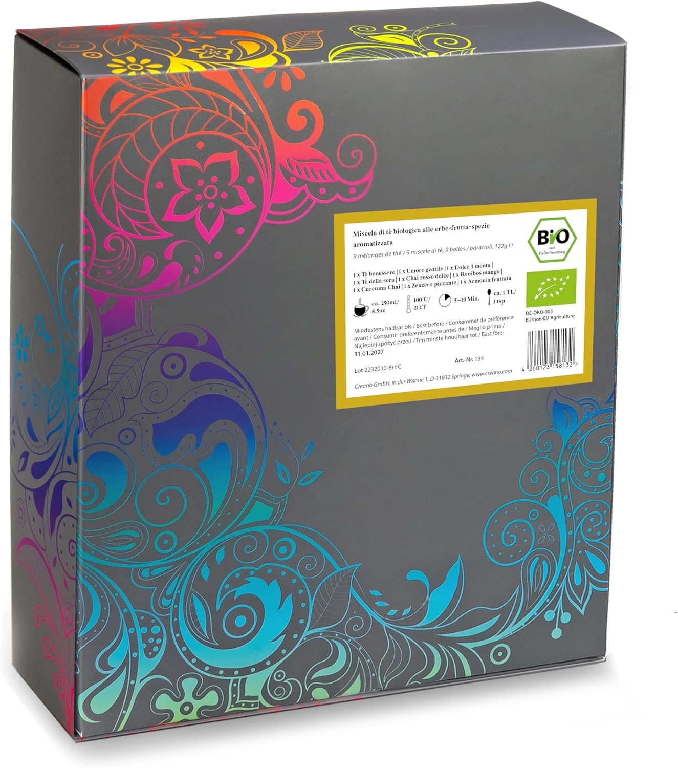 Creano Set Regalo Tisana Biologica* – 27 Bustine di Tè alle Erbe in 9 Varietà Diverse | Infusi Bio Misti 54g, Idea Regalo Benessere e Relax