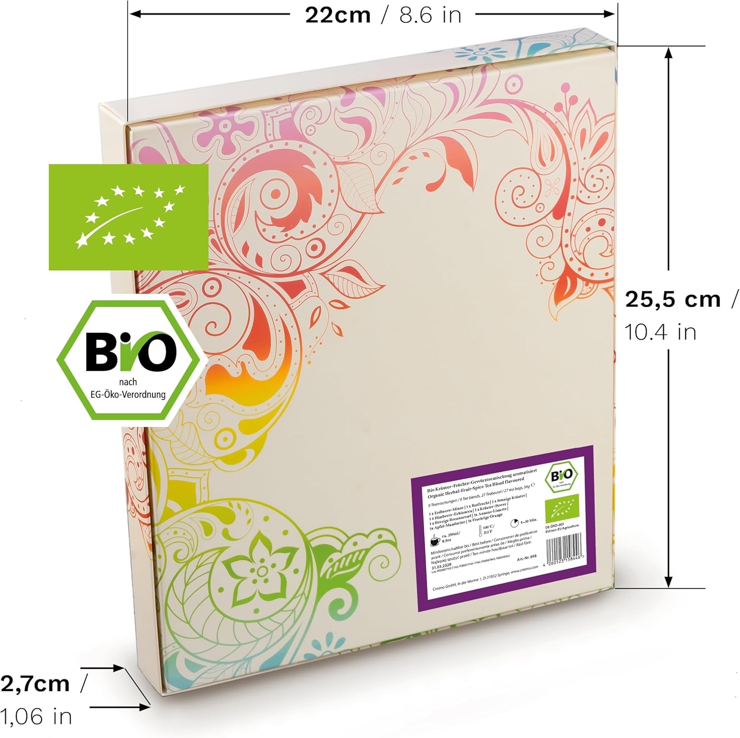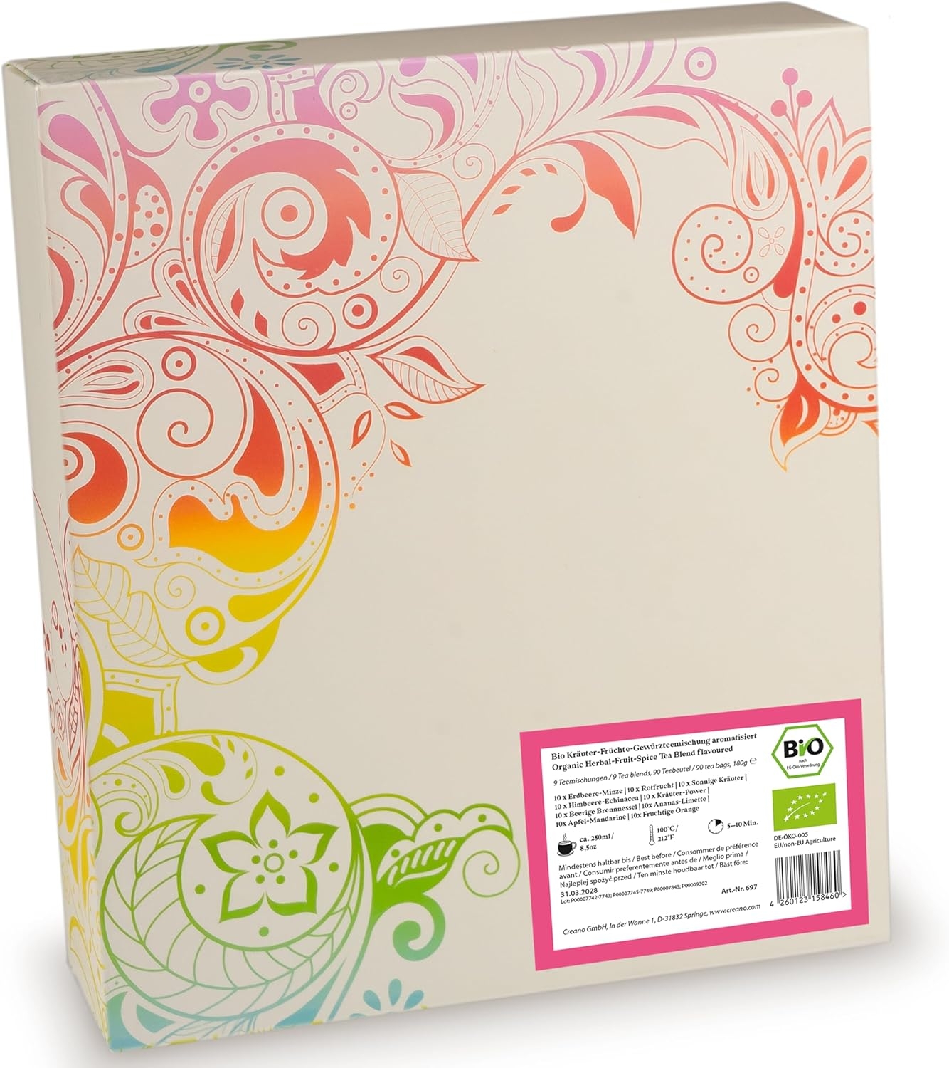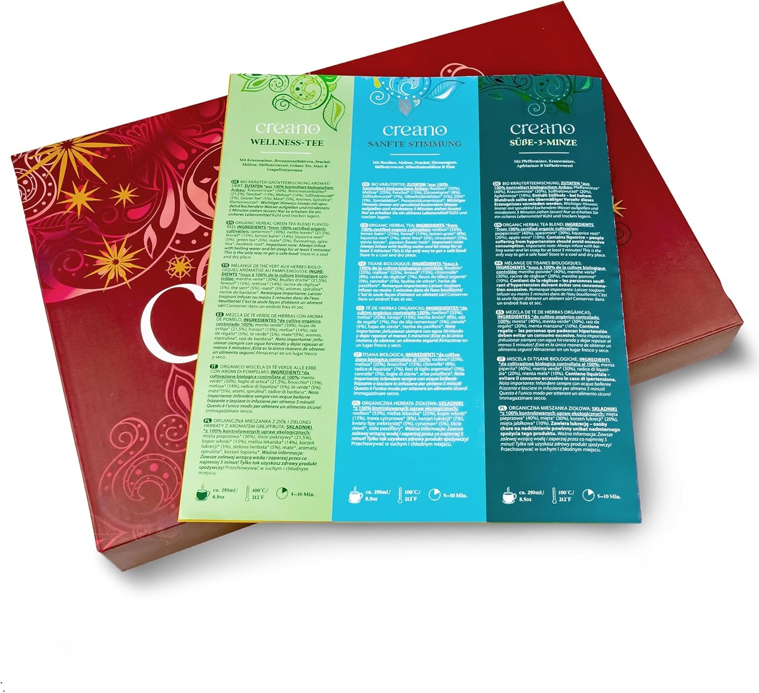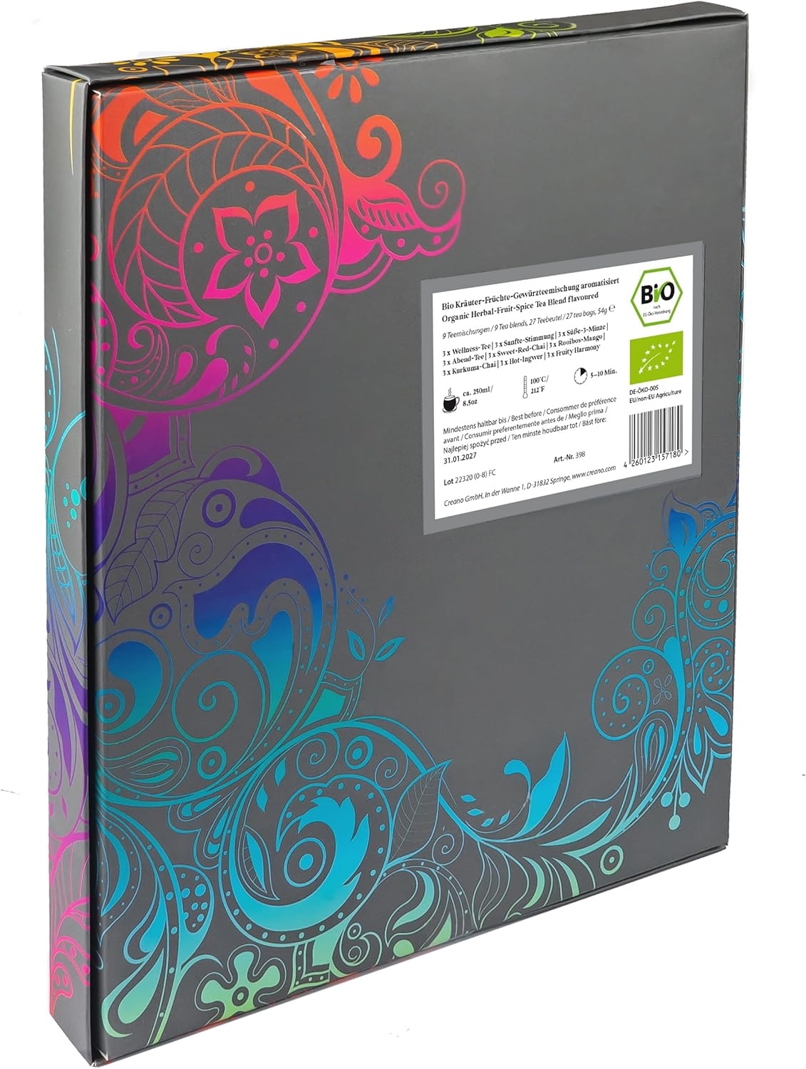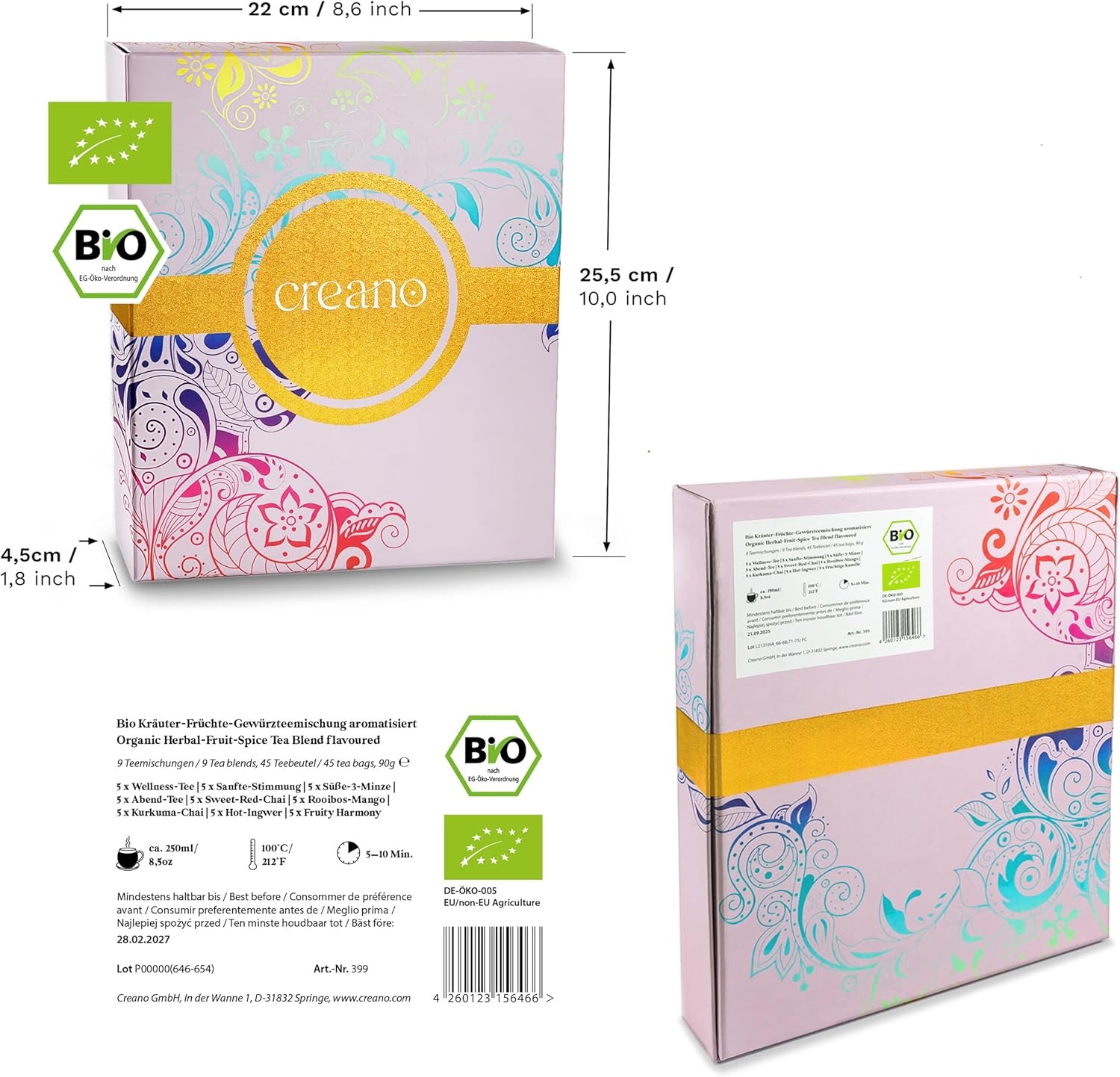 Creano Set Regalo Tisana Biologica* – 27 Bustine di Tè alle Erbe in 9 Varietà Diverse | Infusi Bio Misti 54g, Idea Regalo Benessere e Relax