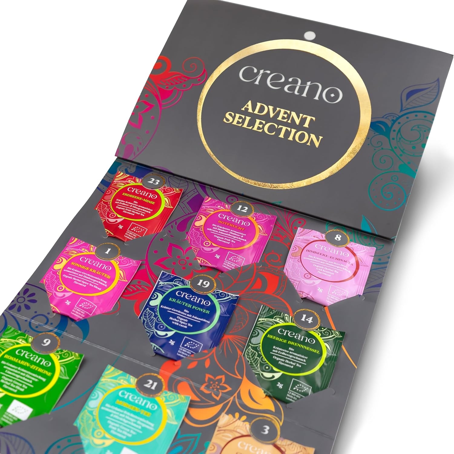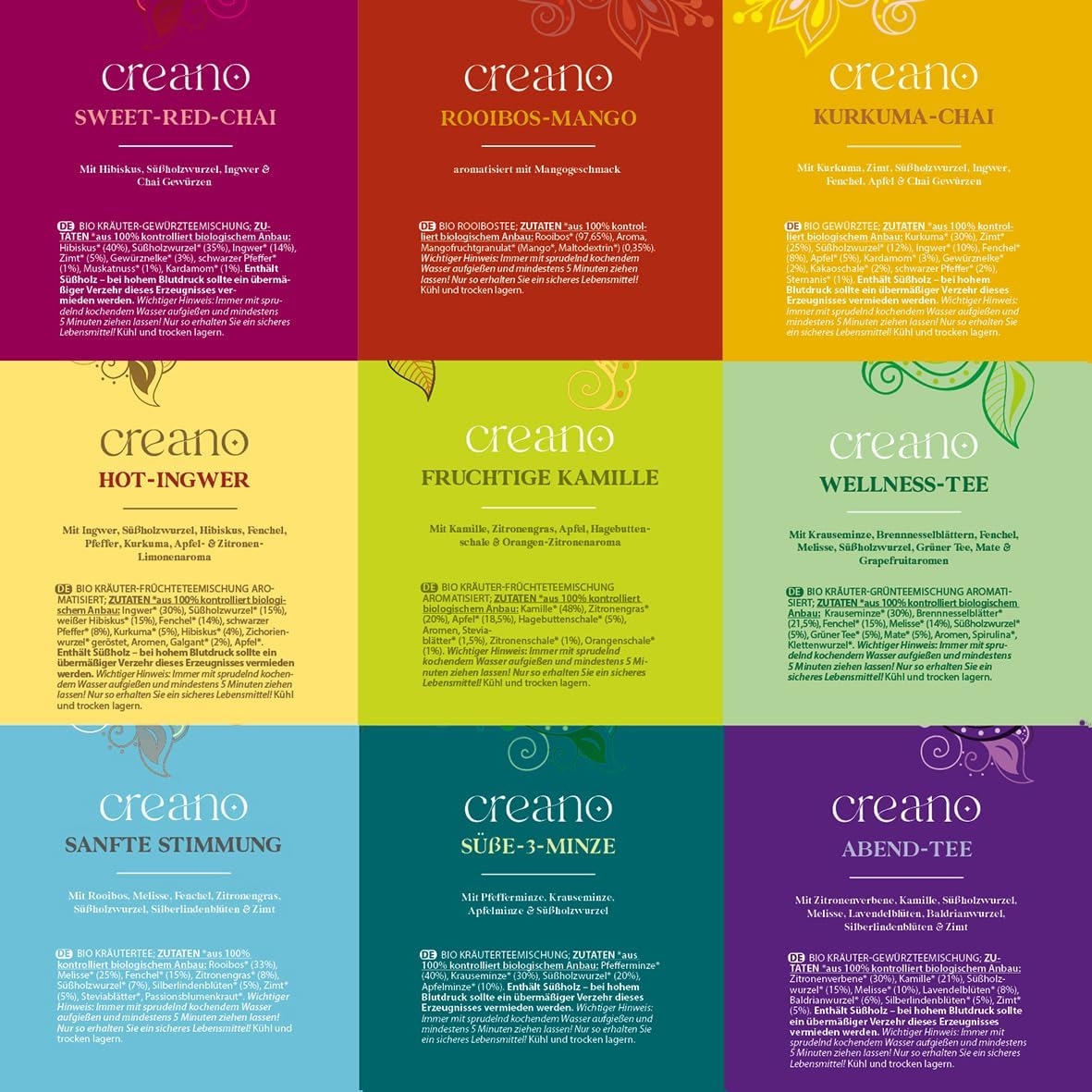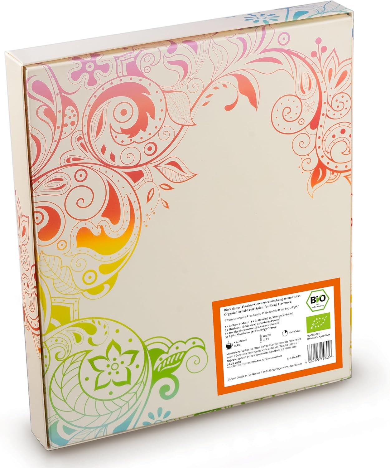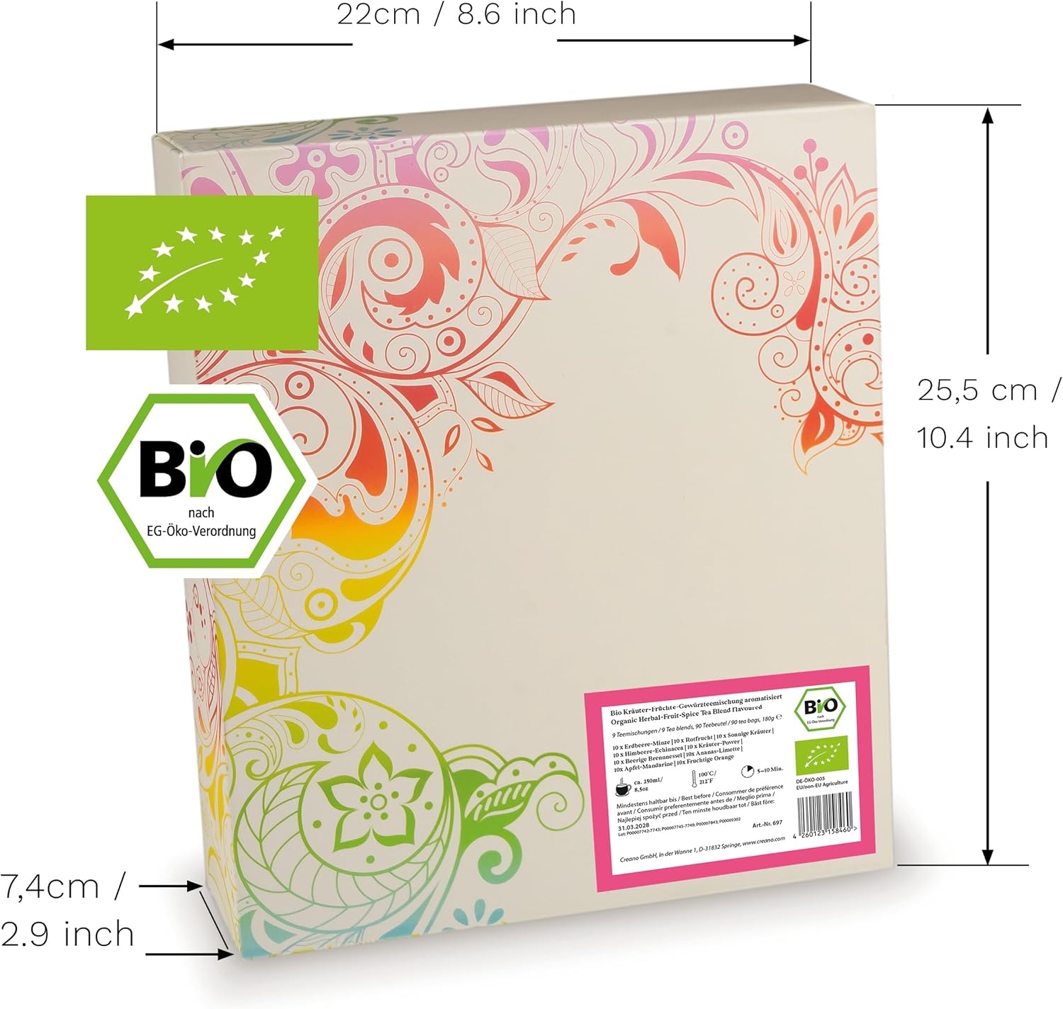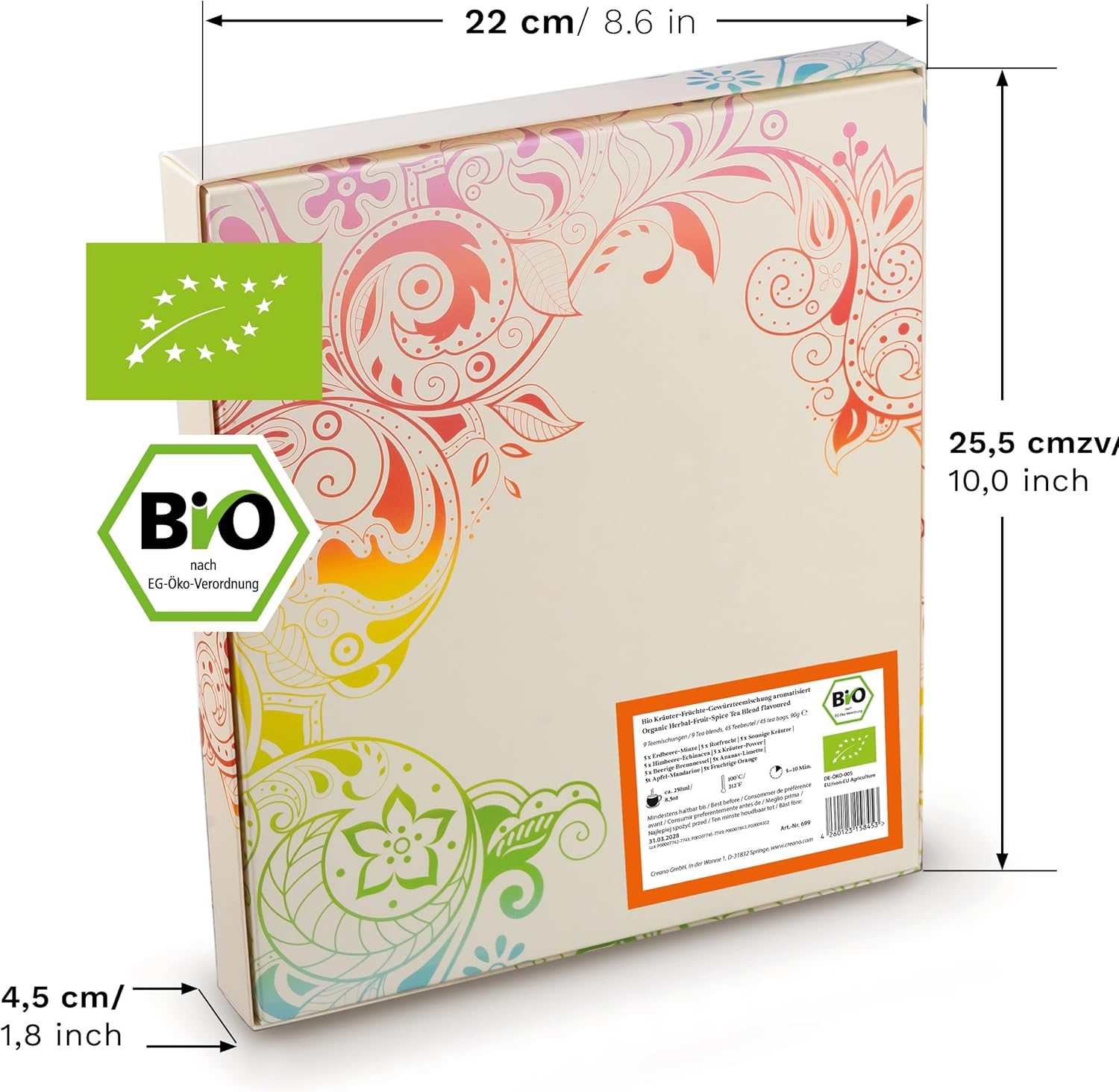 Creano Set Regalo Tisana Biologica* – 27 Bustine di Tè alle Erbe in 9 Varietà Diverse | Infusi Bio Misti 54g, Idea Regalo Benessere e Relax