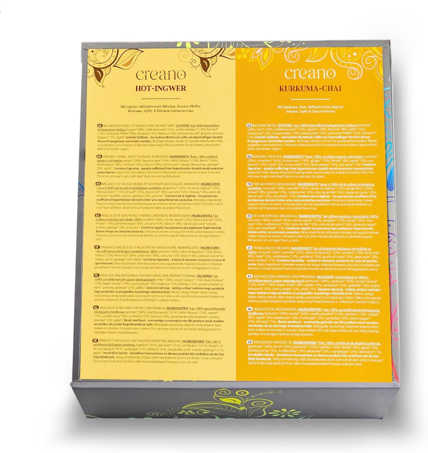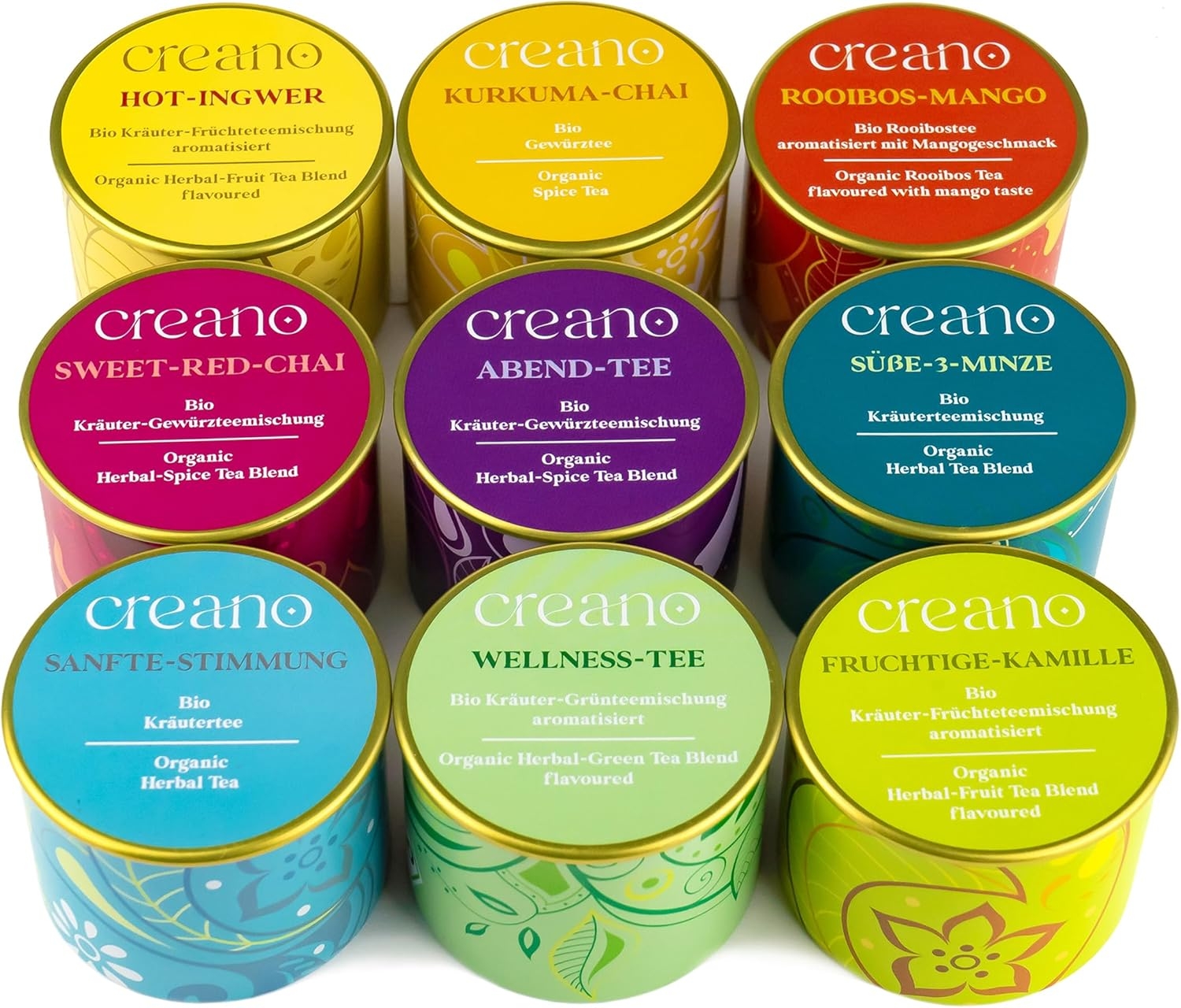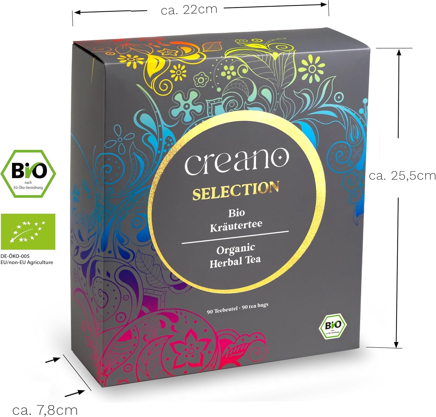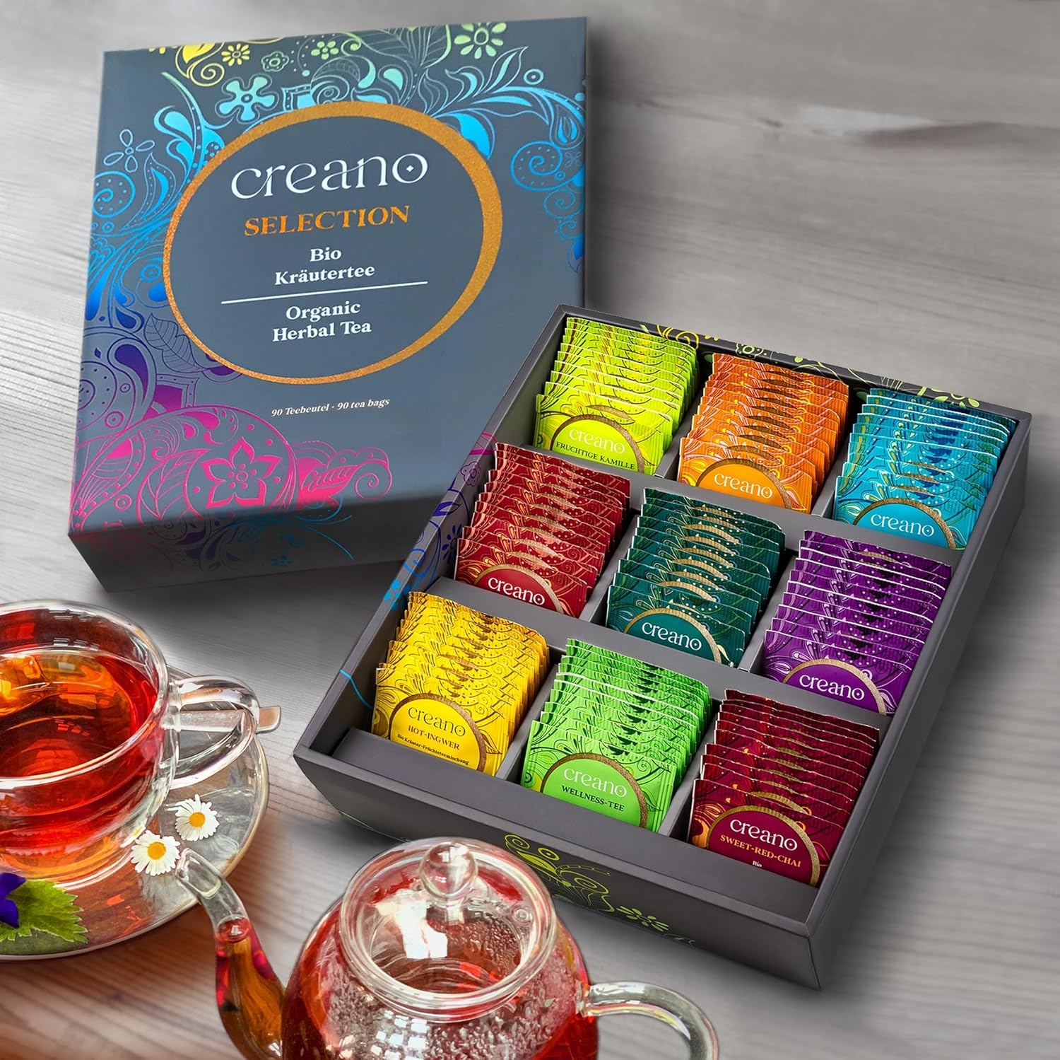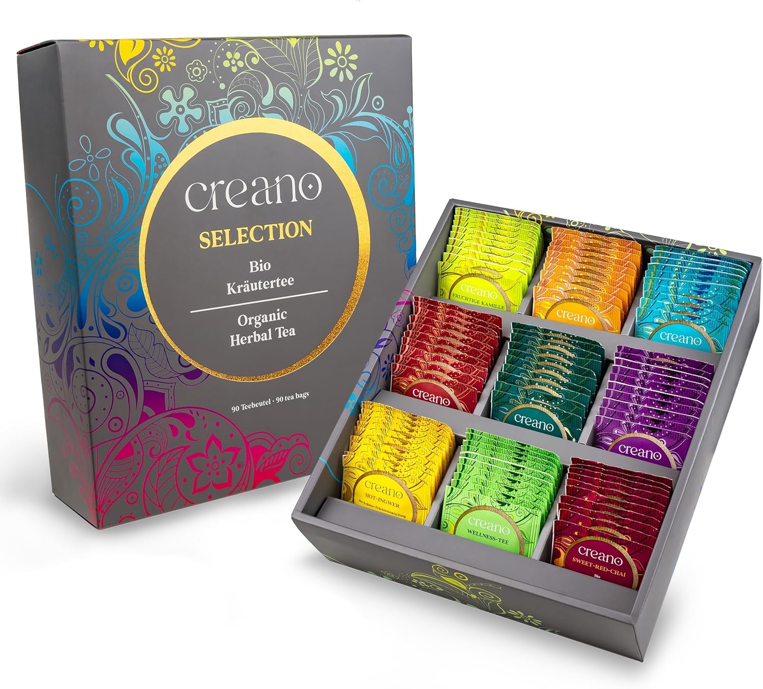 • ✅ VARIETÀ UNICA DI TISANE BIO – Set regalo Creano con 27 bustine (9 miscele diverse) di tisane biologiche a base di erbe, frutta e spezie, per un’esperienza di gusto sempre nuova.