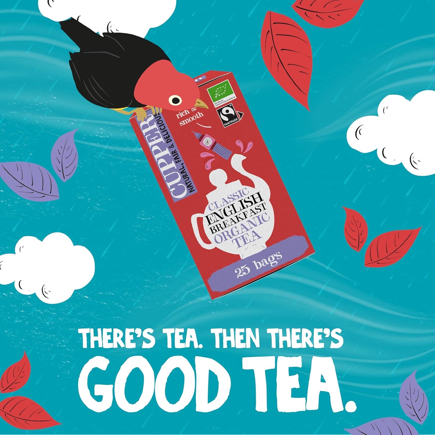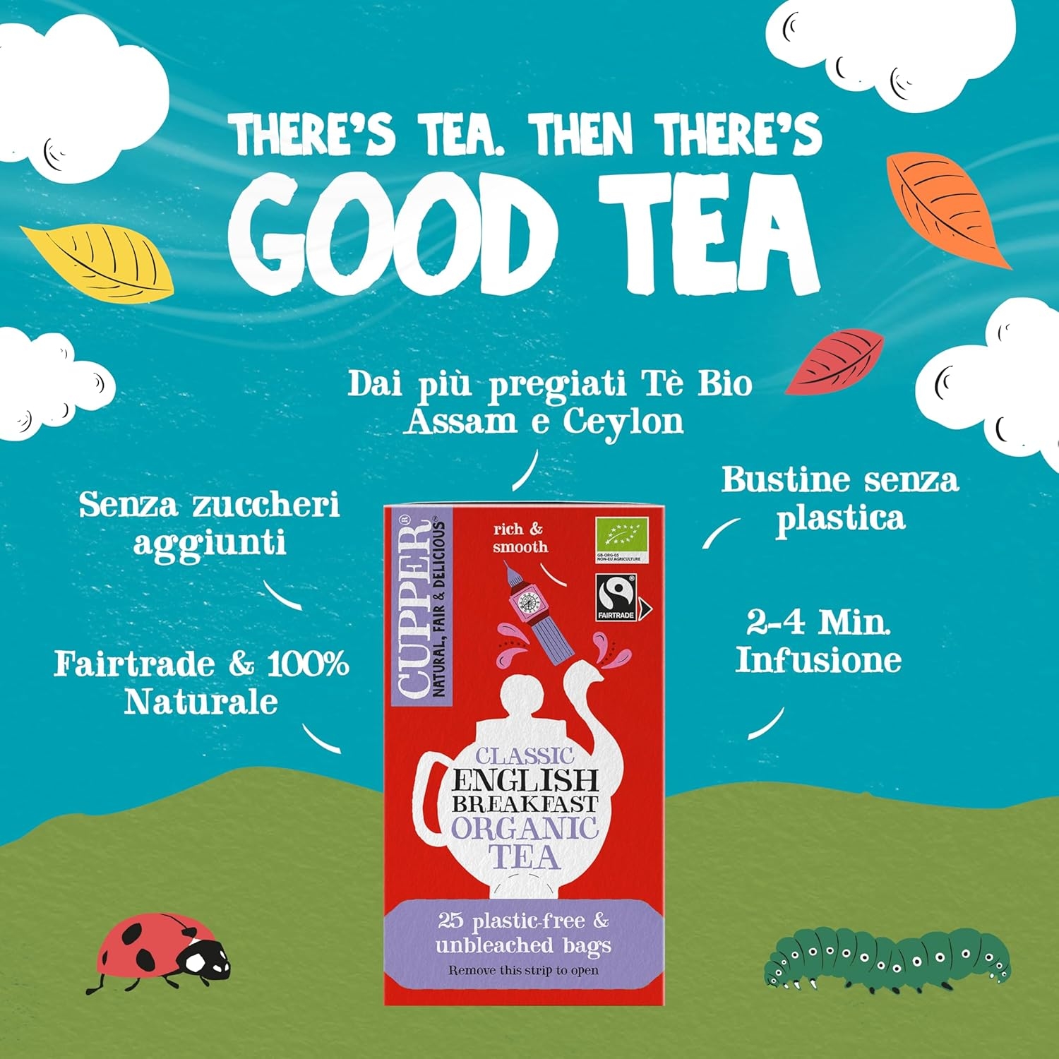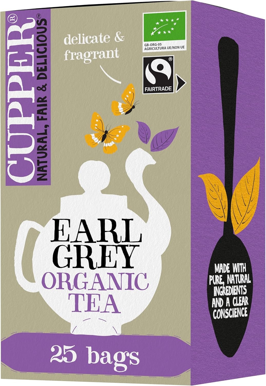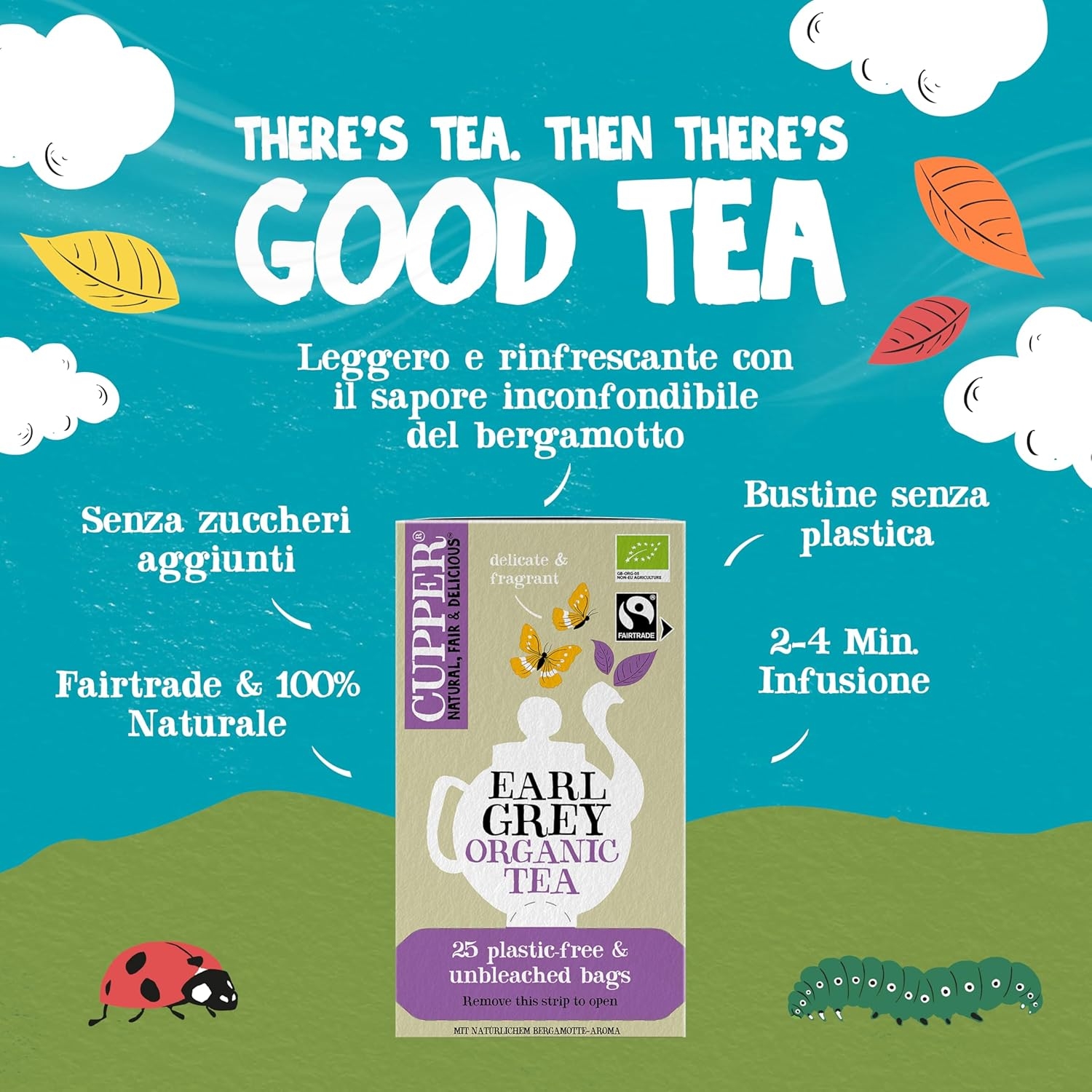 CUPPER Tè Nero Earl Grey Biologico e Fairtrade, Ingredienti da Agricoltura Biologica, Gusto Leggero e Rinfrescante, Filtri 100% Biodegradabili, Confezione da 25 Bustine