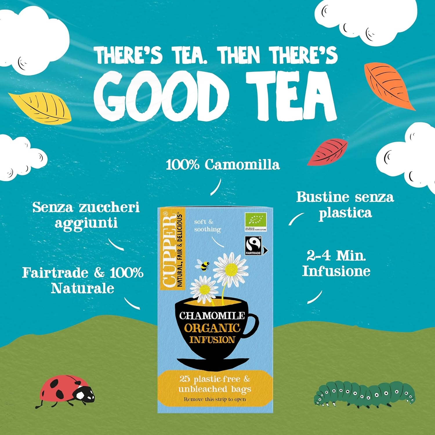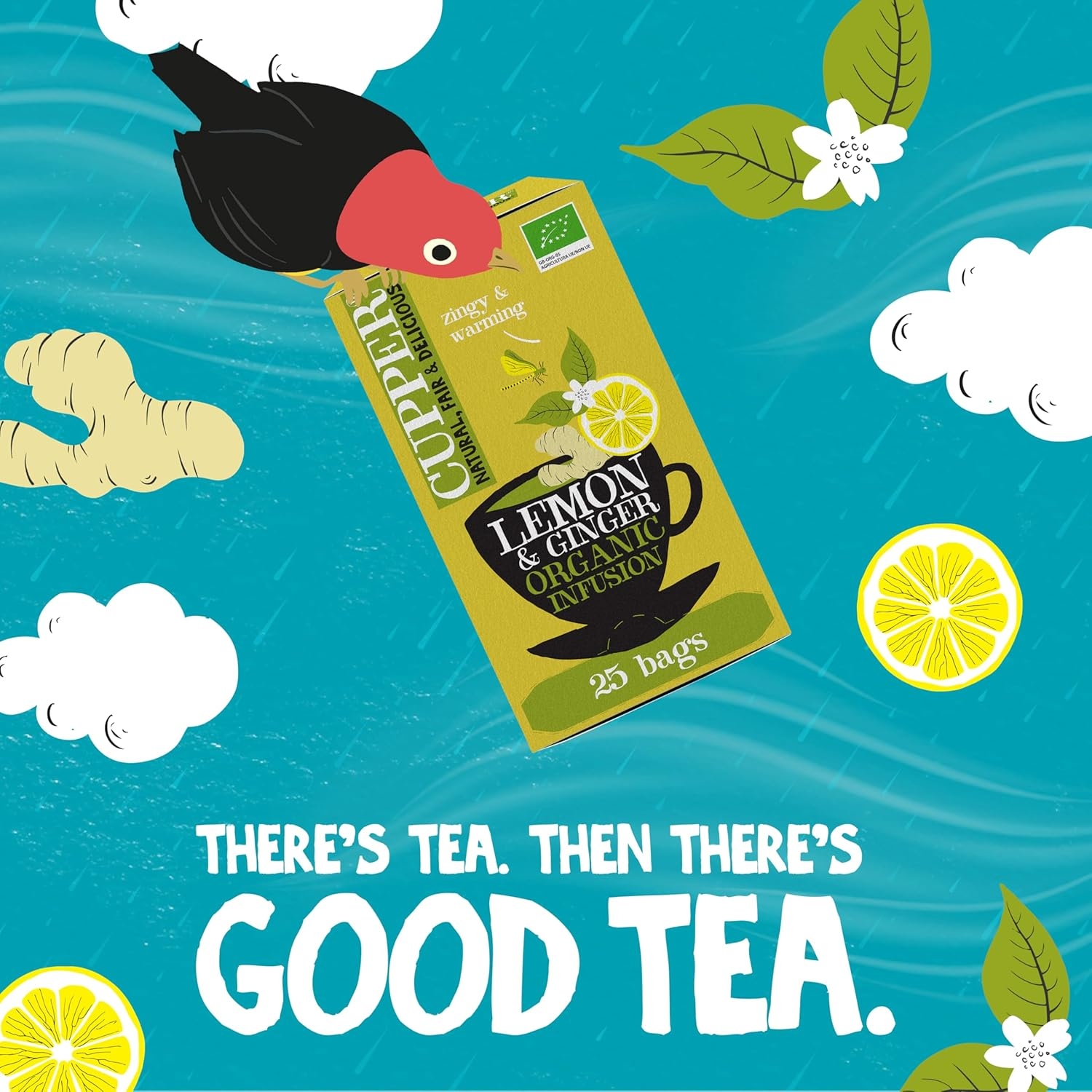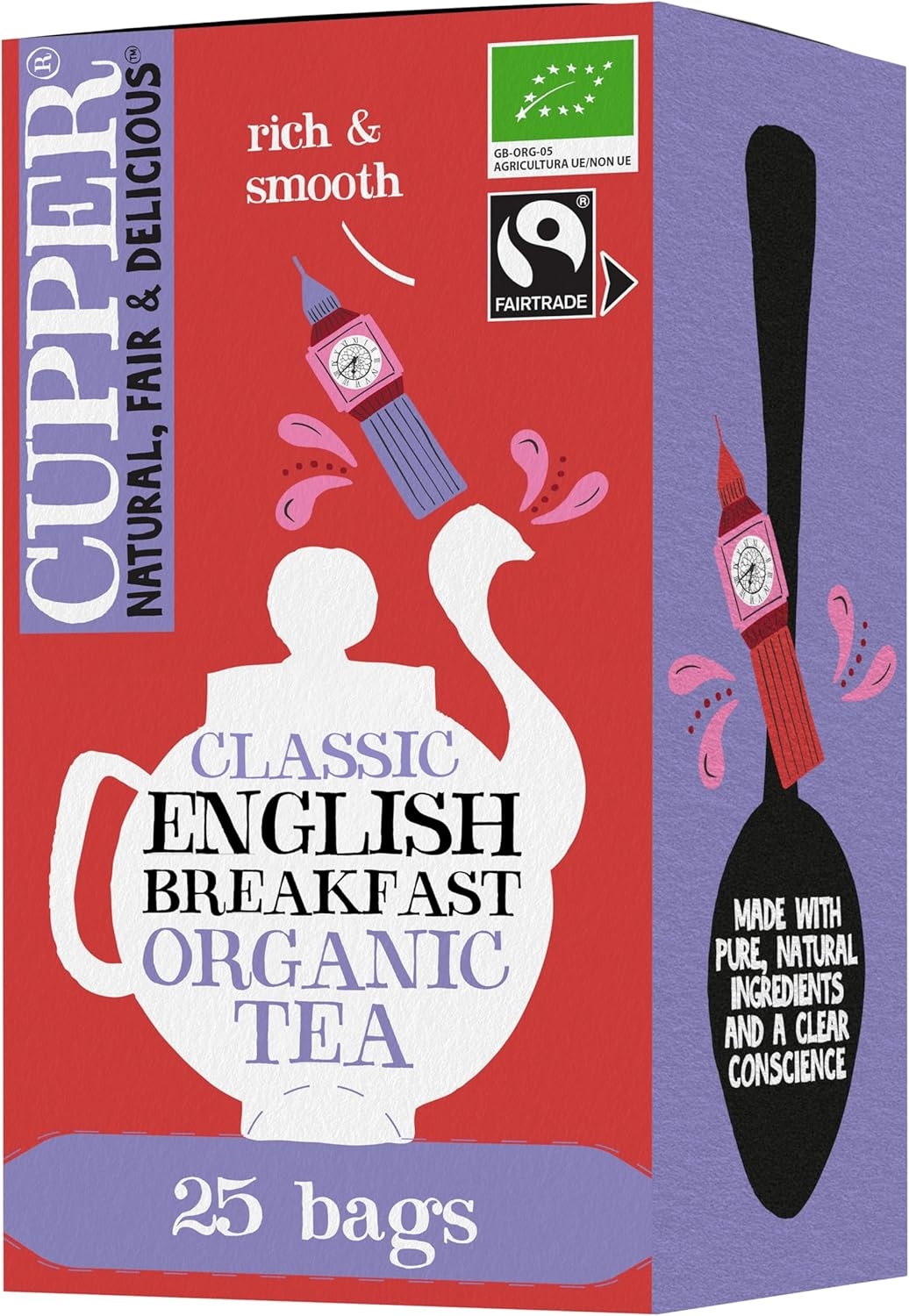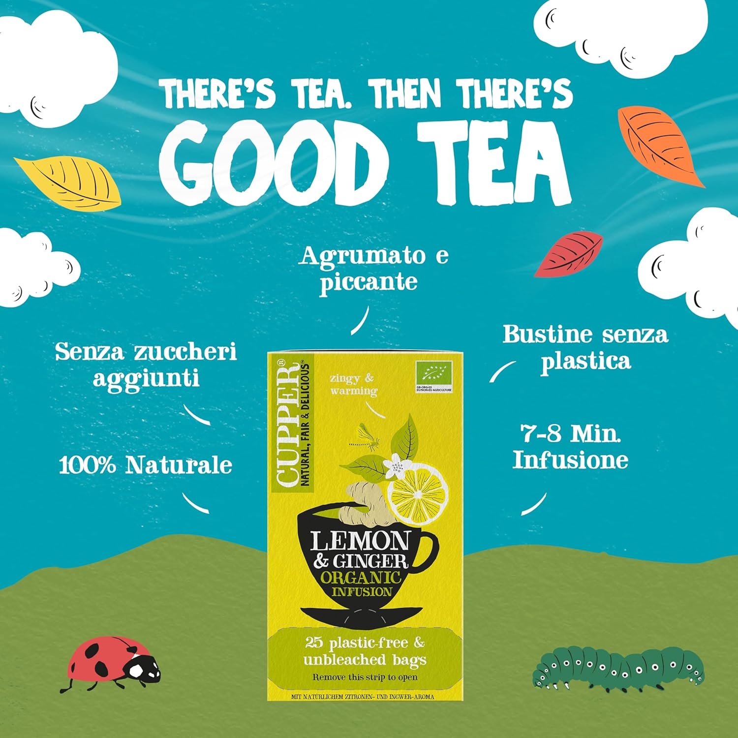 CUPPER Tè Nero Earl Grey Biologico e Fairtrade, Ingredienti da Agricoltura Biologica, Gusto Leggero e Rinfrescante, Filtri 100% Biodegradabili, Confezione da 25 Bustine