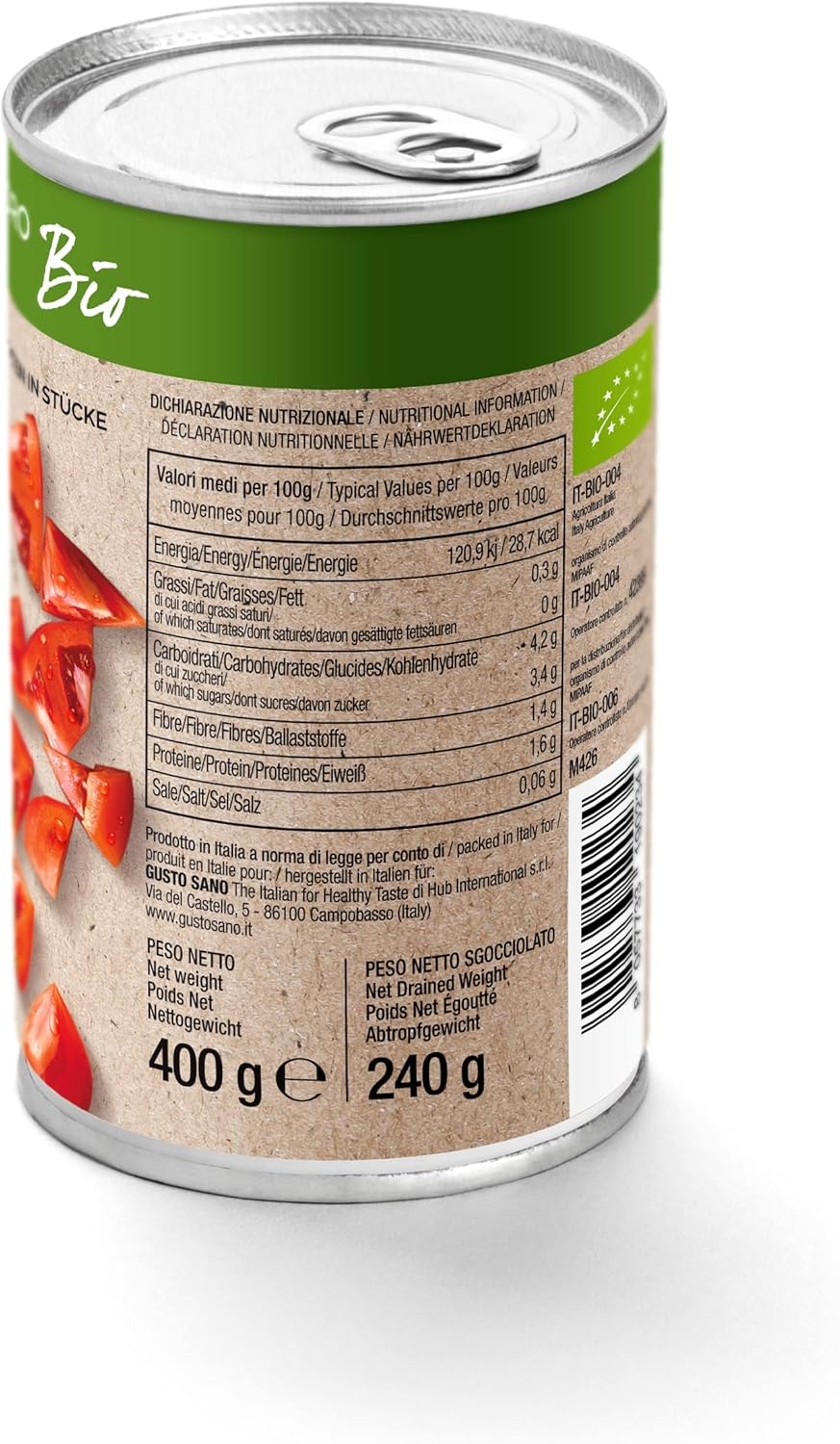 GUSTO SANO POLPA DI POMODORO BIOLOGICO. Polpa per salsa pomodoro 6 Pacchi X 400 Gr: 2,4 KG. Polpa pomodoro BIO per sugo pomodoro 100% italiana, 100% Made in Italy