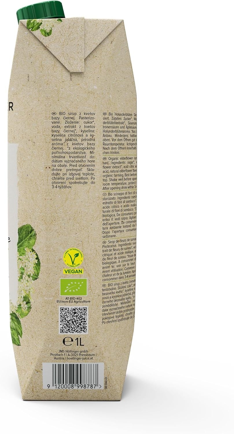 Zucchero*, acqua, estratto di fiori di sambuco*, regolatore di acidità: acido malico, aroma naturale. *Da agricoltura biologica, senza dolcificanti sintetici, aromi, coloranti artificiali o conservanti.