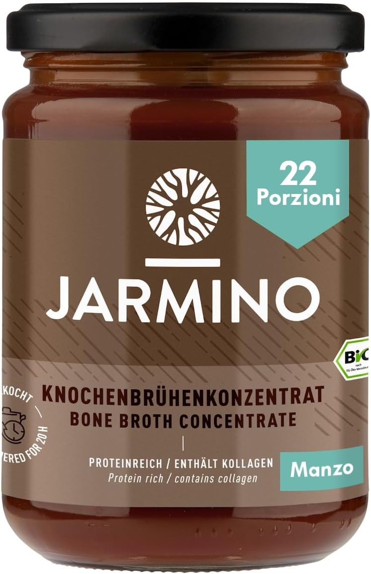 JARMINO Brodo di ossa biologico concentrato di manzo, dalla Germania, 220 g (22 porzioni), ricco di collagene biologico