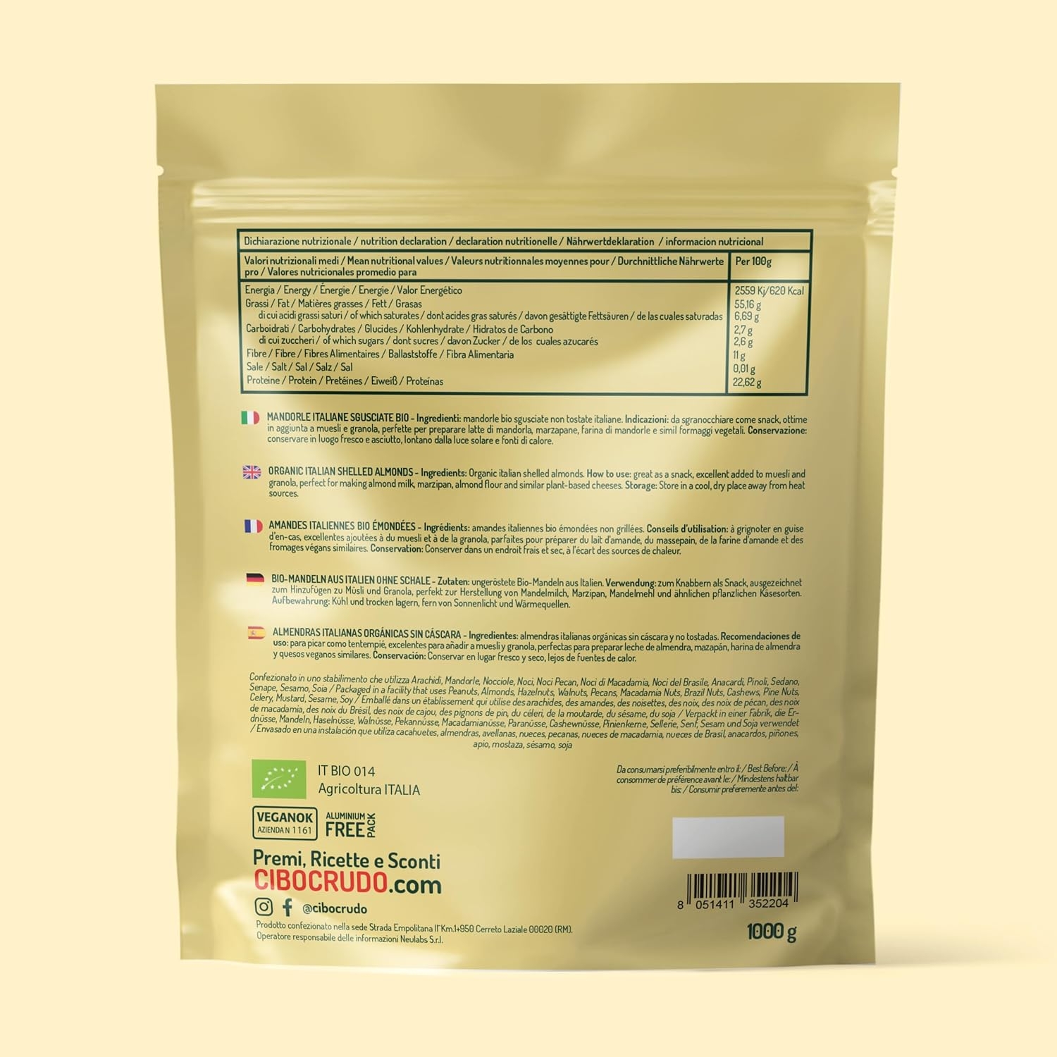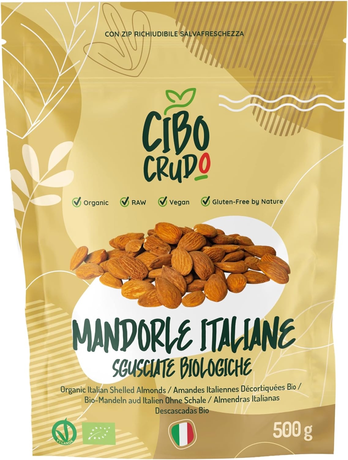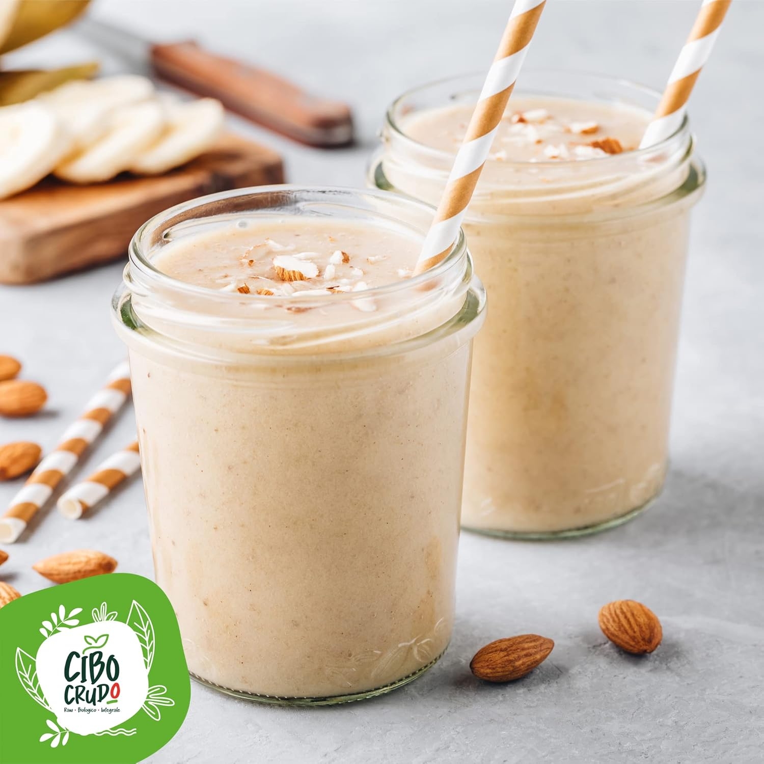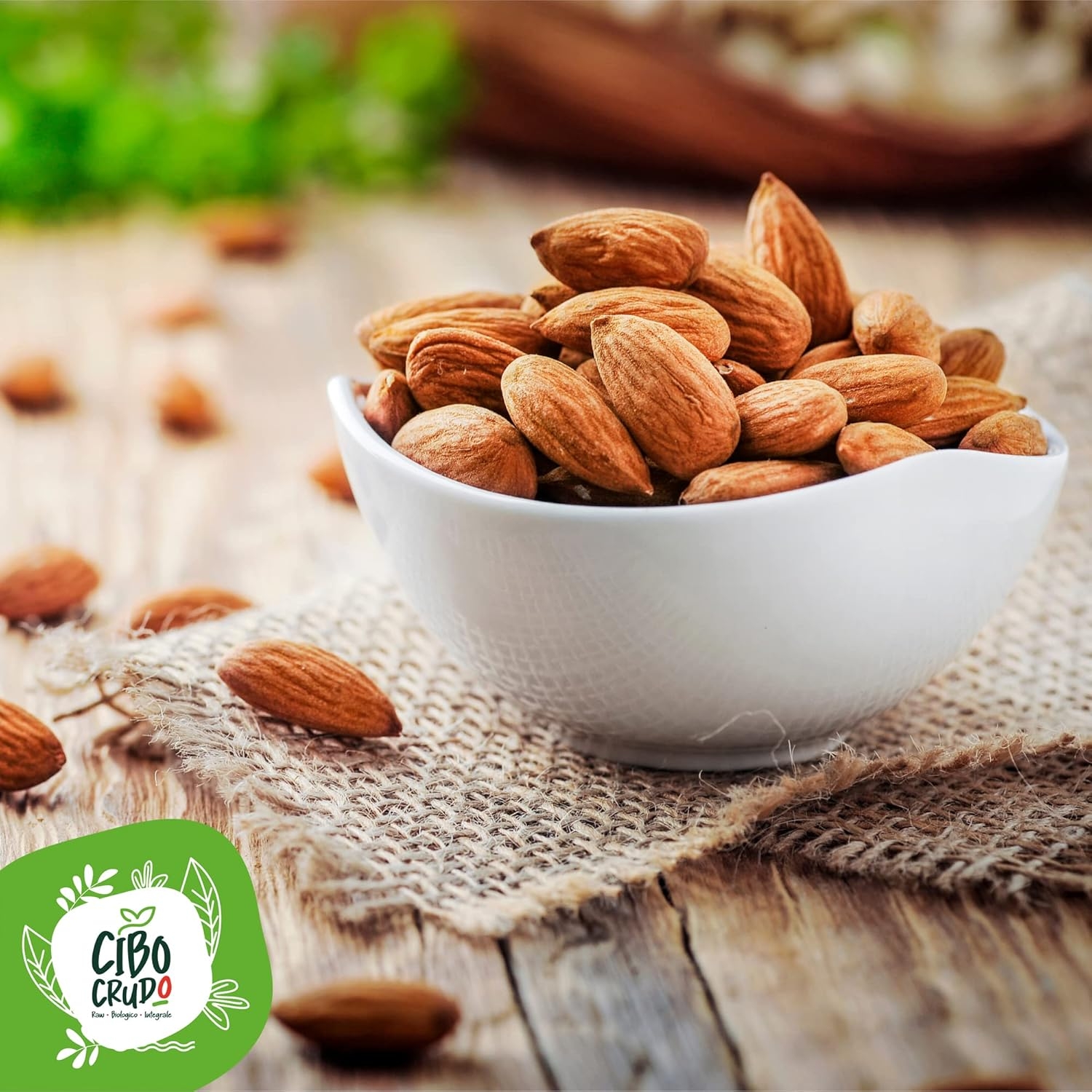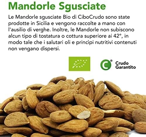 Le Mandorle sgusciate biologiche di CiboCrudo provenienti dalla Sicilia sono prodotte in coltivazioni biologiche e soprattutto sono crude, ovvero durante la filiera di produzione non subiscono alcun trattamento termico superiore ai 42°. Questa caratteristica nella coltivazione si percepisce nel gusto dolce e nella straordinaria croccantezza. Le mandorle siciliane CiboCrudo sono una fonte importante di: Proteine Carboidrati Acidi grassi insaturi Sali minerali è alto il contenuto di potassio, fosforo, magnesio e calcio Zinco, ferro, manganese, selenio e sodio in minore quantità Vitamine del gruppo E e J 18 amminoacidi Ti ricordiamo però che l’apporto calorico delle mandorle, come della frutta secca in generale, è piuttosto consistente e la dose giornaliera consigliata è di 50 gr, se non si desidera un aumento di peso significativo. Al contrario se il tuo obiettivo è prendere qualche chiletto in modo sano e naturale ti consigliamo di integrare questo alimento alla tua dieta! Esistono svariati modi in cui consumare questo delizioso alimento come: Torte e dolci alle mandorle Pane Gelato artigianale fatto in casa Latte vegano CiboCrudo produce alimenti lavorati a basse temperature sempre sotto i 42° privi di sostanze nocive e di glutine. I nostri prodotti sono 100% biologici, integrali e vegani ed utilizziamo tecniche di produzione artigianali per garantire il miglior risultato con il minor impatto sull’ambiente. Scopri il nostro vastissimo catalogo ricco di prodotti biologici, nutrienti e made in Italy! 😋🌎
