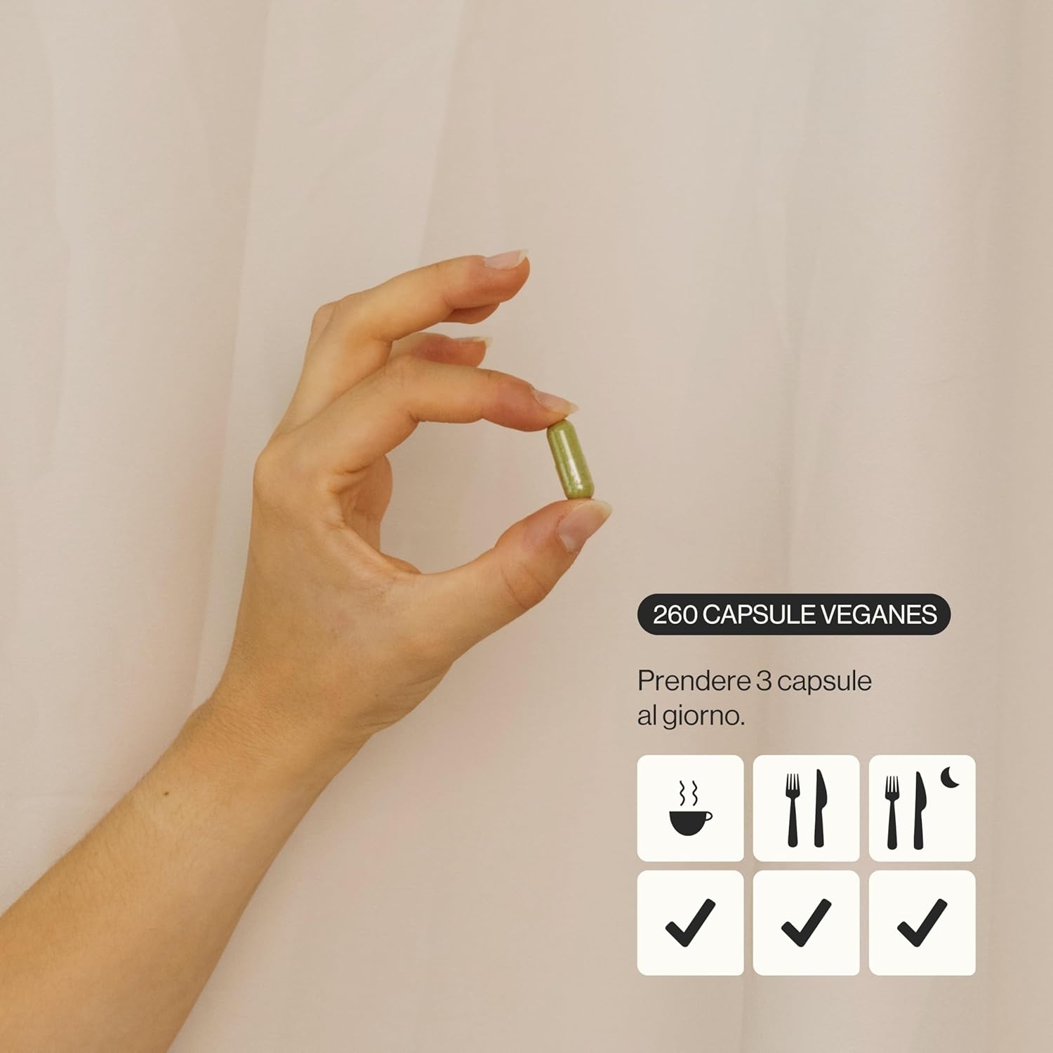 • Moringa Oleifera BIO, Elevata Concentrazione: Nel flacone troverai 260 capsule moringa oleifera polvere (Moringa Powder), per ben 3 mesi di fornitura. Ti consigliamo di assumere 3 moringa bio in capsule al giorno, per una dose da 1800 mg, con 600 mg di moringa oleifera pura per capsula. Il nostro integratore di moringa è stato formulato con moringa oleifera in polvere (moringa oleifera powder) biologica e naturalmente vegana.