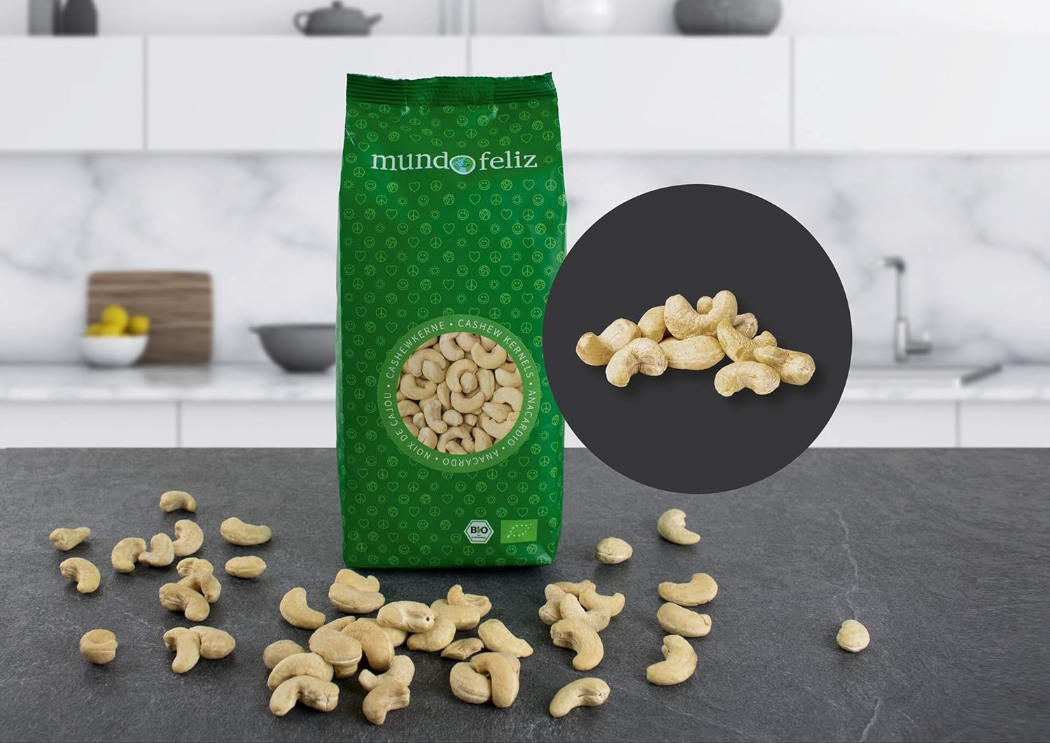Gustati gli anacardi biologici Mundo Feliz (2 x 500 g = 1 kg) come snack salutare, da soli o con i cereali. Sono un’ottima fonte di energia e proteine, e sono anche meno grassi rispetto al resto della frutta secca. I nostri anacardi provengono da piantagioni certificate biologiche e sono non tostati per preservarne le proprietà nutritive. Sono anche privi di additivi, conservanti o OGM