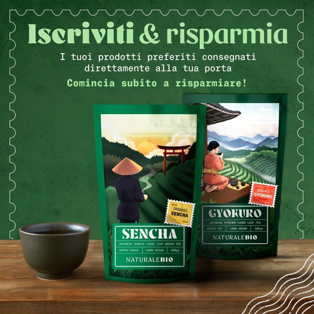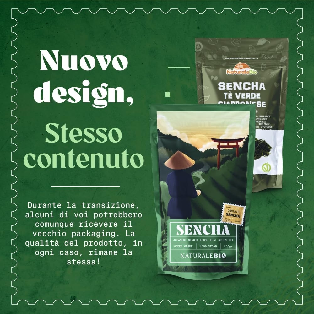 NaturaleBio Tè verde Sencha Giapponese Biologico – Upper Grade – da 200g. Bio, Naturale e Puro, Thè verde in foglie di primo raccolto coltivato in Giappone.