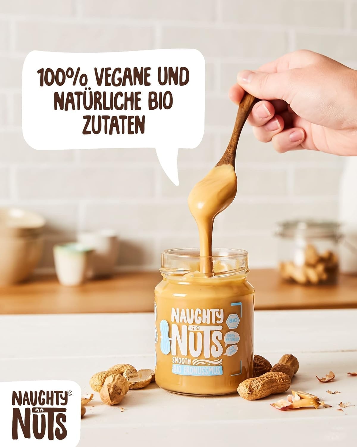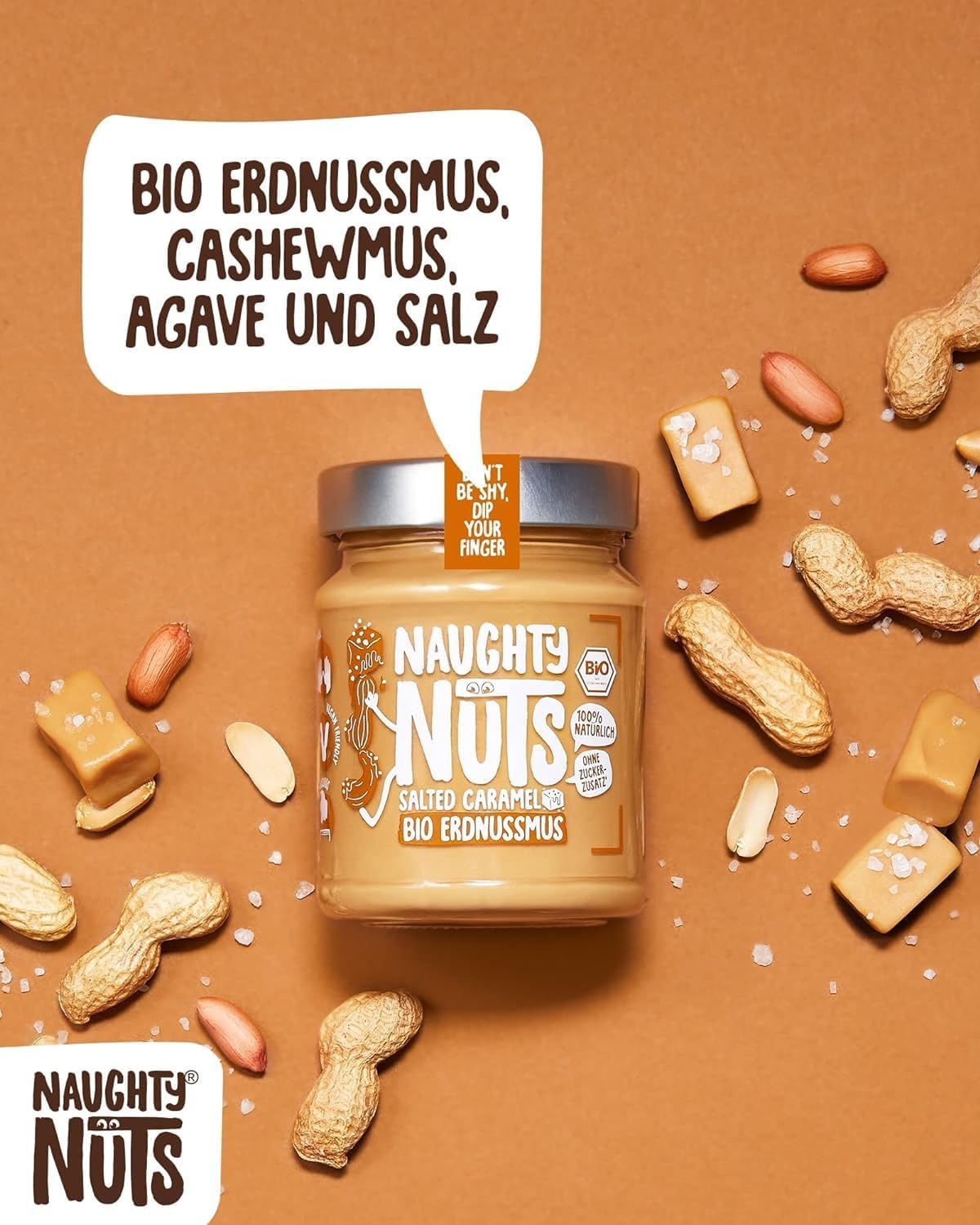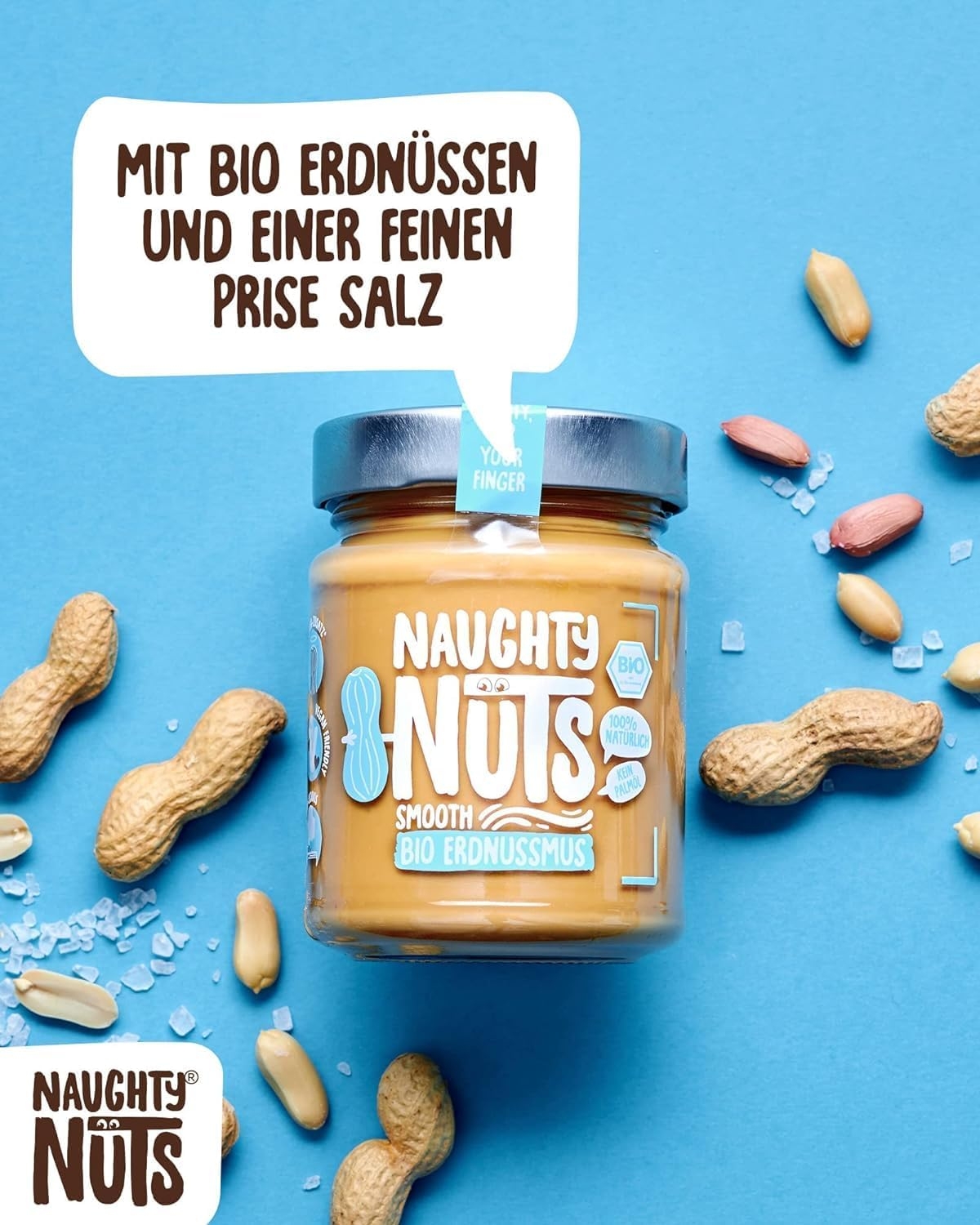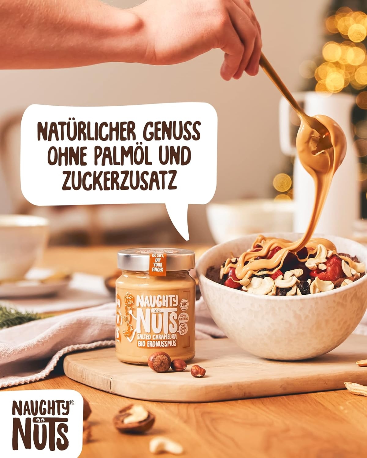 1. POLTIGLIA DI NOCI NO-FRIEND Crediamo che sia deliziosa senza fronzoli. Naughty Nuts è sempre composta da un breve elenco di ingredienti BIOLOGICI naturali al 100%. Lo promettiamo! Non usiamo olio di palma o zuccheri aggiunti. Crediamo anche che Animal i prodotti non trovano posto nei nostri burri di noci, motivo per cui tutti i nostri prodotti sono vegani. 2. SORPRESA CON LE NOCI Con le nostre straordinarie ricette ti assicuriamo un’esplosione di gusto in bocca. Boom! Ti offriamo burro di noci realizzato con ingredienti di altissima qualità, tostati alla perfezione. Che si tratti di uno spuntino veloce direttamente dal barattolo, come condimento per il tuo frullato o per perfezionare vari piatti salati, pensiamo che il burro di noci abbia sempre un buon sapore e si adatti quasi a tutto. Rimani creativo, rimani cattivo! Sviluppiamo nuove ricette calde per te. 3. RENDERE IL MONDO UN PO’ MIGLIORE PASSO DOPO PASSO. Ora sta diventando cattivo, andiamo nudi. Non vogliamo illuderti e svelarti in modo trasparente l’origine della nostra frutta secca. La nostra piccola frutta secca biologica proviene attualmente dall’Italia, dalla Spagna (mandorle), dall’Egitto e dalla Cina (arachidi). In linea con lo spirito green, anche il tema della sostenibilità è per noi molto importante. Grazie alla collaborazione con CarbonCloud dalla Svezia, possiamo calcolare l’impronta di Co2 dei nostri singoli prodotti e ottimizzarli continuamente. Ma non vogliamo tenerlo solo per noi, in modo che possiate comprendere l’impronta di Co2 di ogni prodotto e prendere una decisione consapevole.