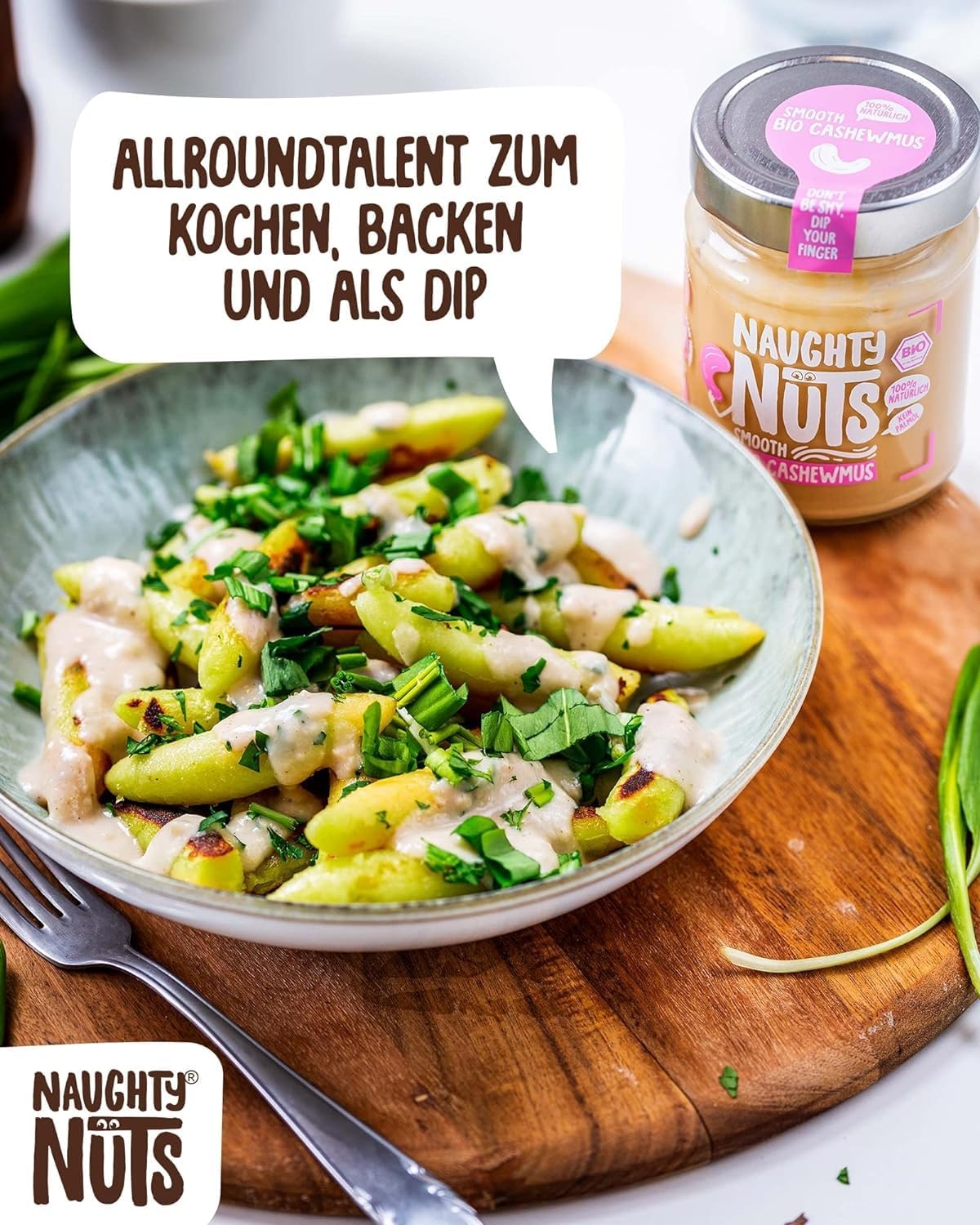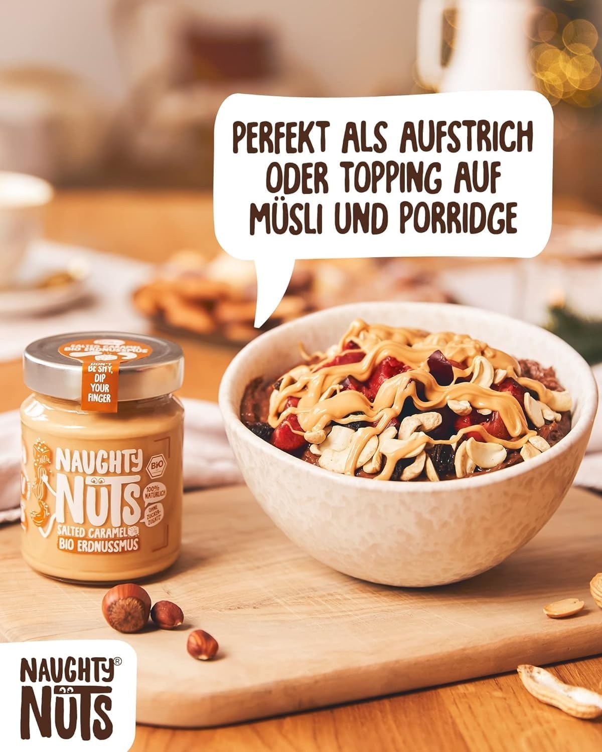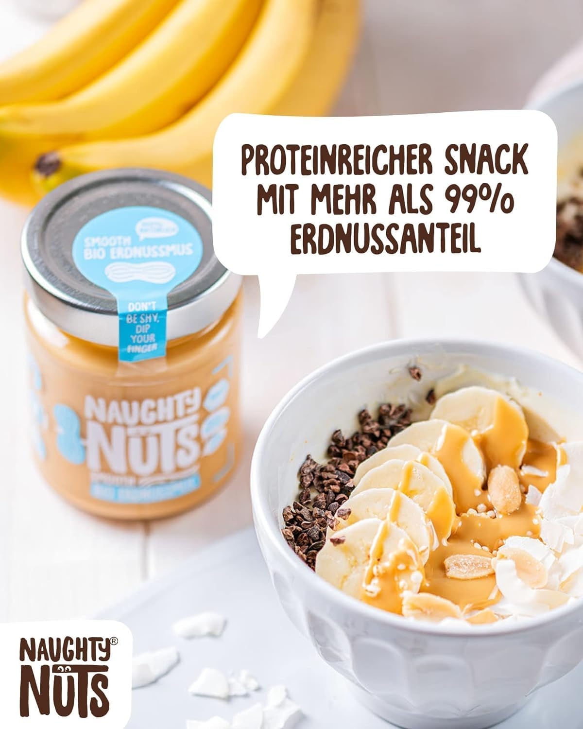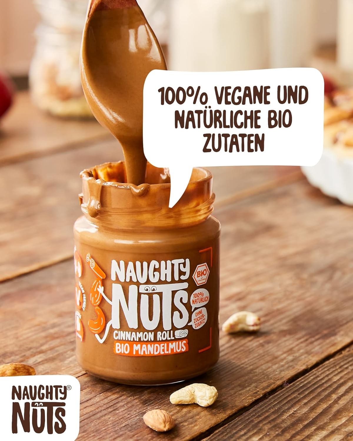 1. POLTIGLIA DI NOCI NO-FRIEND Crediamo che sia deliziosa senza fronzoli. Naughty Nuts è sempre composta da un breve elenco di ingredienti BIOLOGICI naturali al 100%. Lo promettiamo! Non usiamo olio di palma o zuccheri aggiunti. Crediamo anche che Animal i prodotti non trovano posto nei nostri burri di noci, motivo per cui tutti i nostri prodotti sono vegani. 2. SORPRESA CON LE NOCI Con le nostre straordinarie ricette ti assicuriamo un’esplosione di gusto in bocca. Boom! Ti offriamo burro di noci realizzato con ingredienti di altissima qualità, tostati alla perfezione. Che si tratti di uno spuntino veloce direttamente dal barattolo, come condimento per il tuo frullato o per perfezionare vari piatti salati, pensiamo che il burro di noci abbia sempre un buon sapore e si adatti quasi a tutto. Rimani creativo, rimani cattivo! Sviluppiamo nuove ricette calde per te. 3. RENDERE IL MONDO UN PO’ MIGLIORE PASSO DOPO PASSO. Ora sta diventando cattivo, andiamo nudi. Non vogliamo illuderti e svelarti in modo trasparente l’origine della nostra frutta secca. La nostra piccola frutta secca biologica proviene attualmente dall’Italia, dalla Spagna (mandorle), dall’Egitto e dalla Cina (arachidi). In linea con lo spirito green, anche il tema della sostenibilità è per noi molto importante. Grazie alla collaborazione con CarbonCloud dalla Svezia, possiamo calcolare l’impronta di Co2 dei nostri singoli prodotti e ottimizzarli continuamente. Ma non vogliamo tenerlo solo per noi, in modo che possiate comprendere l’impronta di Co2 di ogni prodotto e prendere una decisione consapevole.