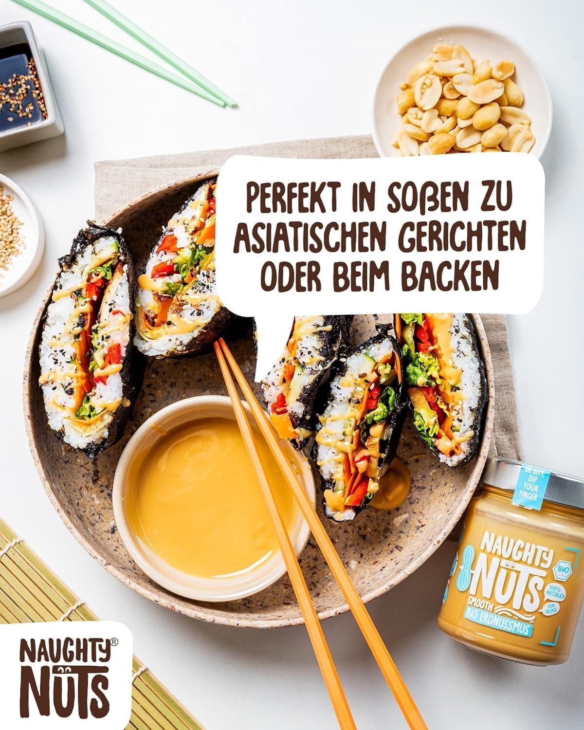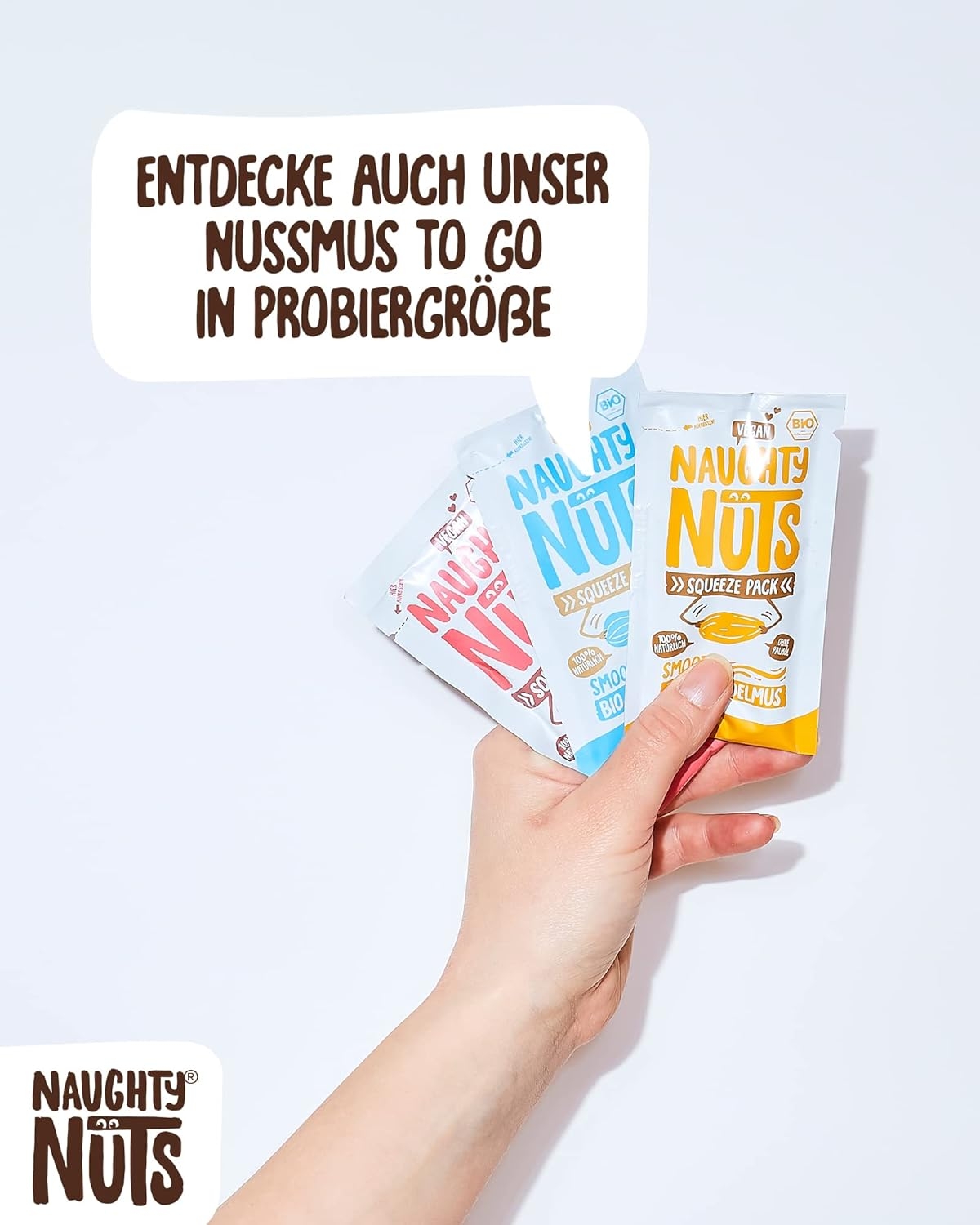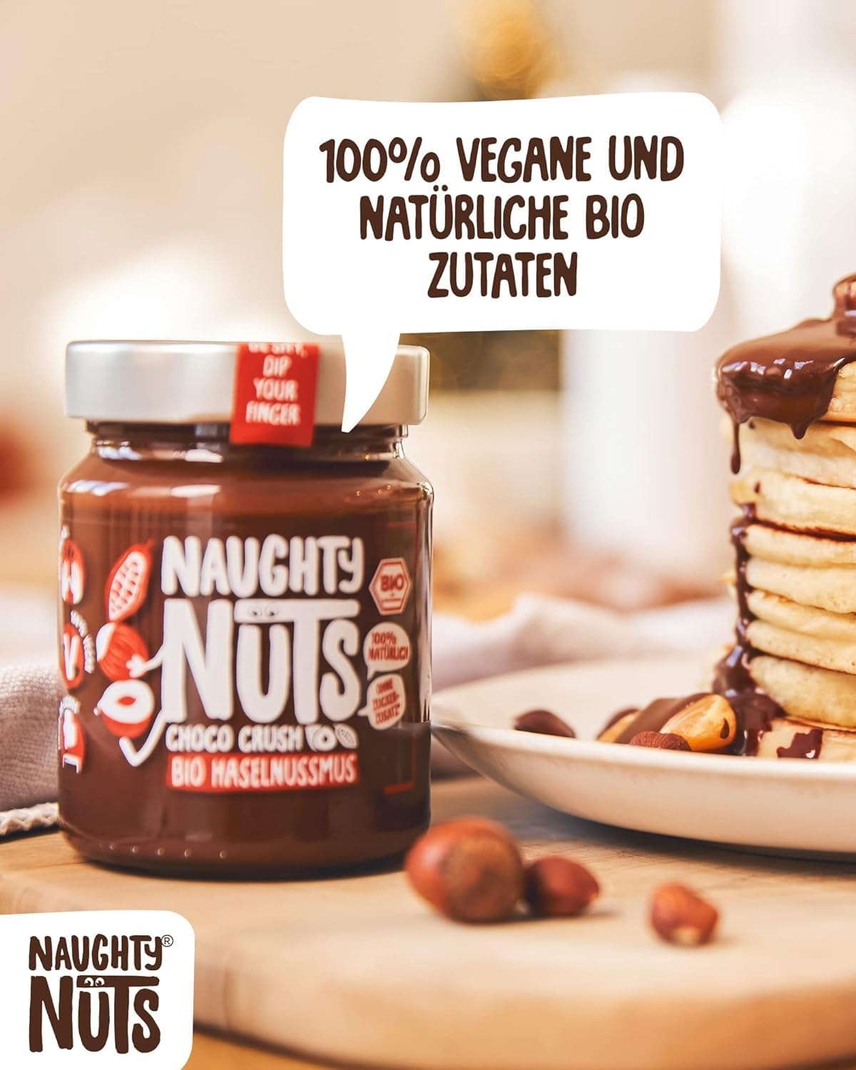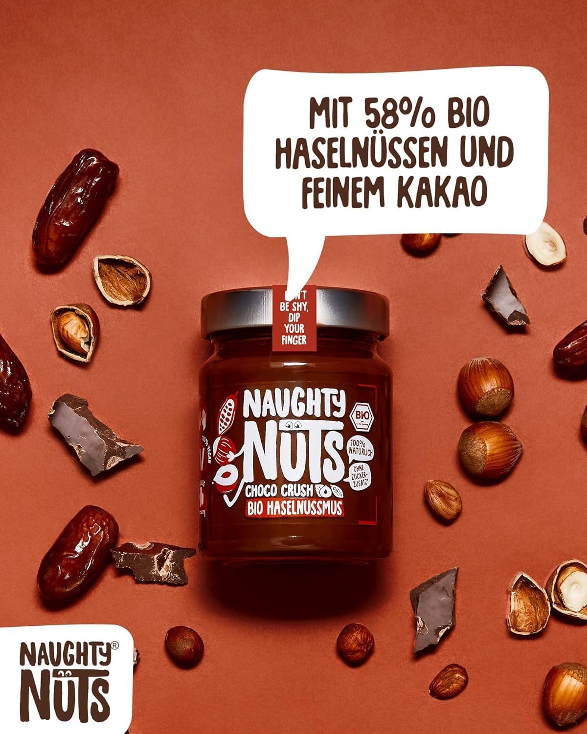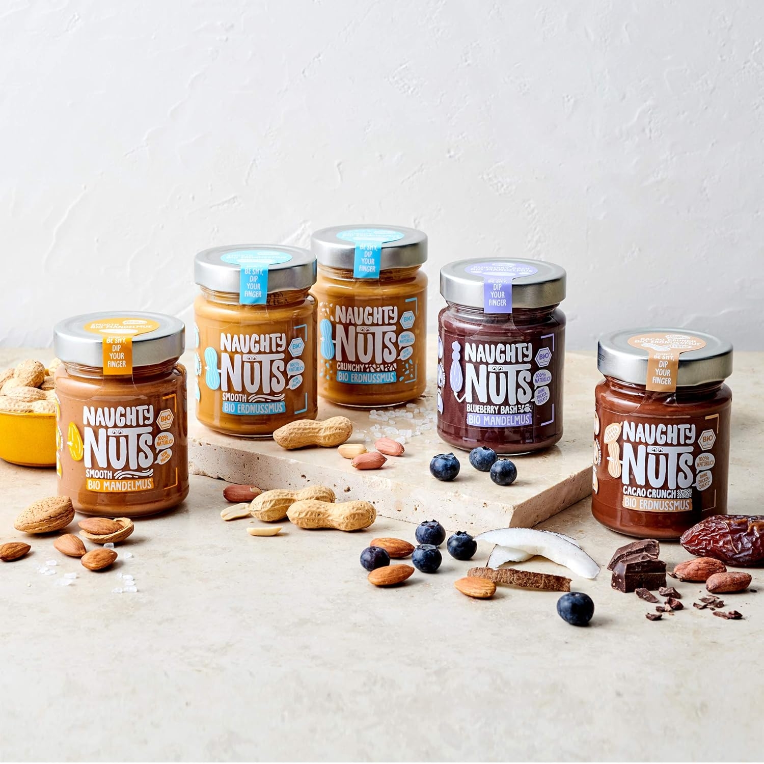 1. POLTIGLIA DI NOCI NO-FRIEND Crediamo che sia deliziosa senza fronzoli. Naughty Nuts è sempre composta da un breve elenco di ingredienti BIOLOGICI naturali al 100%. Lo promettiamo! Non usiamo olio di palma o zuccheri aggiunti. Crediamo anche che Animal i prodotti non trovano posto nei nostri burri di noci, motivo per cui tutti i nostri prodotti sono vegani. 2. SORPRESA CON LE NOCI Con le nostre straordinarie ricette ti assicuriamo un’esplosione di gusto in bocca. Boom! Ti offriamo burro di noci realizzato con ingredienti di altissima qualità, tostati alla perfezione. Che si tratti di uno spuntino veloce direttamente dal barattolo, come condimento per il tuo frullato o per perfezionare vari piatti salati, pensiamo che il burro di noci abbia sempre un buon sapore e si adatti quasi a tutto. Rimani creativo, rimani cattivo! Sviluppiamo nuove ricette calde per te. 3. RENDERE IL MONDO UN PO’ MIGLIORE PASSO DOPO PASSO. Ora sta diventando cattivo, andiamo nudi. Non vogliamo illuderti e svelarti in modo trasparente l’origine della nostra frutta secca. La nostra piccola frutta secca biologica proviene attualmente dall’Italia, dalla Spagna (mandorle), dall’Egitto e dalla Cina (arachidi). In linea con lo spirito green, anche il tema della sostenibilità è per noi molto importante. Grazie alla collaborazione con CarbonCloud dalla Svezia, possiamo calcolare l’impronta di Co2 dei nostri singoli prodotti e ottimizzarli continuamente. Ma non vogliamo tenerlo solo per noi, in modo che possiate comprendere l’impronta di Co2 di ogni prodotto e prendere una decisione consapevole.