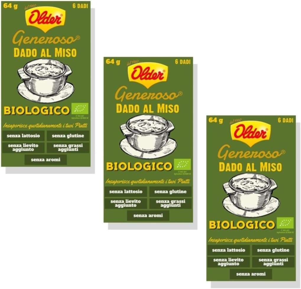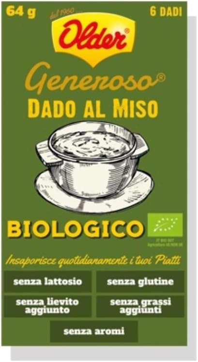 “6 dadi al miso biologico”: preparato per brodo gusto vegetale biologico senza lievito aggiunto, senza glutammato aggiunto, a basso contenuto di grassi. (3 confezione x 64 grammi). Made in Italy. [L’AZIENDA] – La ditta Older, azienda storica bresciana, produce preparati per brodo e condimenti in forma pastosa, in polvere o granulare, tutti con formulazioni personalizzate.