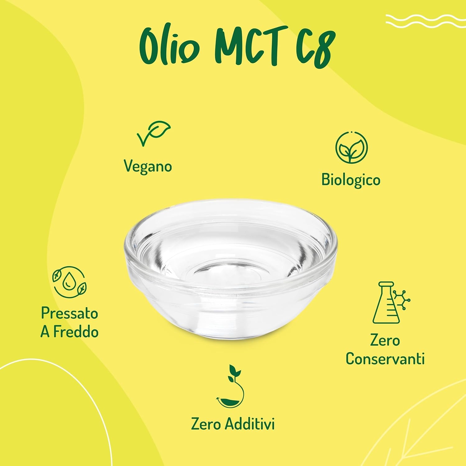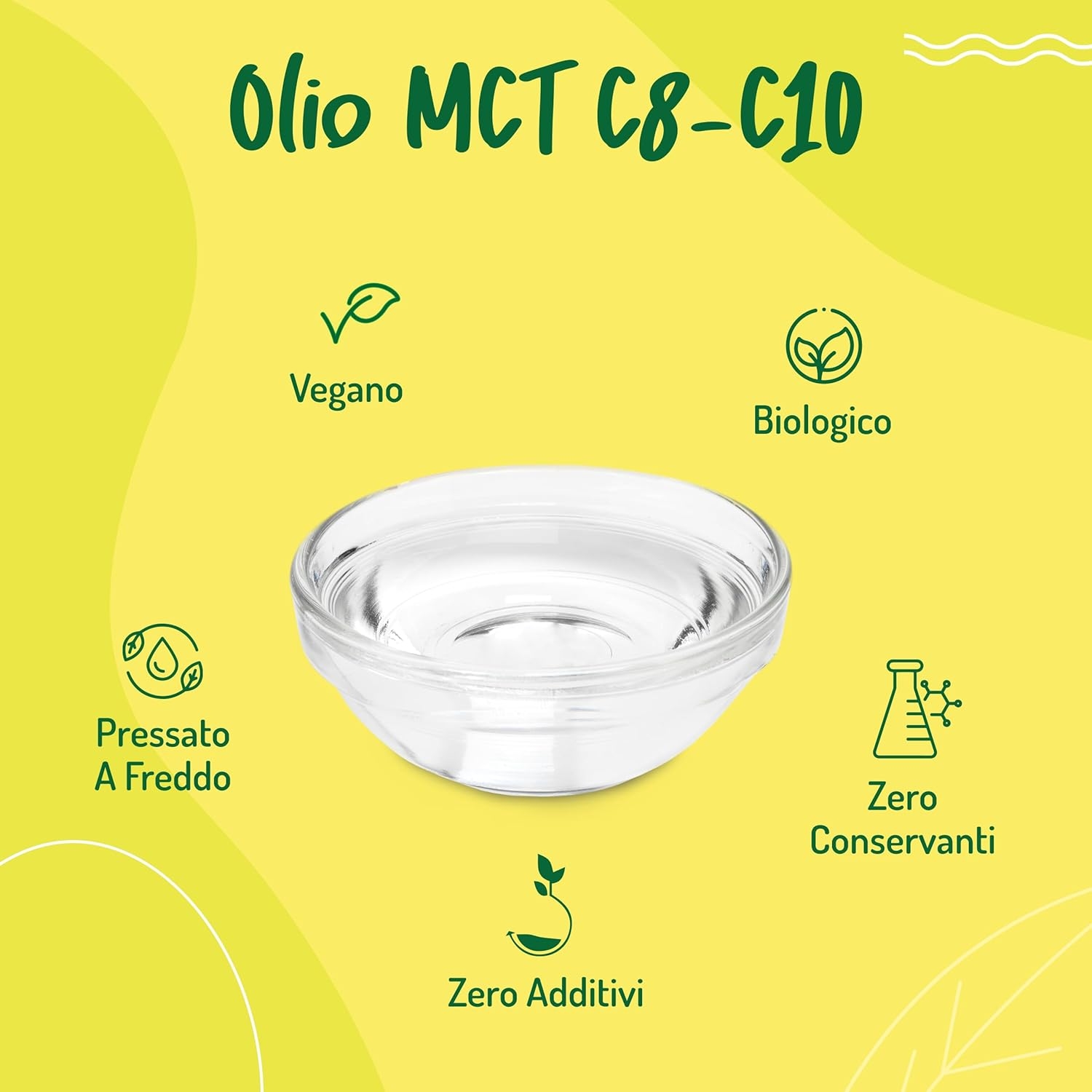 - Olio di Cocco Spremuto a Freddo MCT C8 al 60% C10 al 40% è un olio di cocco alimentare biologico costituito quasi esclusivamente da grassi della catena media MCT C8-C10. Olio di Cocco Biologico Ottimo per atleti e per chi segue una dieta chetogenica.