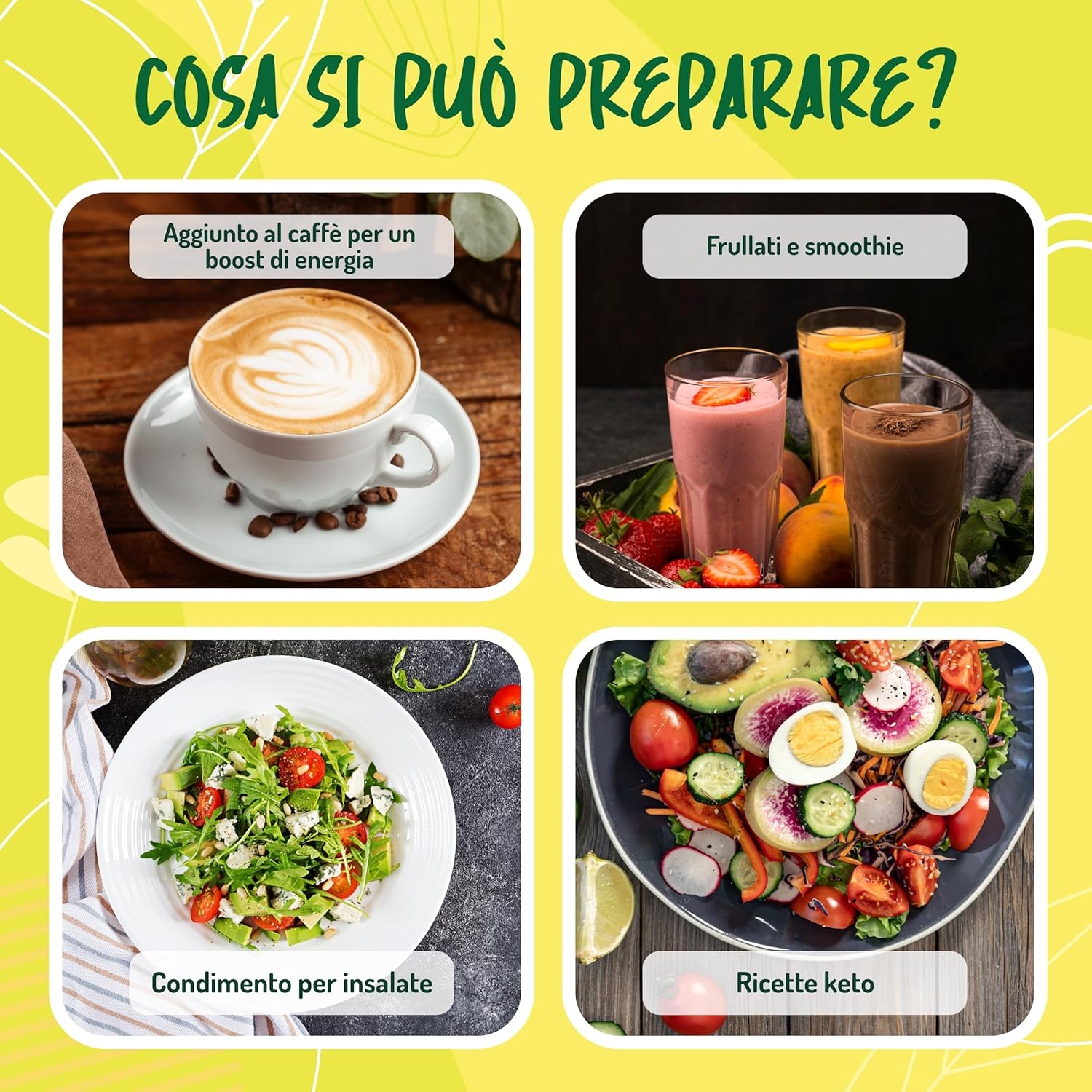 - USO VERSATILE – Olio di Cocco Alimentare ottimo per sostituire il normale olio da cucina, questo alimento risulta un olio maggiormente salutare per preparare piatti di ogni tipo, bulletproof coffee e come dressing per insalate.