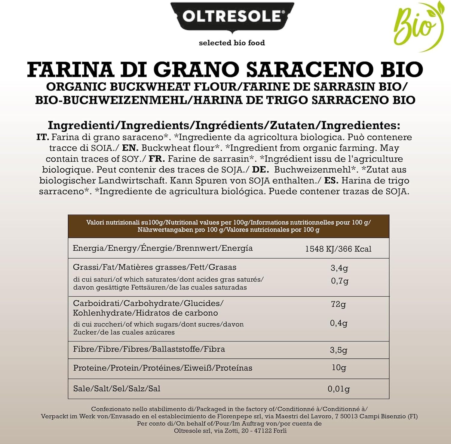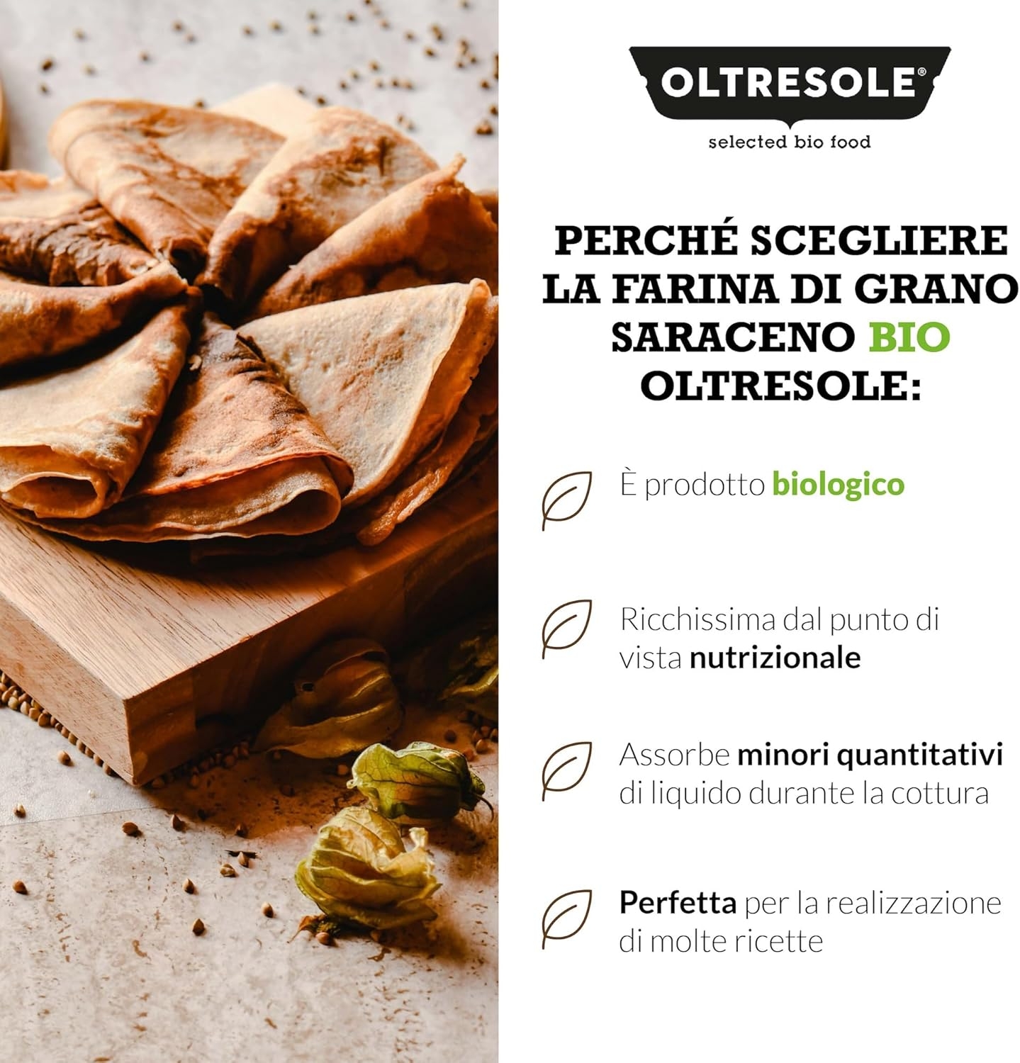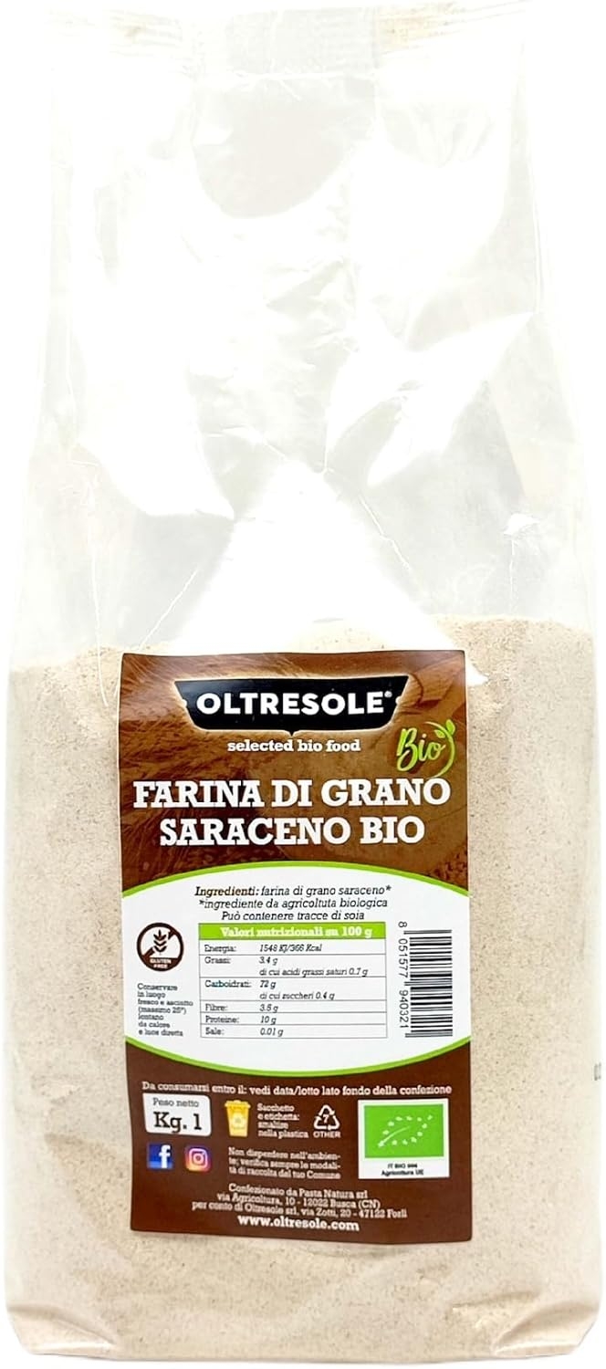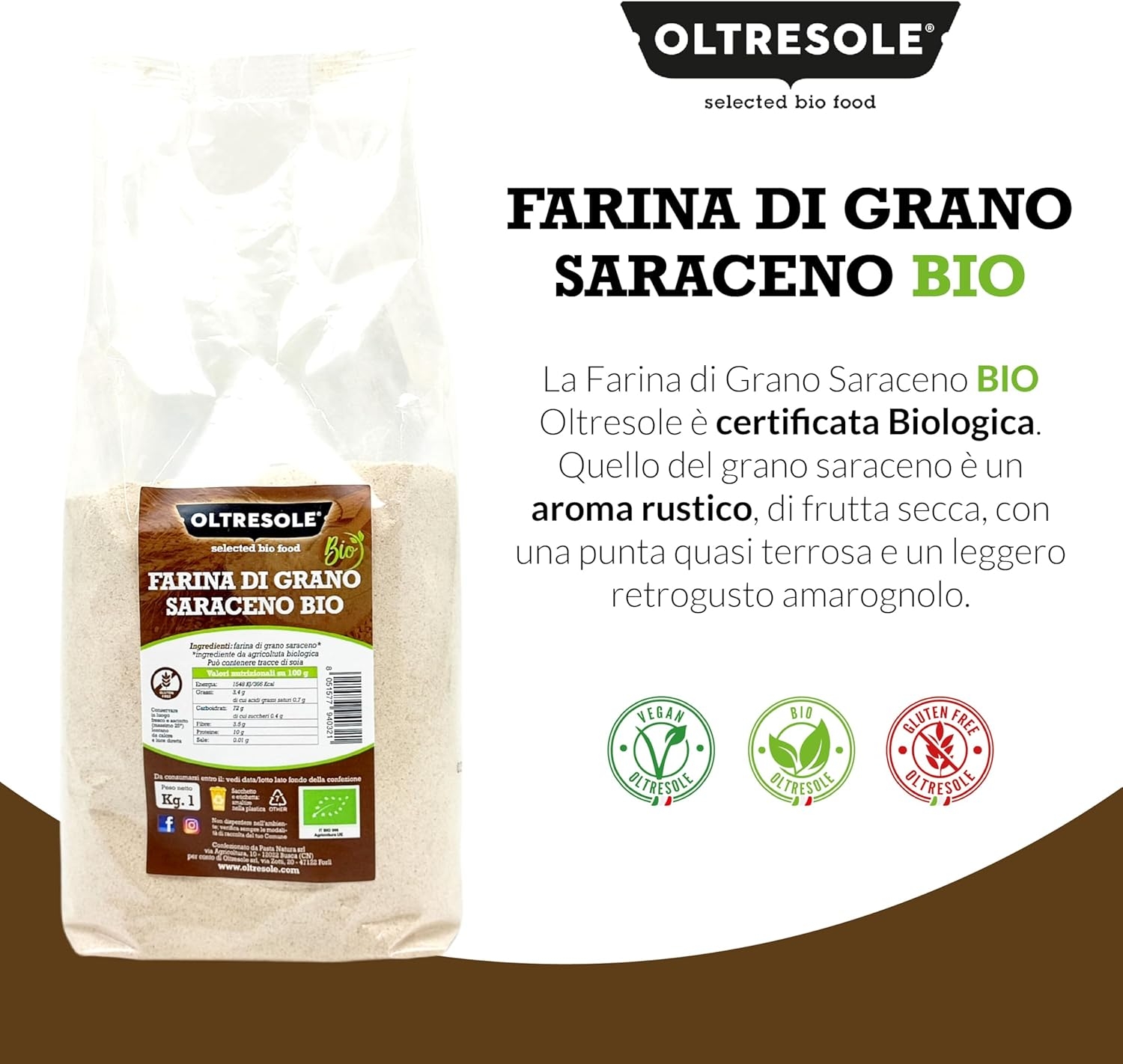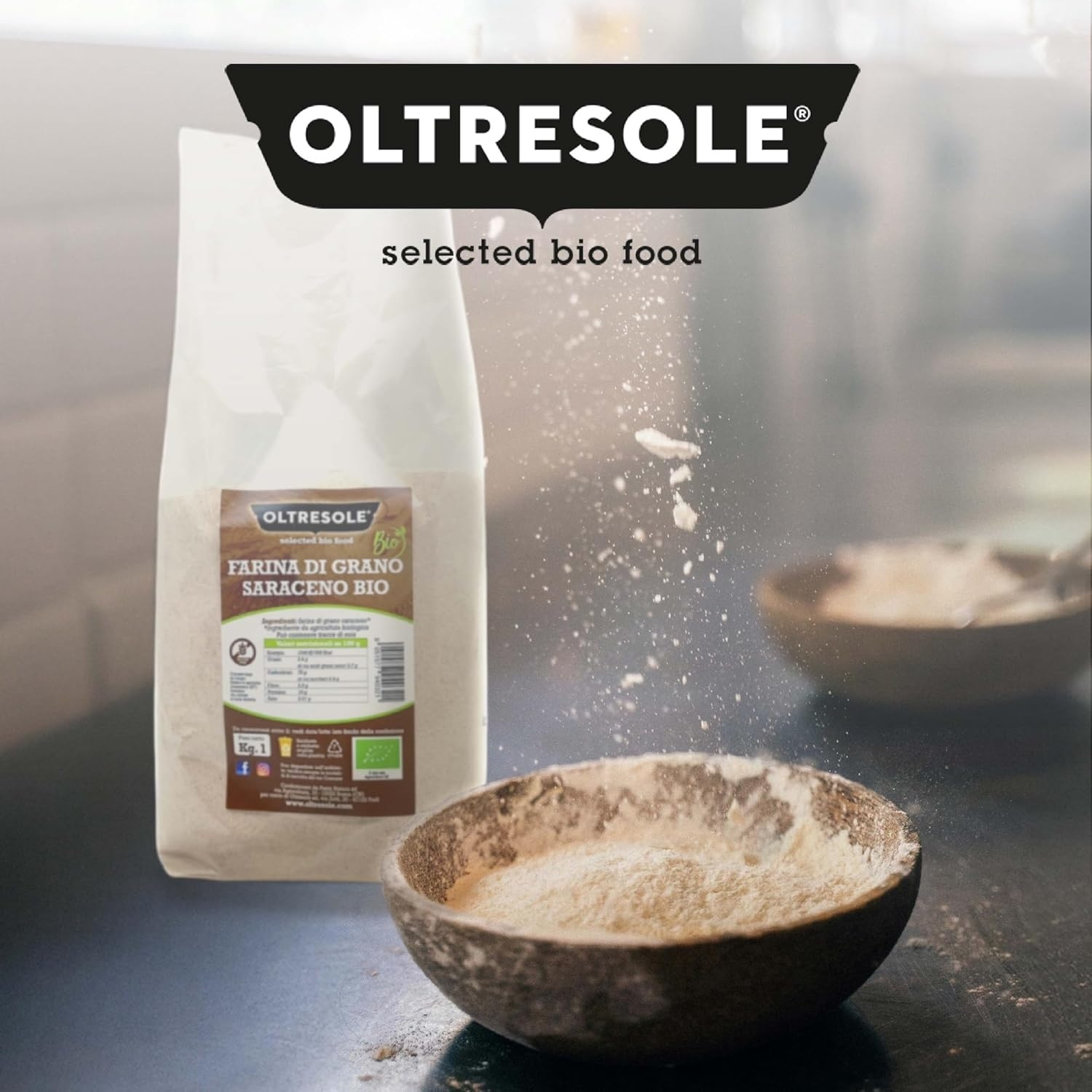 Oltresole, Farina Italiana di Grano Saraceno Biologica 1 Kg, Farina Ricca di Fibre e Proteine Senza Glutine, Ideale per Celiaci, Pane, Dolci e Pasta Fatta in Casa