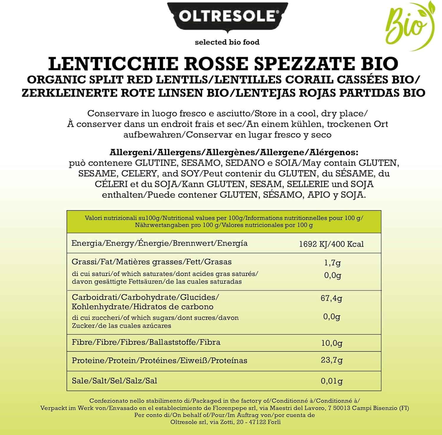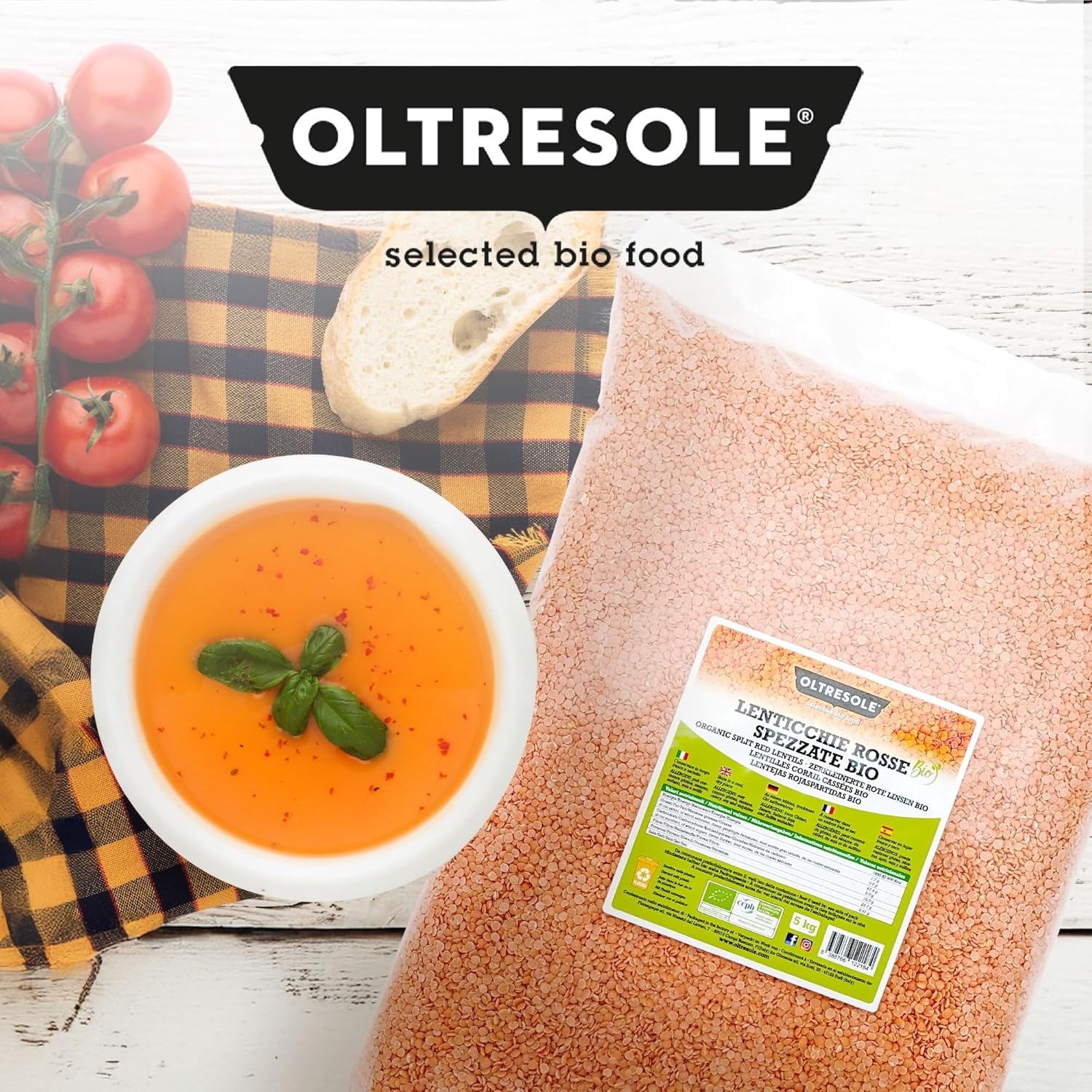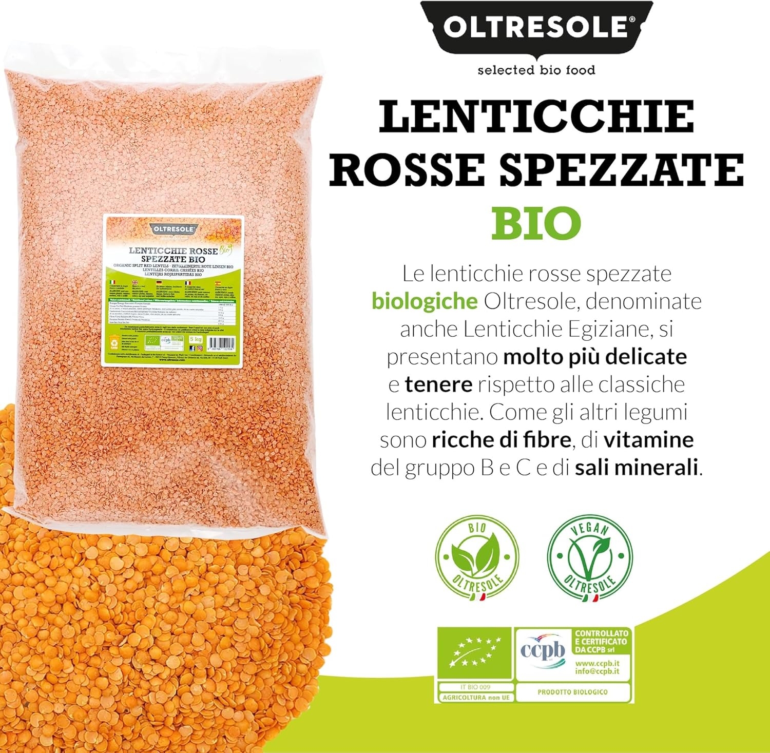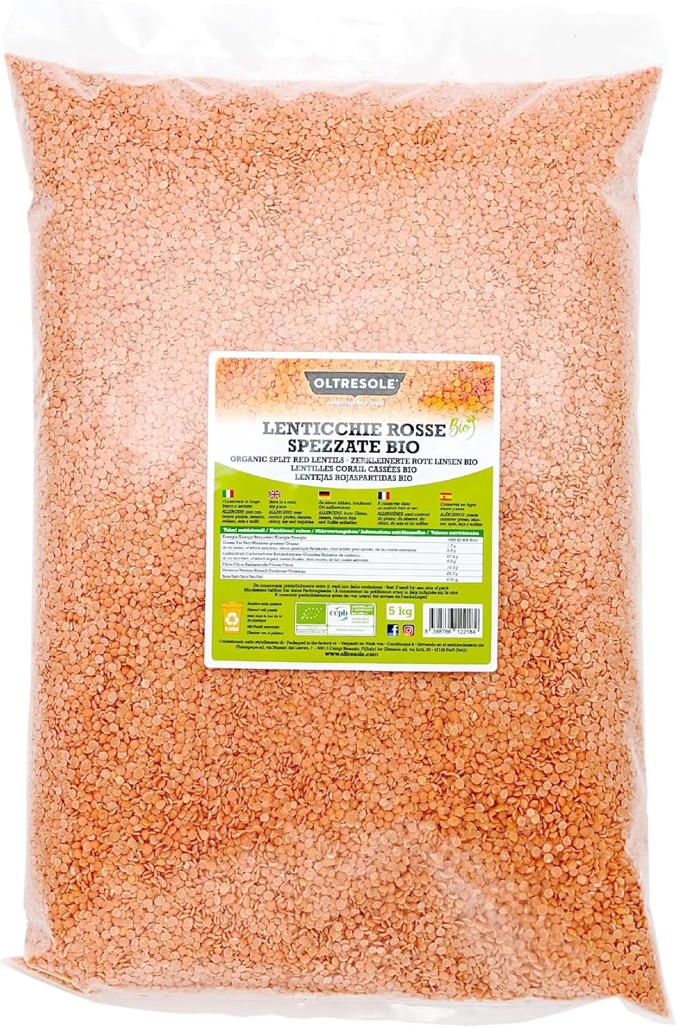 Oltresole, Lenticchie Rosse Spezzate Biologiche 1 Kg, Legumi Secchi Bio Decorticati e Spezzati, Non Richiedono Ammollo, Fonte di Proteine e Fibre, Confezione Ideale per Famiglie