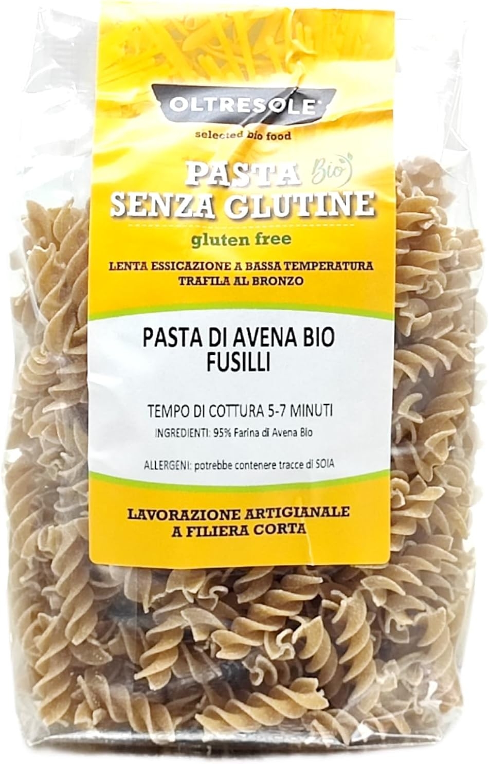 • PASTA DI AVENA – I fusilli di avena bio di oltresole, in confezione da 350 g, sono realizzati al 100% con farina di avena biologica italiana. Ideali per famiglie numerose o per fare scorta, per chi cerca una pasta nutriente e versatile. L’avena è nota per il suo alto contenuto di fibre e proteine, essenziale per una dieta equilibrata e salutare. Questa pasta è inoltre priva di glutine, il che la rende adatta a diete specifiche come quelle degli intolleranti, ma anche a quelle vegane e vegetariane