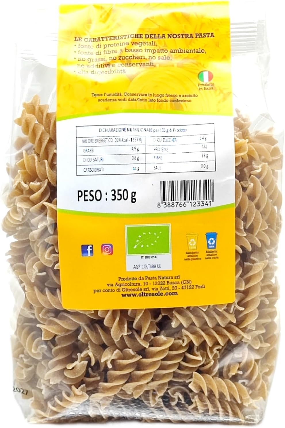 • SOSTENIBILITÀ – Oltresole si impegna nella sostenibilità ambientale e sociale. La materia prima è biologica e proviene da coltivazioni italiane che rispettano l’ecosistema, utilizzando tecniche agricole sostenibili che preservano la fertilità del suolo e riducono l’impatto ambientale. Il packaging è progettato per ridurre l’uso di plastica e minimizzare gli sprechi. Scegliendo i fusilli di avena Oltresole, contribuisci a sostenere pratiche agricole eco-friendly
