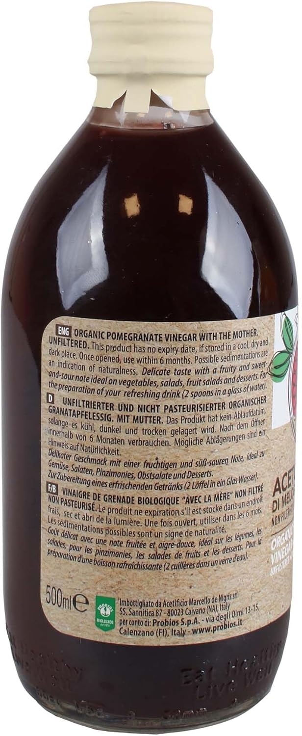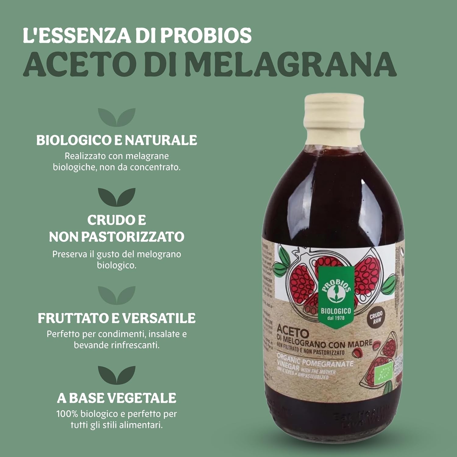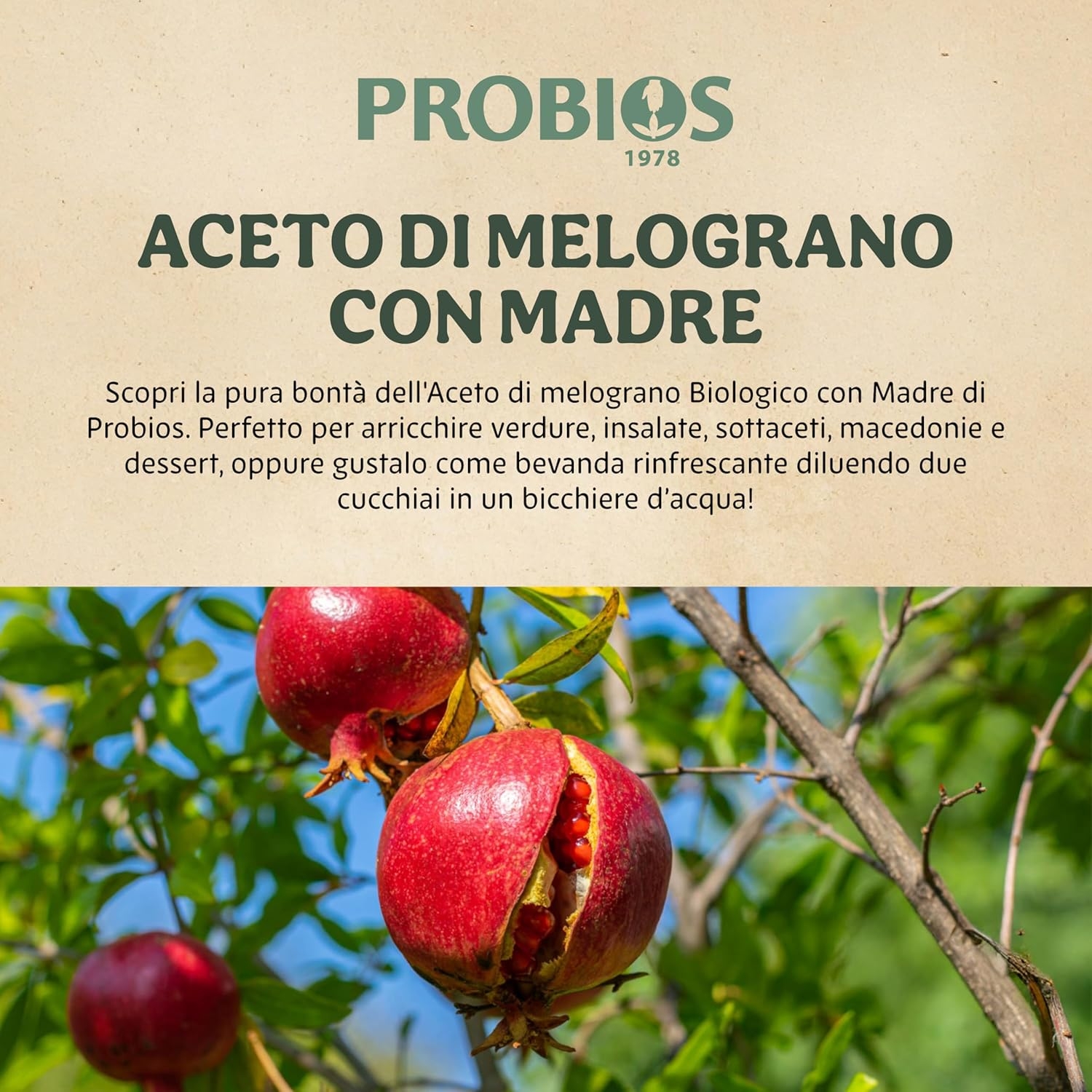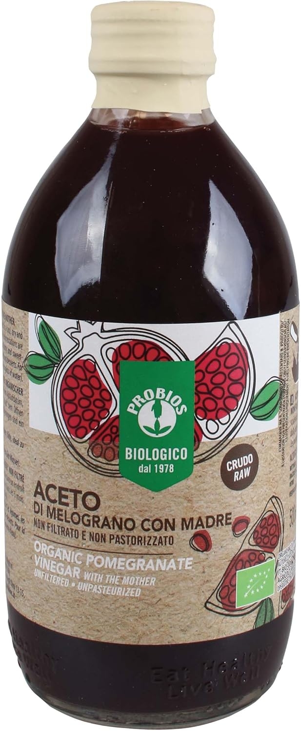 Probios Aceto Di Melograno Con Madre Biologica – Crudo e Non Filtrato – Fermentato Naturalmente Per Cucinare, Condimenti Per Insalata e Bevande Rinfrescanti – Confezione da 500 ml