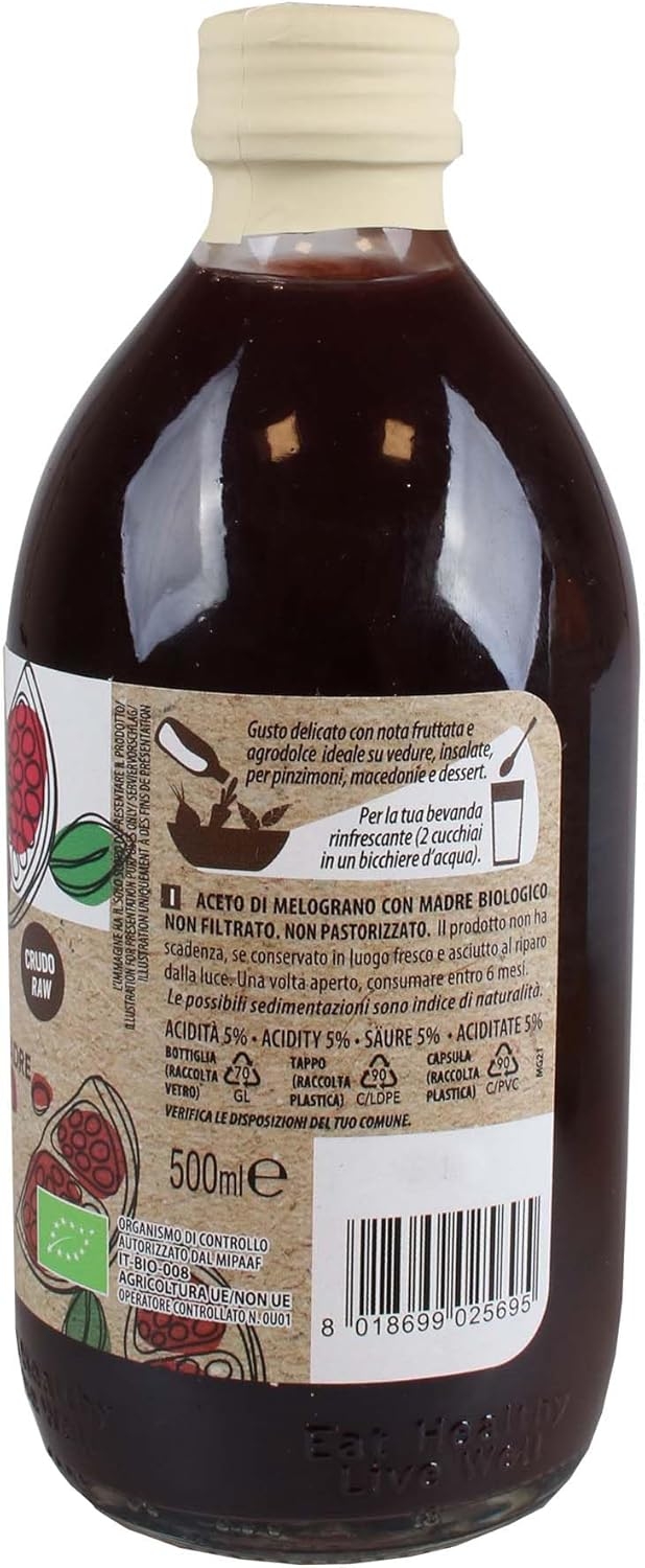 • Crudo e non filtrato per una qualità autentica: ricavato da melograni coltivati ​​biologicamente, questo aceto di melograno è prodotto con cura attraverso un processo di fermentazione naturale, che preserva l’essenza dei suoi ingredienti mantenendone il sapore originale.