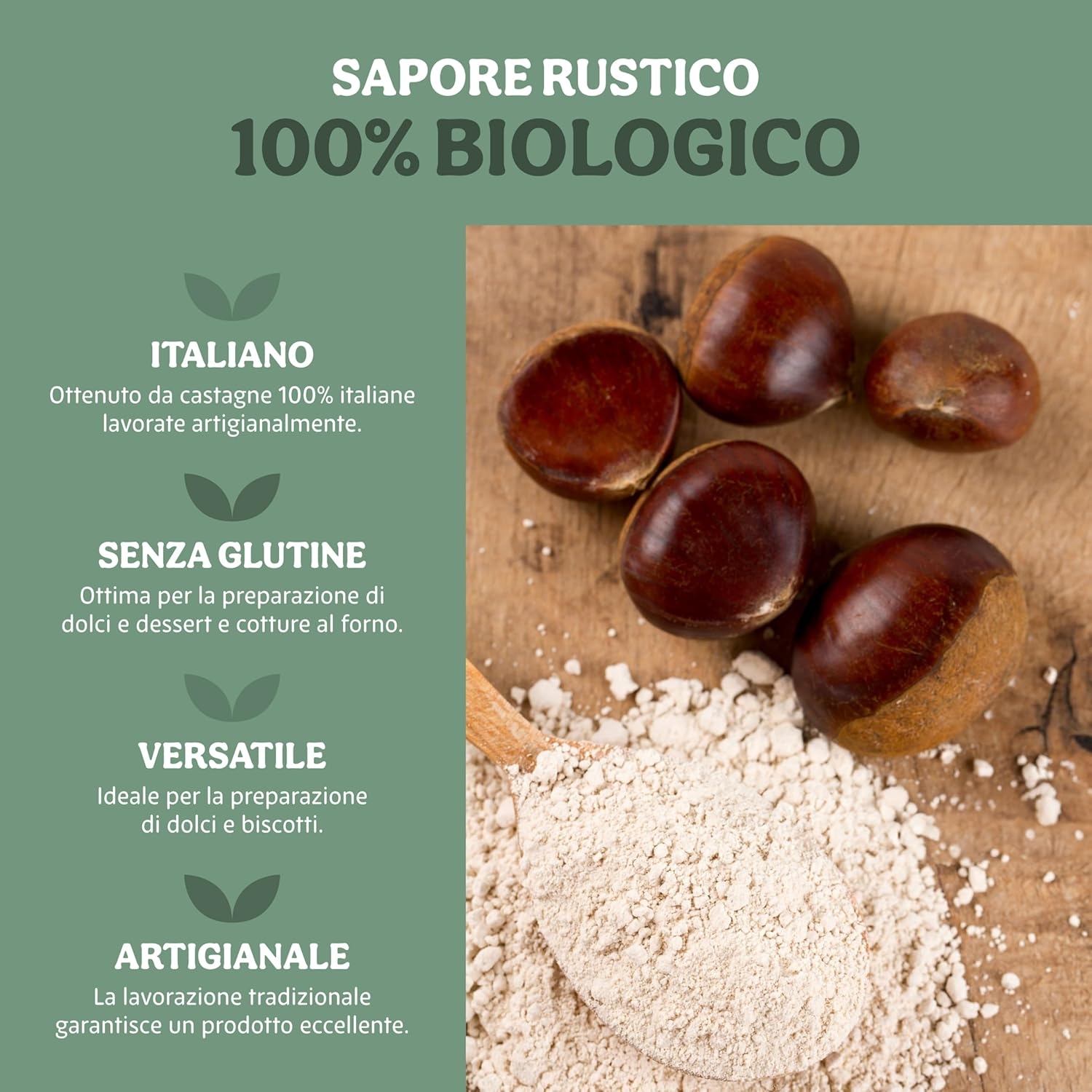 La nostra farina di castagne bio racchiude il sapore autentico dell’autunno italiano in un solo ingrediente. Proveniente da castagneti biologici selezionati, viene macinata a pietra in piccoli lotti per conservare le sue note naturalmente dolci e il profumo leggermente affumicato. È un ingrediente immancabile nella dispensa di chi ama cucinare con intensità e creatività. La farina castagne è perfetta per dolci soffici, biscotti rustici, impasti salati o per addensare salse e creme. La sua consistenza vellutata e il colore caldo donano carattere alle ricette, rendendola un’alternativa versatile per chi ama sperimentare. Il pratico formato da 375g con confezione richiudibile è perfetto per usi frequenti e preparazioni stagionali. Con questa farina di castagne, ogni piatto acquista un tocco di tradizione e gusto autentico.