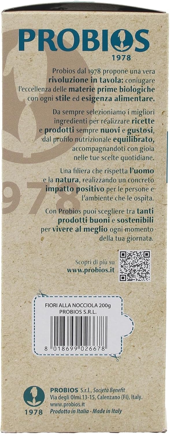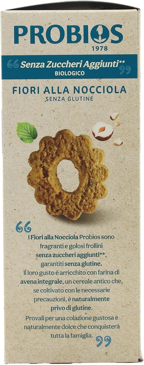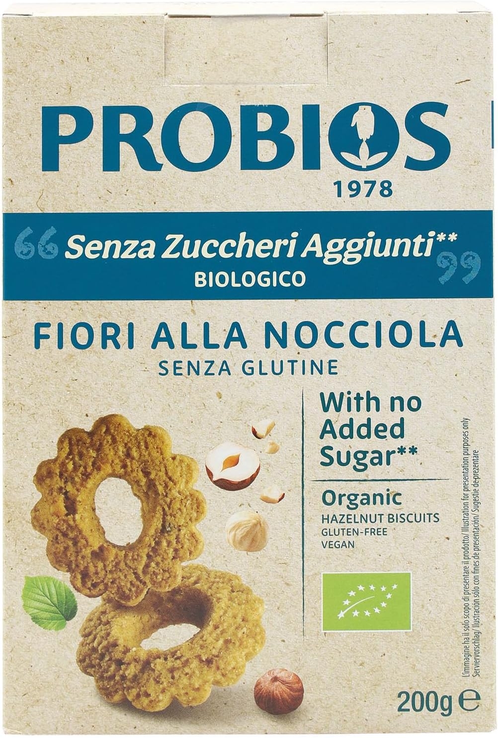 Probios Fiori alla Nocciola biologici – Biscotti a forma di fiore – Senza glutine e senza lattosio – Profumati e croccanti senza zuccheri aggiunti – Confezione da 8 x 200 g