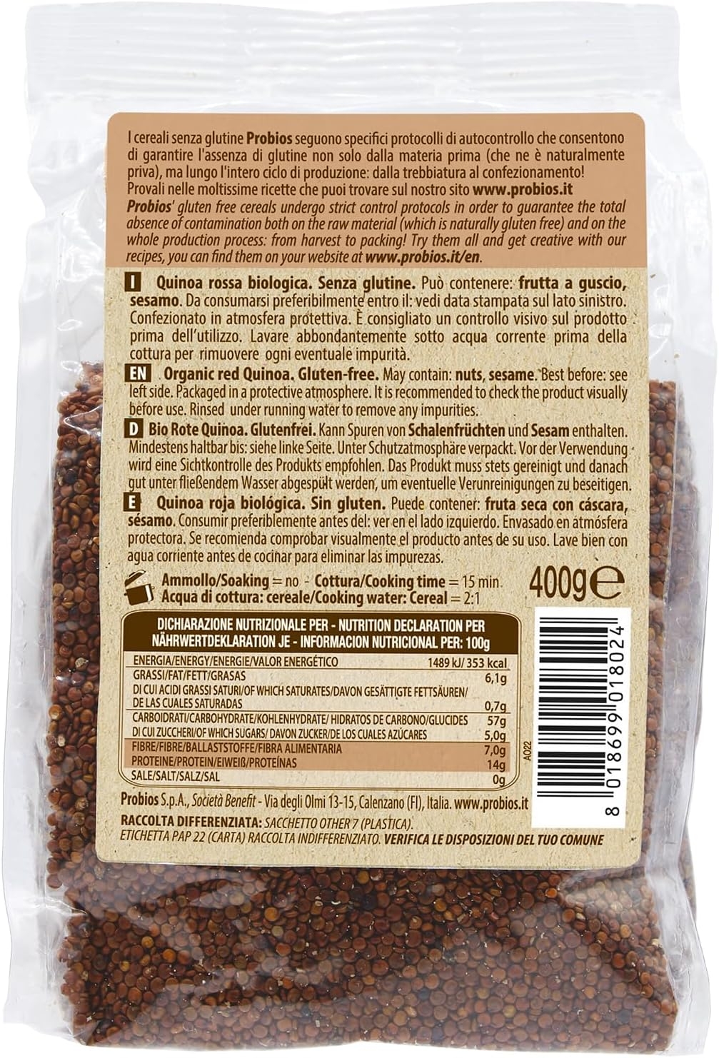 Probios Quinoa rossa biologica – Integrale naturalmente senza glutine – Ricca di fibre e proteine vegetali – 400 g