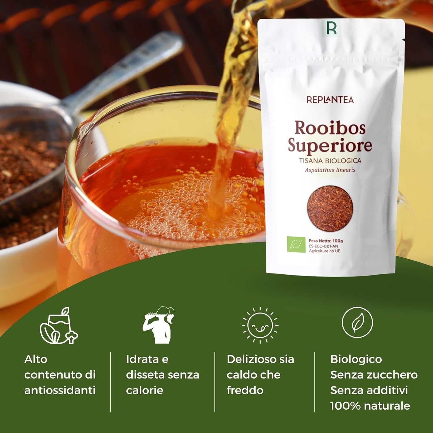 ROOIBOS BIO Superiore 100g (50 Tazze) | Tè Rooibos Sfuso Biologico con Grande Aroma e Gusto Delicato REPLANTEA®