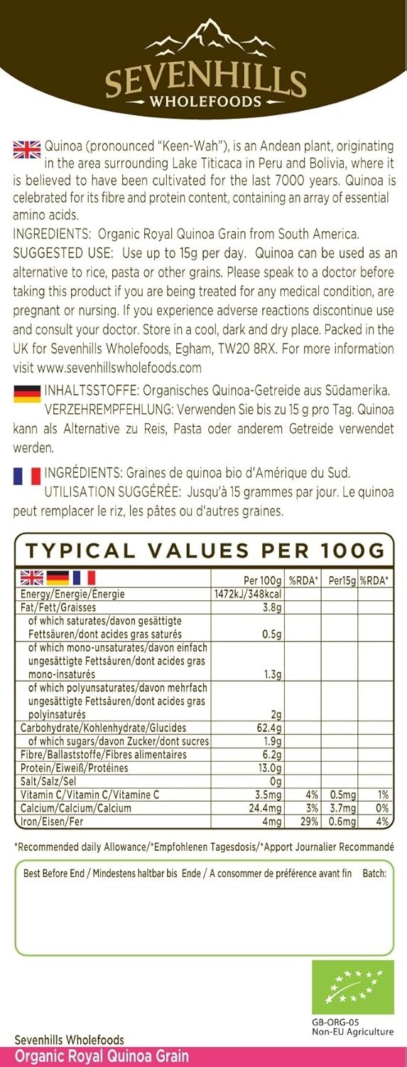 Sevenhills Wholefoods Granella Di Quinoa Real Bio 1.8kg