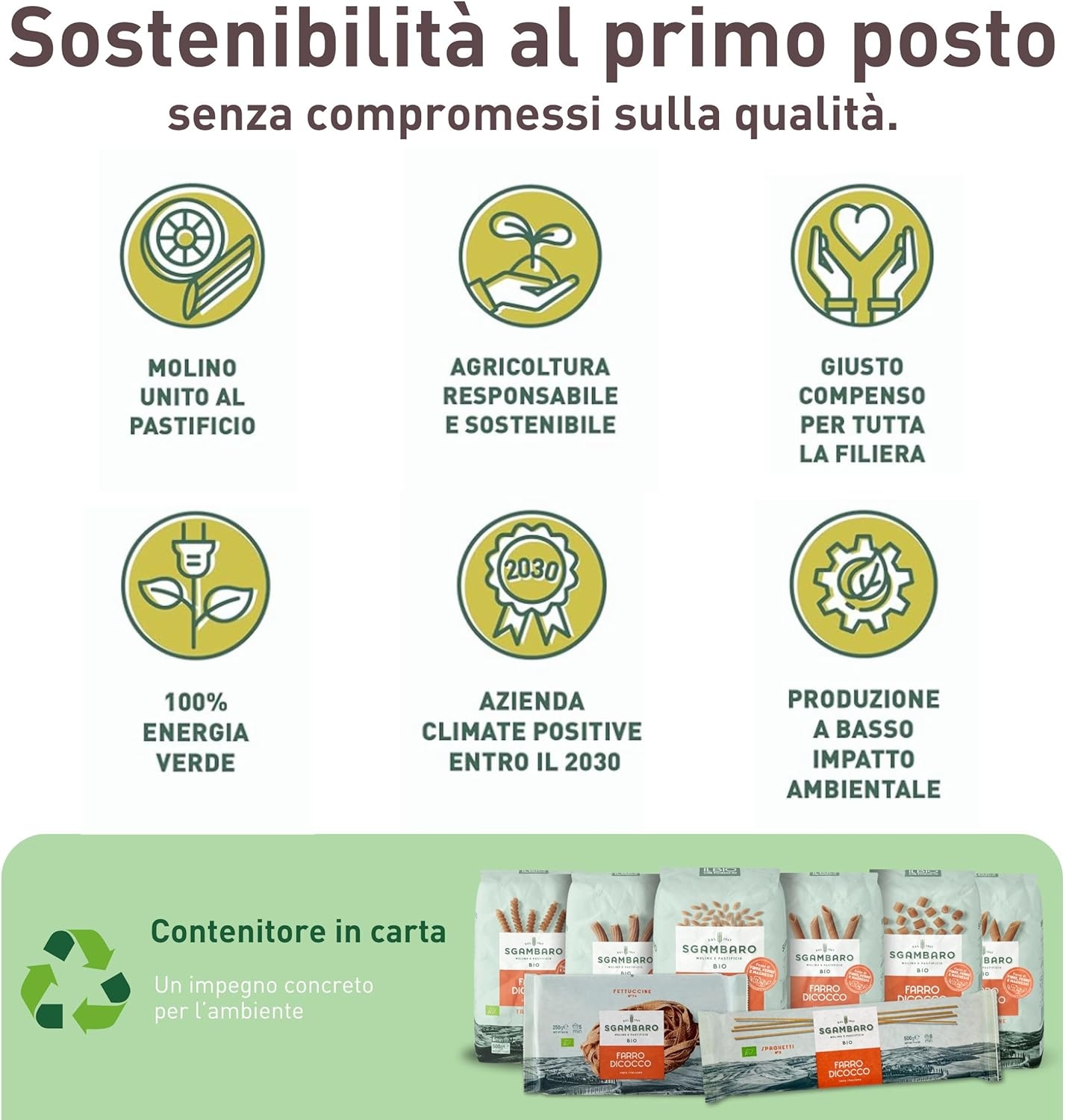 - 🍝 SOSTENIBILITÀ GARANTITA – Realizzata con energia verde e nuovo pack in carta riciclabile. Il farro utilizzato è 100% italiano e tracciabile, selezionato con cura per garantire una pasta buona, giusta e trasparente.
