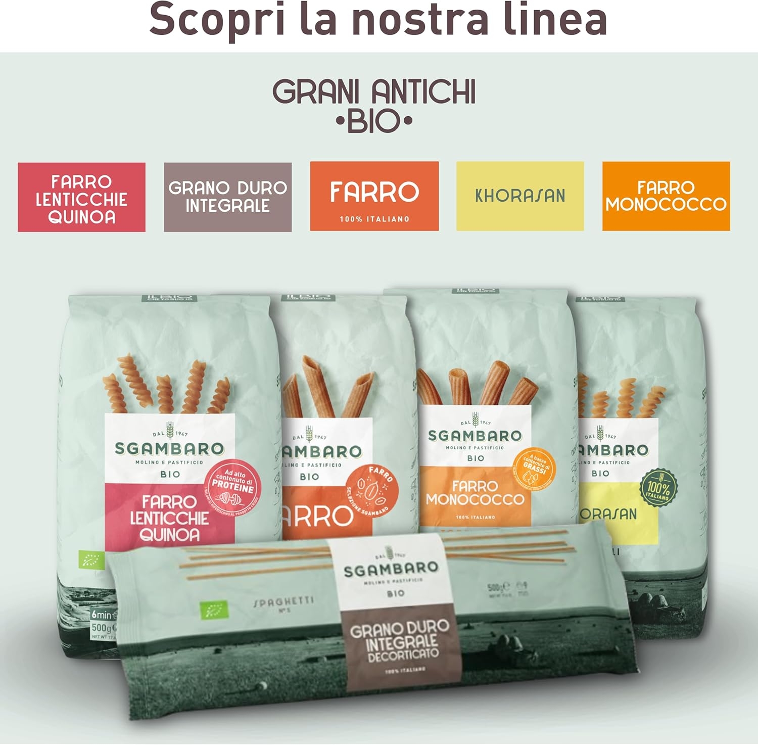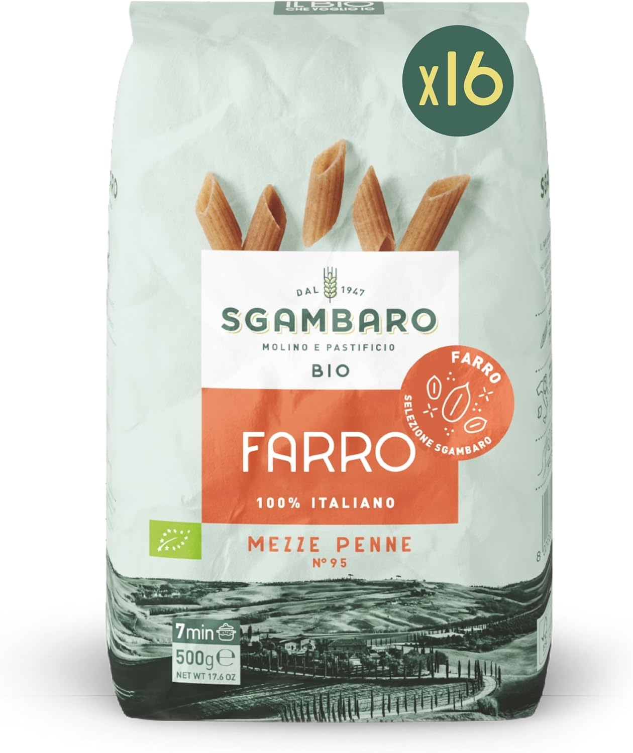 Sgambaro Pasta di Farro Selezione Bio Mezze Penne Rigate N.95 – 500g Pasta Farro 100% Italiana – a Basso Contenuto di Grassi, Fonte di Fibre, Proteine e Zinco – Ideale per Diete Sane e Naturali