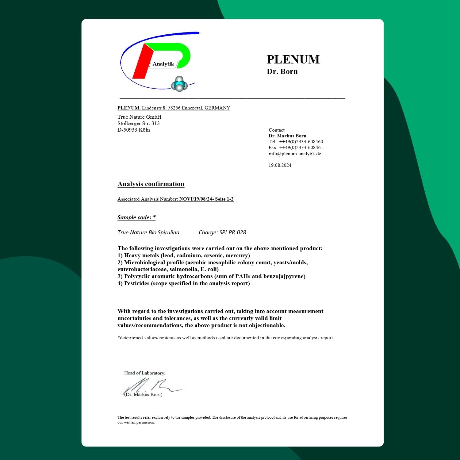 • ✌ ALTA PUREZZA – La nostra Spirulina biologica viene coltivata in acquacoltura, in condizioni ecologiche nella Mongolia interna. Ogni lotto è testato e certificato in un laboratorio tedesco indipendente.