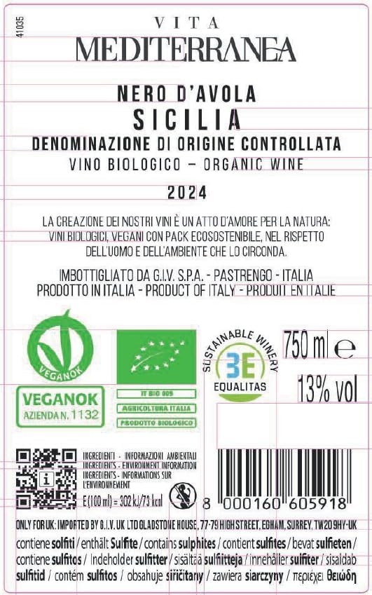 Il Nero d’Avola Sicilia DOC è prodotto al 100% con uve Nero d’Avola, il principale vitigno autoctono siciliano coltivato secondo i principi dell’agricoltura biologica certificata e vegana. La produzione sostenibile rispetta l’ambiente e garantisce un vino autentico che esprime con eleganza il carattere vibrante della Sicilia. Proveniente da vigneti situati su terreni argillosi, questo vino regala note fresche di ciliegie e lamponi arricchite da delicate sfumature floreali. Al palato si presenta armonioso e piacevolmente intenso, con una struttura che riflette la straordinaria capacità espressiva del vitigno autoctono siciliano. Ideale per accompagnare carni bianche, formaggi e pollame, questo Nero d’Avola si presta magnificamente a momenti conviviali informali, serate speciali con amici o rilassanti cene a casa. La sua versatilità lo rende perfetto per esaltare i sapori della cucina mediterranea. Disponibile in bottiglia da 750 ml con gradazione alcolica di 13% Vol. Per apprezzarne al meglio le qualità organolettiche, servire a 14-16°C in bicchiere ballon, con un consumo ideale entro 3 anni per preservare struttura e intensità aromatica. Il Nero d’Avola rappresenta l’eccellenza vinicola siciliana, essendo il principale vitigno autoctono dell’isola noto per la sua straordinaria capacità di esprimere vini di grande struttura. Il terroir siciliano, con il suo clima mediterraneo e i terreni vulcanici, esalta le caratteristiche uniche di questa varietà creando vini di autentica personalità.
