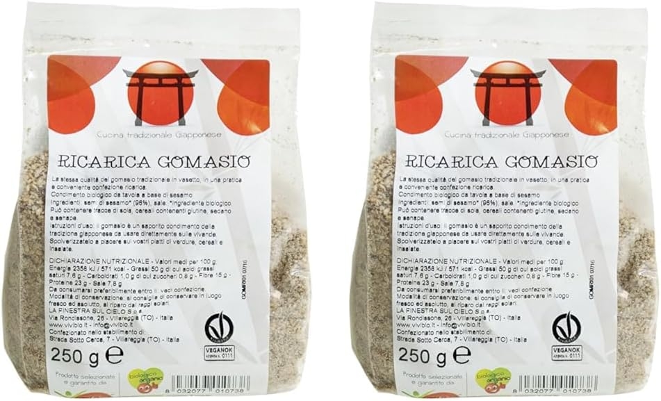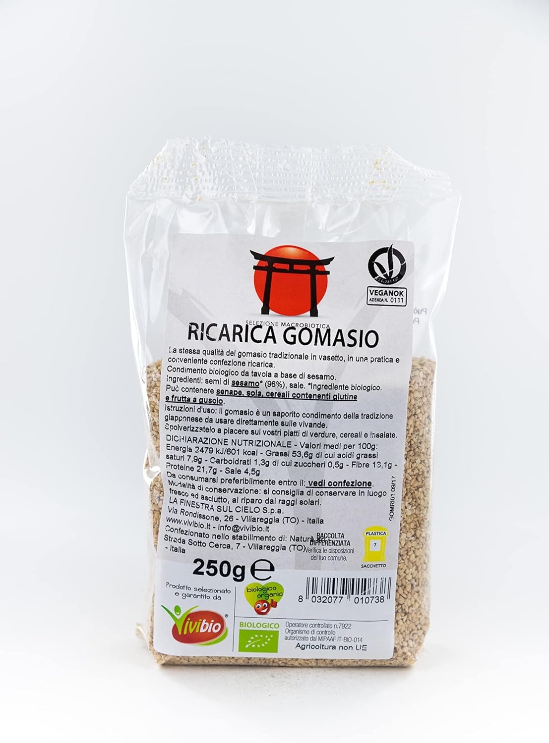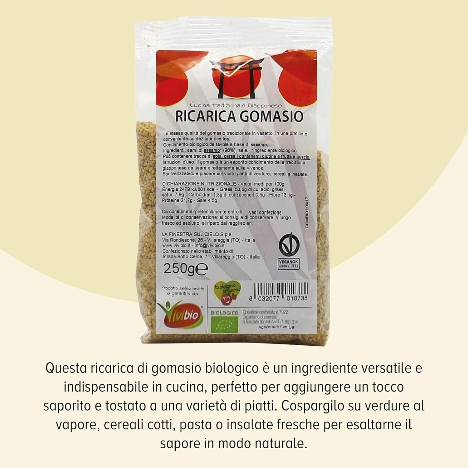 Arricchisci i tuoi piatti quotidiani con questa ricarica di gomasio biologico italiano, una miscela tradizionale di semi di sesamo e sale marino prodotta in Italia. Questo condimento biologico, apprezzato per il suo carattere semplice ma gustoso, è un’aggiunta perfetta tra i tuoi ingredienti base in cucina. Che tu voglia insaporire cereali caldi, verdure arrosto o una fresca porzione di pasta, l’aroma tostato e naturale del gomasio biologico dona profondità e intensità ad ogni boccone. La sua consistenza granulosa lo rende ideale per essere utilizzato direttamente, senza bisogno di ulteriori preparazioni. Realizzato con attenzione agli ingredienti e al sapore, questo gomasio è un alleato naturale in cucina che aggiunge un tocco equilibrato di sapidità a ogni piatto. La confezione ricaricabile è una scelta consapevole per chi ama cucinare con cura e semplicità.