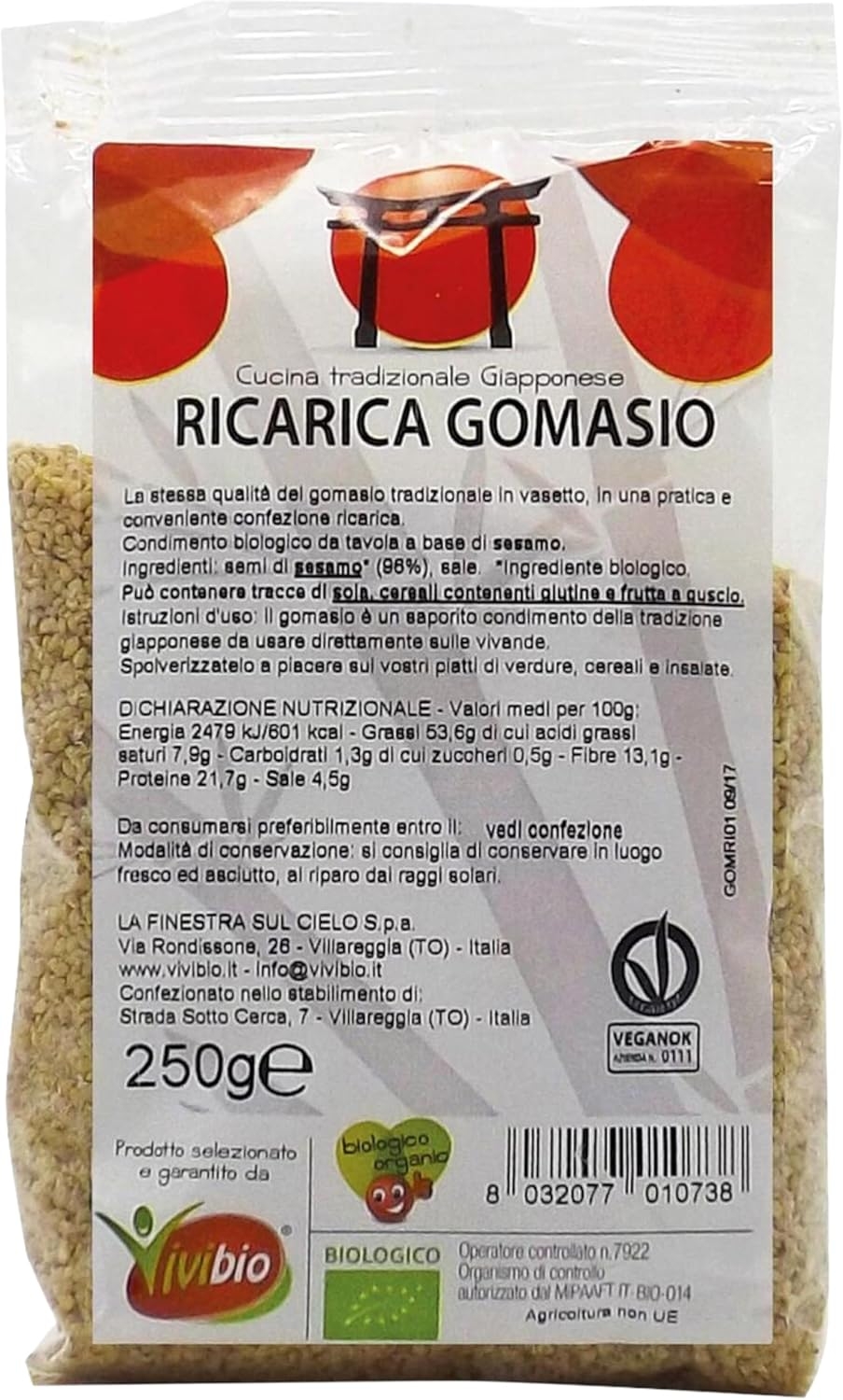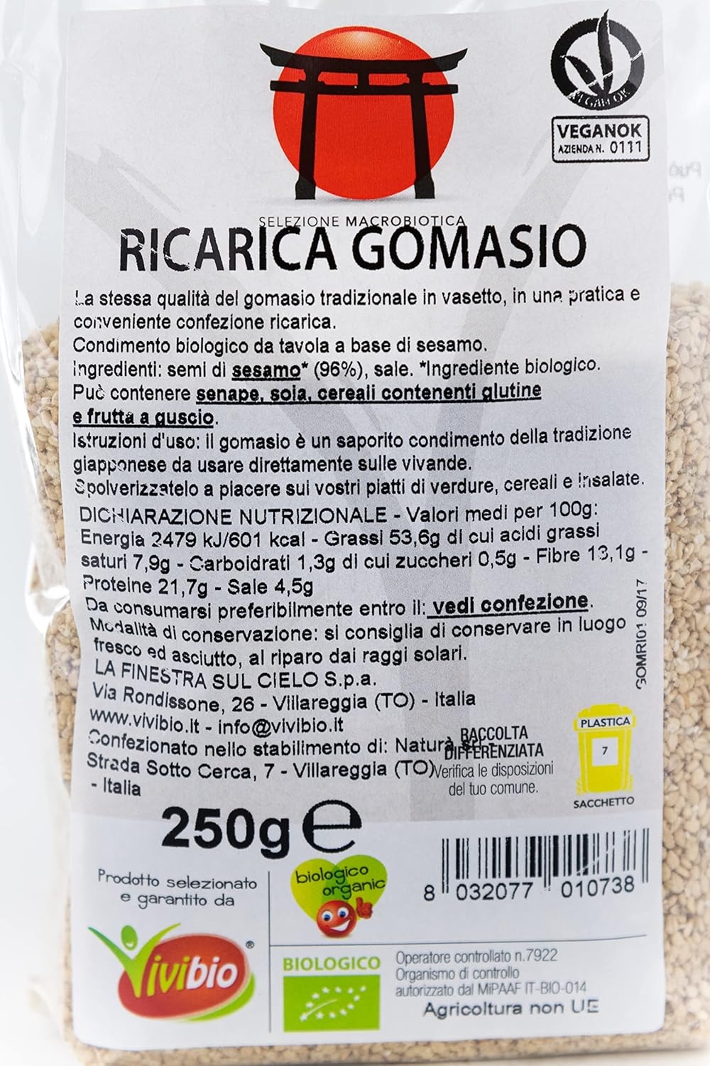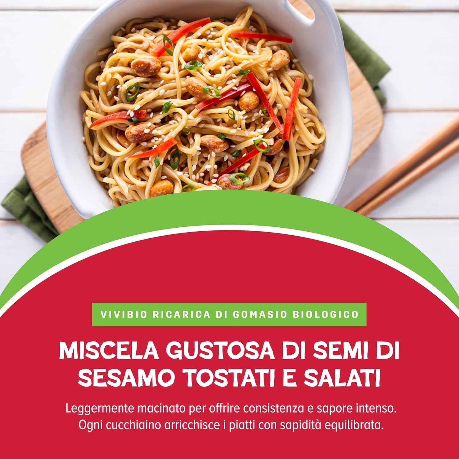 Arricchisci i tuoi piatti quotidiani con questa ricarica di gomasio biologico italiano, una miscela tradizionale di semi di sesamo e sale marino prodotta in Italia. Questo condimento biologico, apprezzato per il suo carattere semplice ma gustoso, è un’aggiunta perfetta tra i tuoi ingredienti base in cucina. Che tu voglia insaporire cereali caldi, verdure arrosto o una fresca porzione di pasta, l’aroma tostato e naturale del gomasio biologico dona profondità e intensità ad ogni boccone. La sua consistenza granulosa lo rende ideale per essere utilizzato direttamente, senza bisogno di ulteriori preparazioni. Realizzato con attenzione agli ingredienti e al sapore, questo gomasio è un alleato naturale in cucina che aggiunge un tocco equilibrato di sapidità a ogni piatto. La confezione ricaricabile è una scelta consapevole per chi ama cucinare con cura e semplicità.